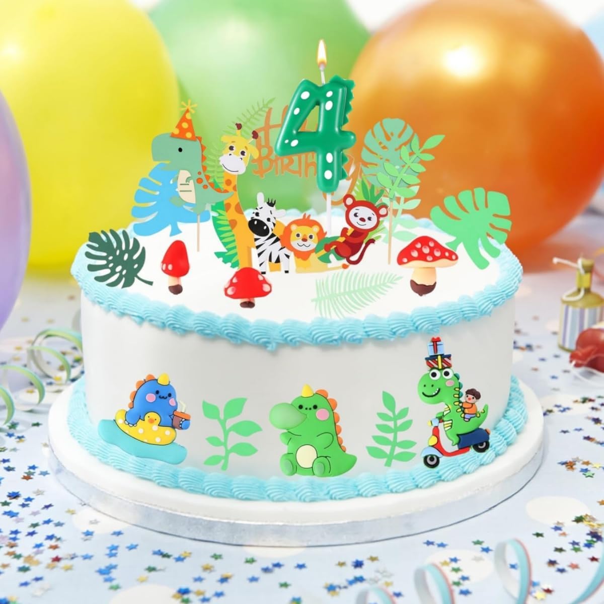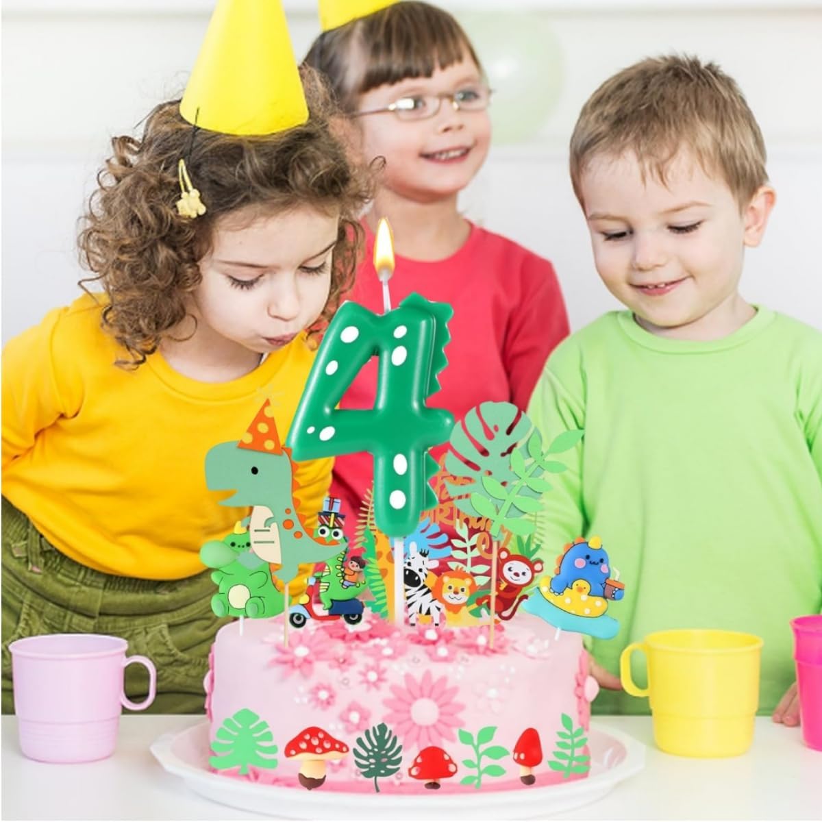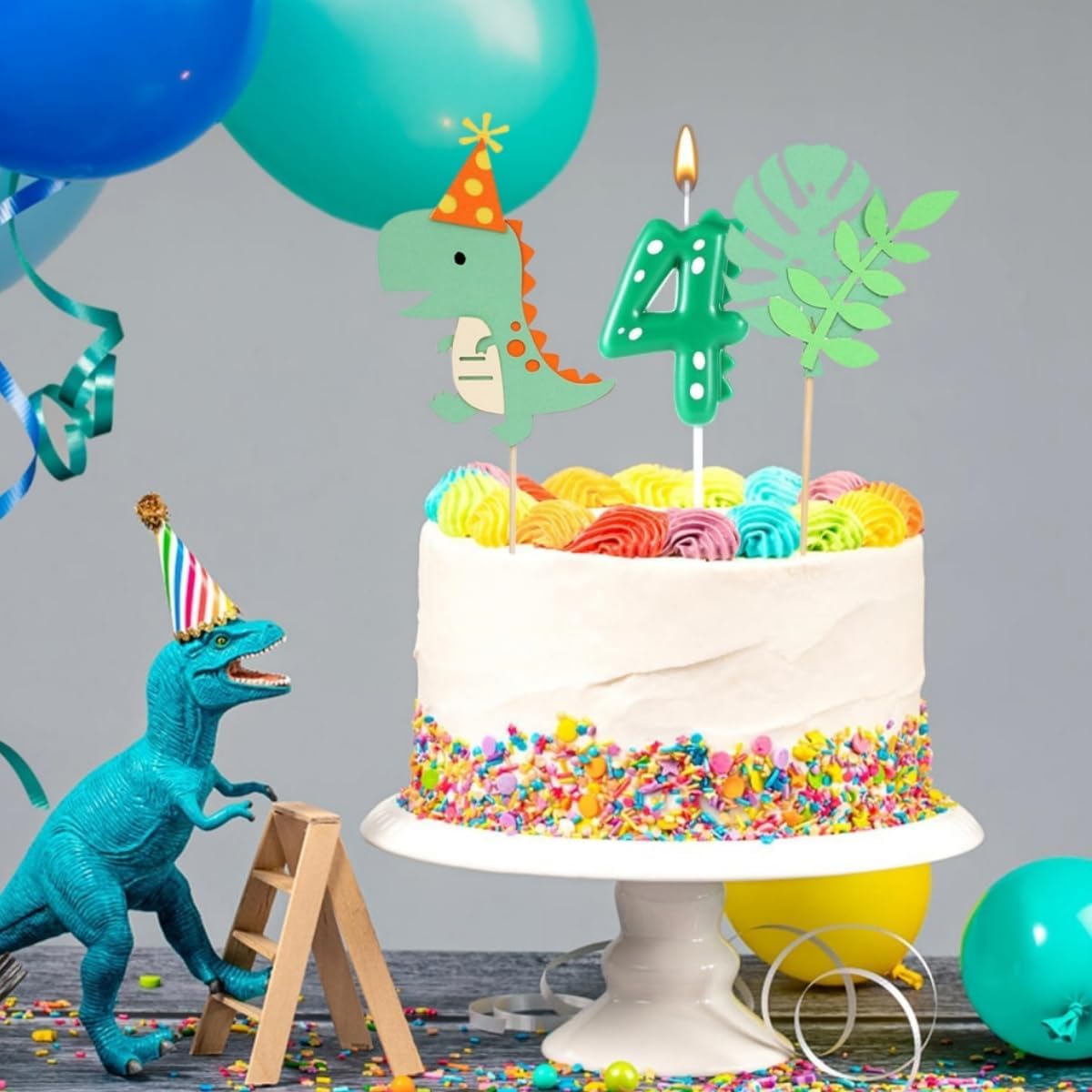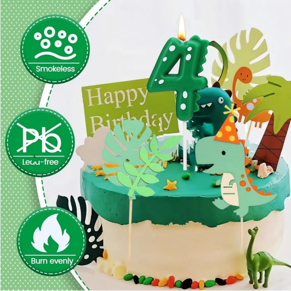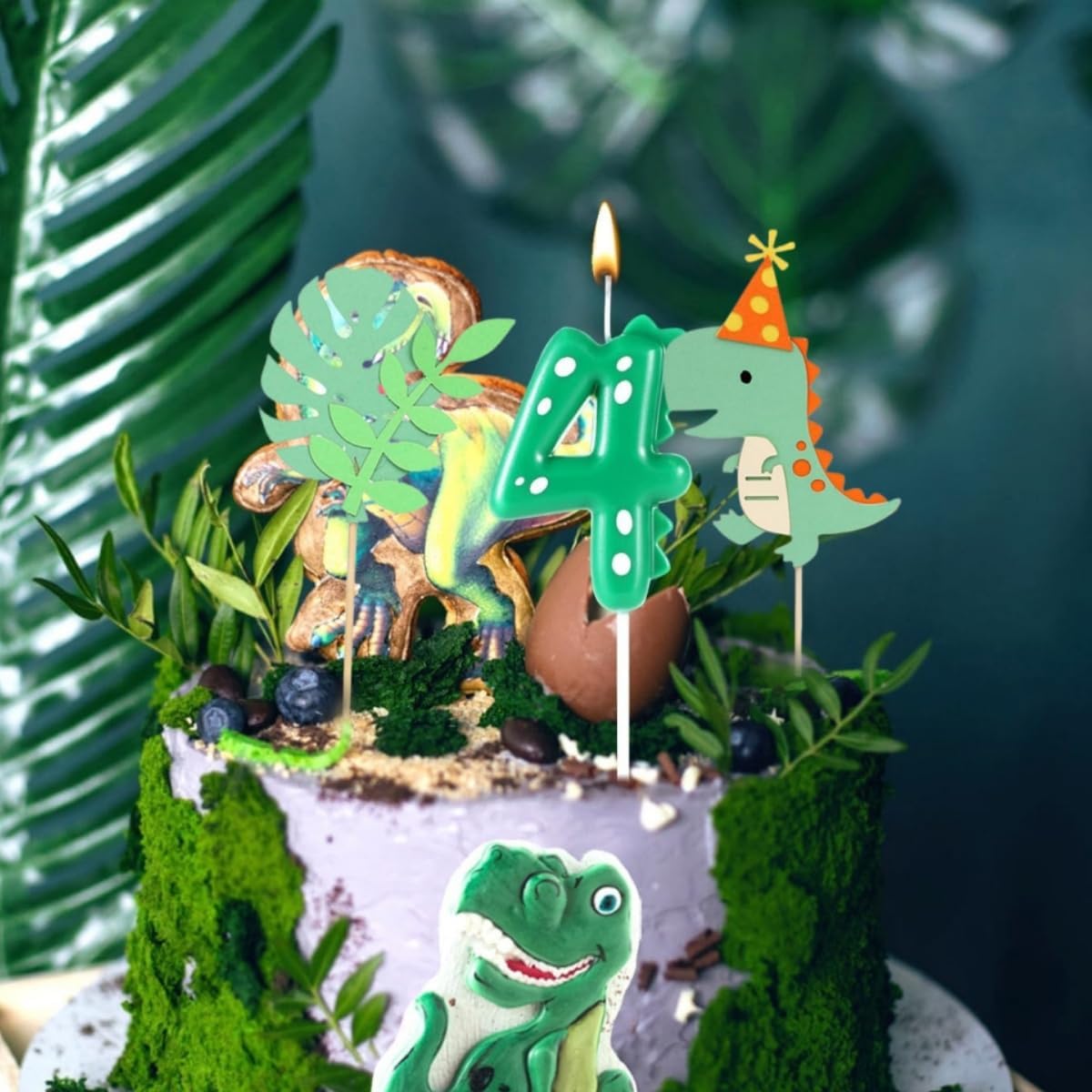 Decorazione per torta a forma di dinosauro in 3D realistica: il set include 1 candela con numero in 3D e 2 decorazioni per torta a forma di dinosauro. Perfetta per torte di qualsiasi dimensione. Texture realistiche di dinosauri e colore verde brillante per un **effetto accattivante** sulle torte di compleanno. Universalmente applicabile: Adatto a temi decorativi come Jurassic Party, Dino Adventure o Jungle Mottos. Adatto ai bambini e rispettoso dell'ambiente: Materiale: realizzato in **paraffina atossica** e **plastica riciclabile**, inodore e adatto al contatto con gli alimenti. Supporto stabile: lo stelo spesso della candela impedisce che si ribalti sulle superfici lisce della torta. Facile da usare: i topper possono essere facilmente inseriti nel fondente, nella crema al burro o nel formaggio cremoso, senza danneggiare la torta. Perfetto per momenti indimenticabili: Occasioni: compleanni per bambini, baby shower, feste a tema dinosauri, feste di ritorno a scuola o eventi a sorpresa. Brucia le candele: abbastanza tempo per desideri e foto. Le decorazioni sono **riutilizzabili** per future celebrazioni. Atmosfera stravagante:** combina il set con stampi da forno a forma di dinosauro, decorazioni da tavola o sacchetti regalo per un **tema completo**. Confezionato in modo pratico e durevole:**Scatole singole:** Candela e decorazione separatamente in cartone antiurto, per proteggerle da rotture durante la spedizione. Riutilizzabili: i topper in plastica robusta possono essere lavati dopo la festa e usati come decorazione per la stanza. Design piatto salvaspazio per una facile conservazione negli armadietti della cucina o in scatole decorative. Regalo ideale per gli amanti dei dinosauri:Pronto all'uso:Non richiede assemblaggio: basta attaccarlo alla torta e accenderlo. Design limitato: motivo Dino – ordina ora prima della prossima stagione dei compleanni