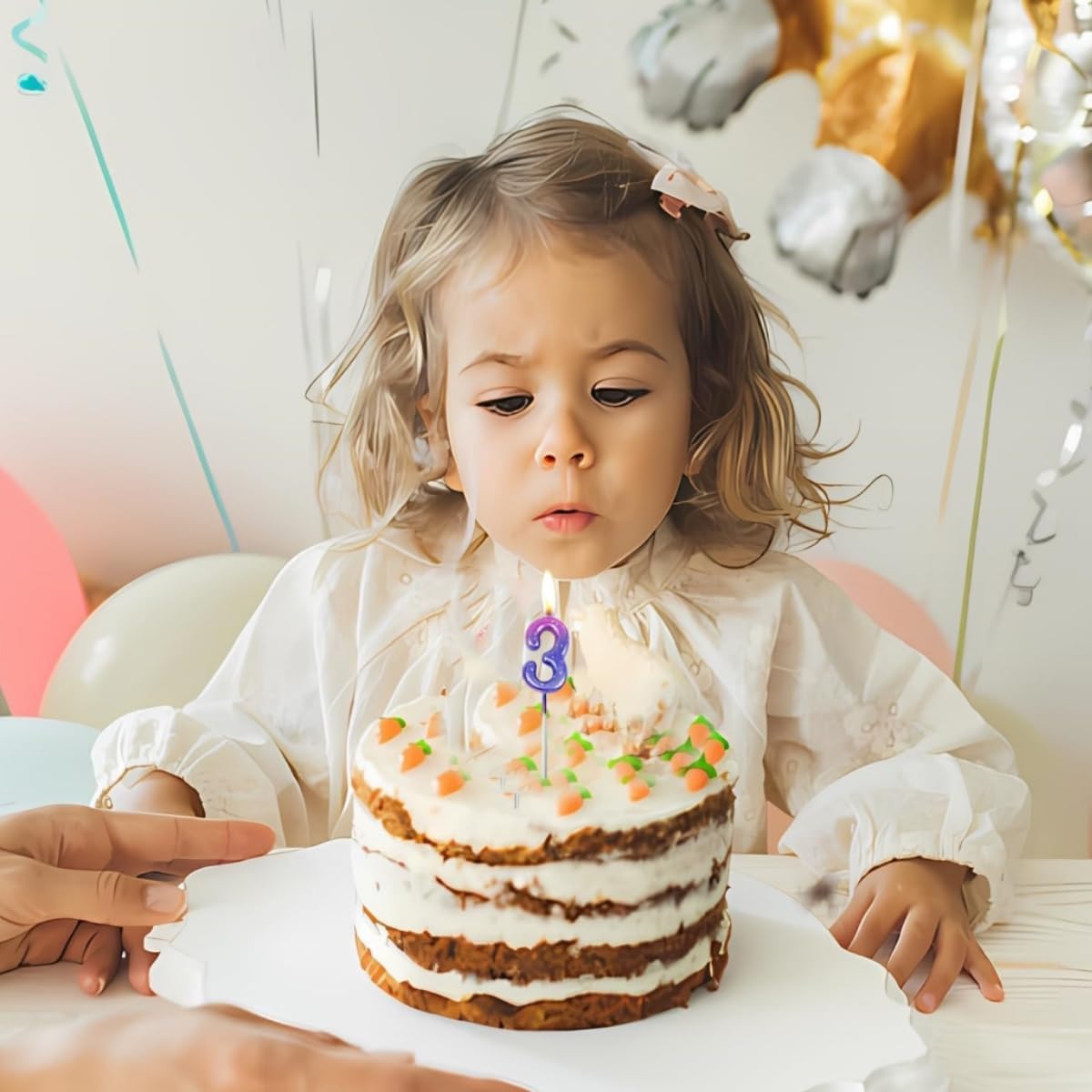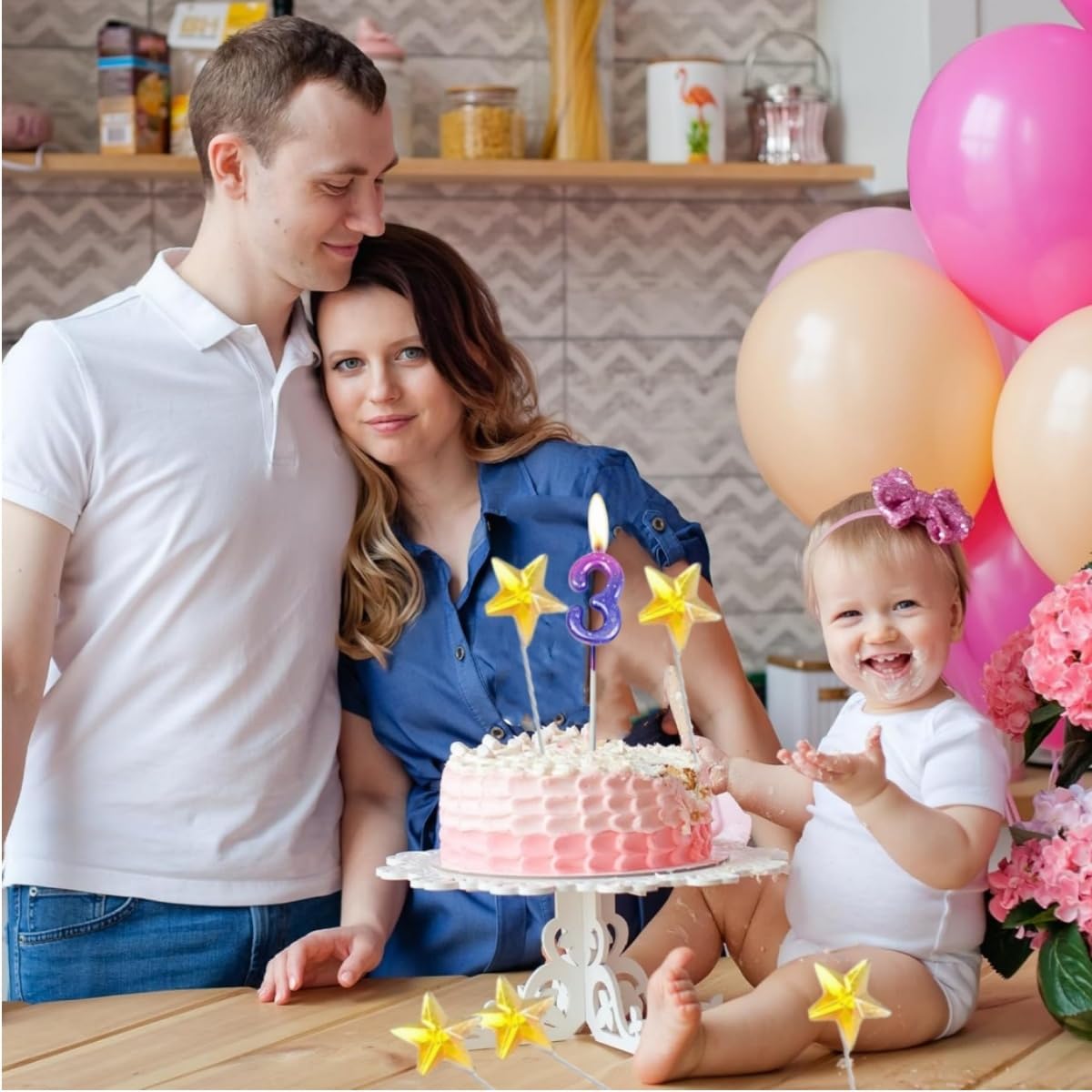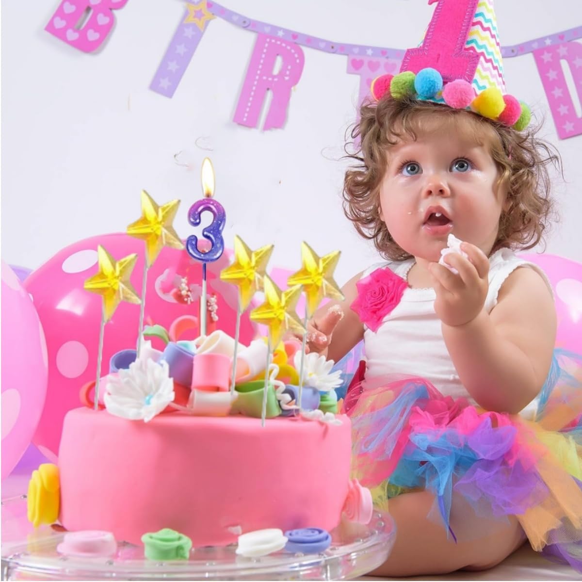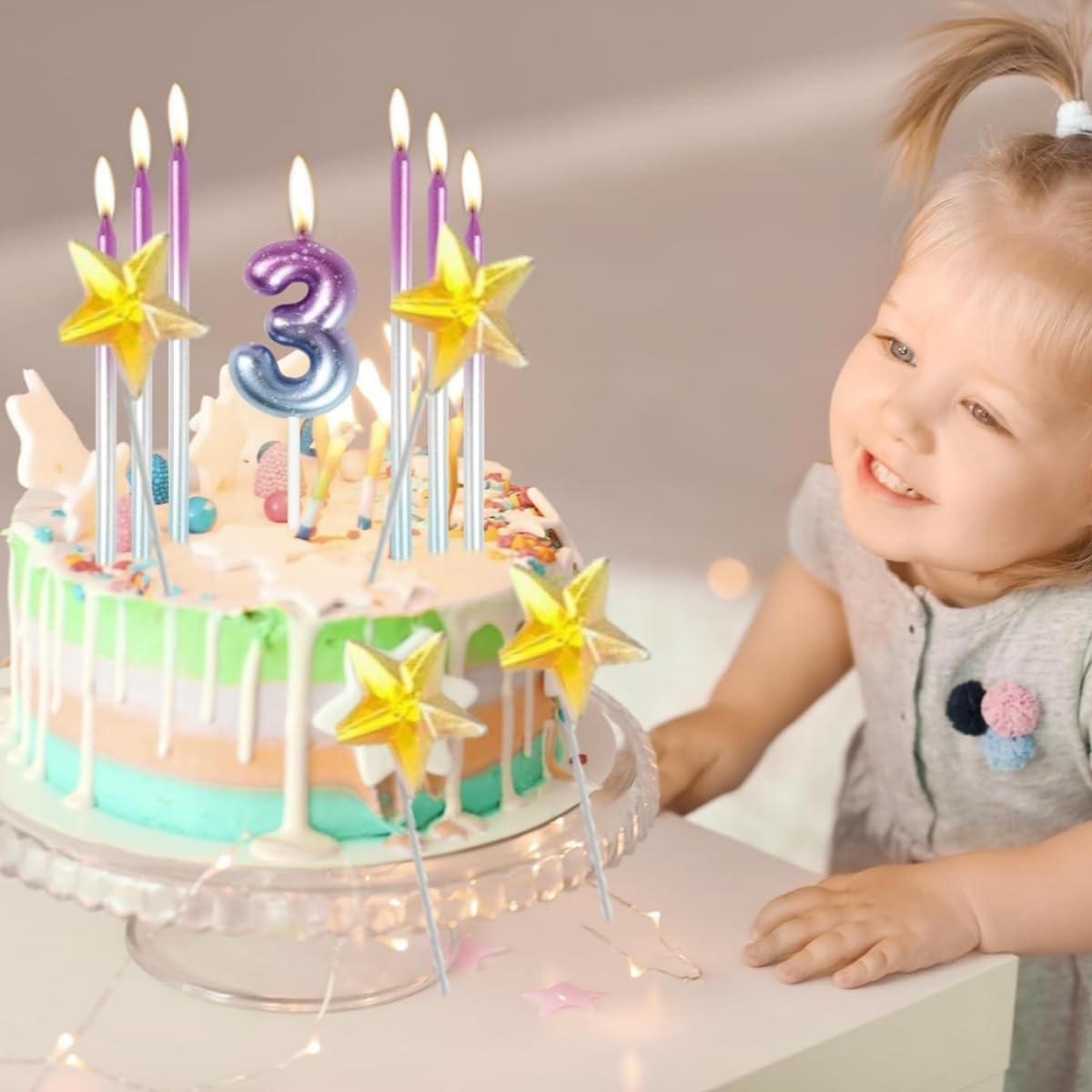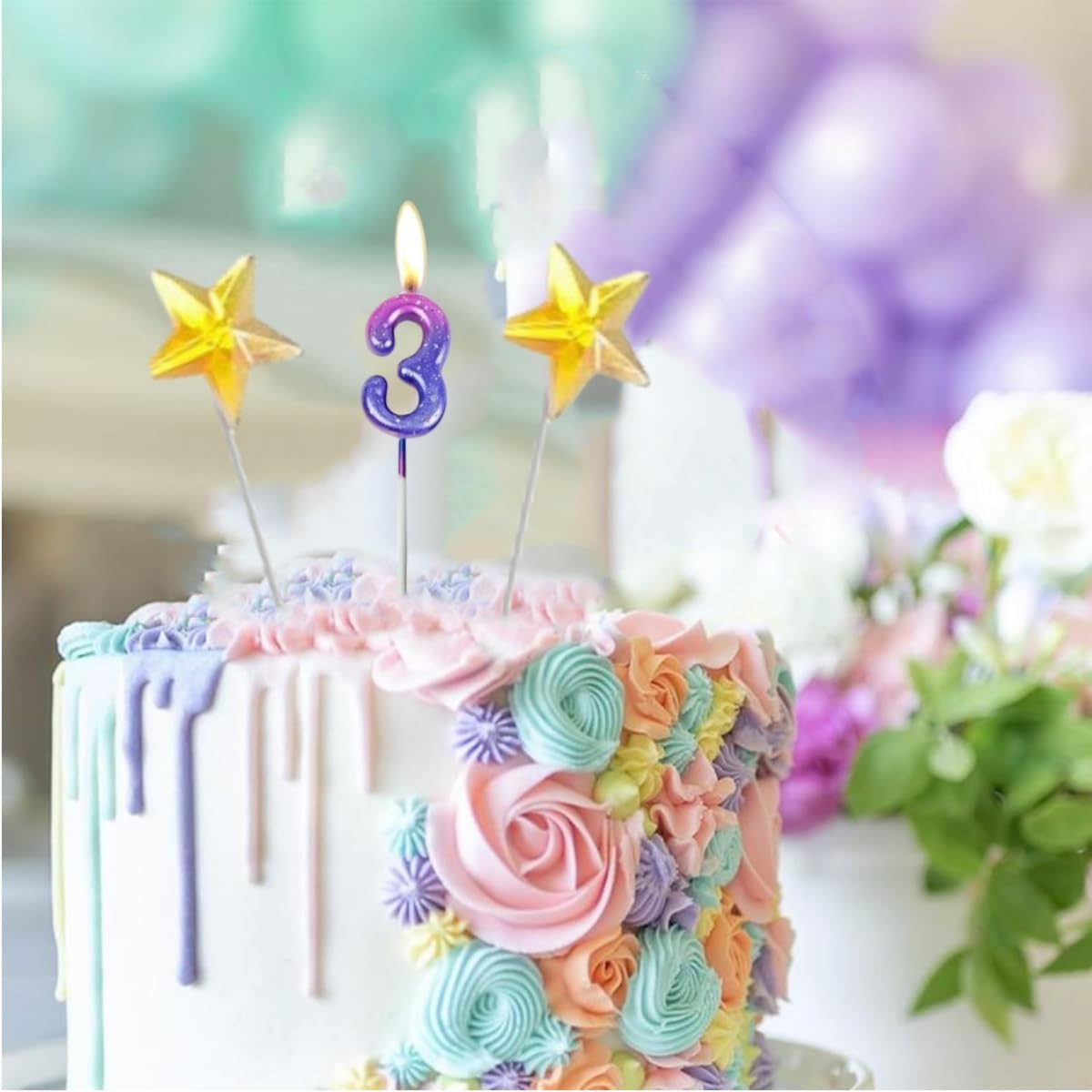 Design e materiale sfumati: questa candela con numeri colpisce per la sua delicata sfumatura di colore nei toni pastello e i dettagli scintillanti. Realizzato in cera di paraffina ecologica, è inodore, senza fumo e sicuro per gli alimenti, sicuro per torte e bambini Decorazione perfetta per le feste: il set include 1 candela digitale + 5 decorazioni per torte a forma di stella dorata. La candela principale è di ca. 12,5 cm, ideale per torte, cupcake o dessert Facile da usare e riutilizzabile: grazie al supporto robusto, la candela può essere facilmente inserita nella torta. Dopo l'uso, basta pulirlo e riporlo in un luogo asciutto: manterrà la sua forma e potrà essere conservato per le feste future Un momento clou suggestivo per ogni occasione: aggiungi un tocco di eleganza a compleanni, matrimoni o anniversari! La candela sfumata crea un'atmosfera romantica attraverso una combustione uniforme e un leggero tremolio, mentre le stelle aggiungono sottili riflessi. Candele con numeri economiche ed eleganti: una sola confezione può farti risparmiare un viaggio al negozio. Queste bellissime candele rimuovono facilmente le gocce di cera dalle torte e sono comunque commestibili. Può soddisfare le esigenze della tua festa di compleanno