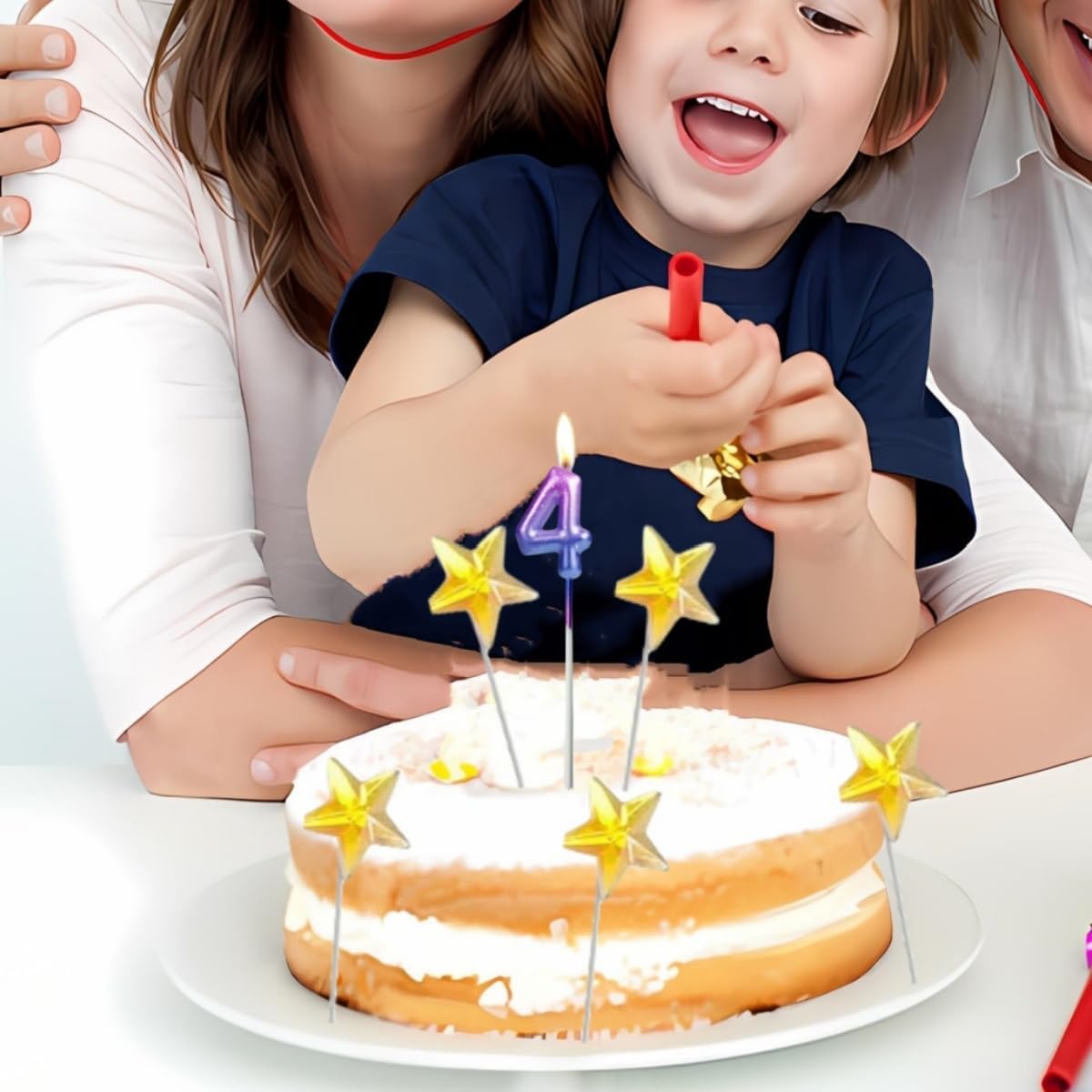 Design e materiale sfumati: questa candela con numeri colpisce per la sua delicata sfumatura di colore nei toni pastello e i dettagli scintillanti. Realizzato in cera di paraffina ecologica, è inodore, senza fumo e sicuro per gli alimenti, sicuro per torte e bambini. Decorazione perfetta per le feste: il set include 1 candela digitale + 5 decorazioni per torte a forma di stella dorata. La candela principale è di ca. 12,5 cm, ideale per torte, cupcake o dessert Facile da usare e riutilizzabile: grazie al supporto robusto, la candela può essere facilmente inserita nella torta. Dopo l'uso, basta pulirlo e riporlo in un luogo asciutto: manterrà la sua forma e potrà essere conservato per le feste future. Un momento clou suggestivo per ogni occasione: aggiungi un tocco di eleganza a compleanni, matrimoni o anniversari! La candela sfumata crea un'atmosfera romantica attraverso una combustione uniforme e un leggero tremolio, mentre le stelle aggiungono sottili riflessi. Candele con numeri economiche ed eleganti: una sola confezione può farti risparmiare un viaggio al negozio. Queste bellissime candele rimuovono facilmente le gocce di cera dalle torte e sono comunque commestibili. Può soddisfare le esigenze della tua festa di compleanno
