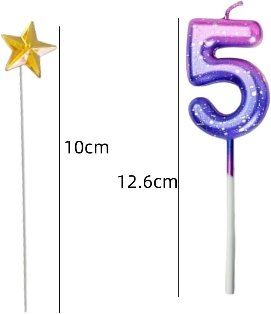 Design e materiale sfumati: questa candela con numeri colpisce per la sua delicata sfumatura di colore nei toni pastello e i dettagli scintillanti. Realizzato in cera di paraffina ecologica, è inodore, senza fumo e sicuro per gli alimenti, sicuro per torte e bambini. Decorazione perfetta per le feste: il set include 1 candela digitale + 5 decorazioni per torte a forma di stella dorata. La candela principale è di ca. 12,5 cm, ideale per torte, cupcake o dessert Facile da usare e riutilizzabile: grazie al supporto robusto, la candela può essere facilmente inserita nella torta. Dopo l'uso, basta pulirlo e riporlo in un luogo asciutto: manterrà la sua forma e potrà essere conservato per le feste future. Un momento clou suggestivo per ogni occasione: aggiungi un tocco di eleganza a compleanni, matrimoni o anniversari! La candela sfumata crea un'atmosfera romantica attraverso una combustione uniforme e un leggero tremolio, mentre le stelle aggiungono sottili riflessi. Candele con numeri economiche ed eleganti: una sola confezione può farti risparmiare un viaggio al negozio. Queste bellissime candele rimuovono facilmente le gocce di cera dalle torte e sono comunque commestibili. Può soddisfare le esigenze della tua festa di compleanno