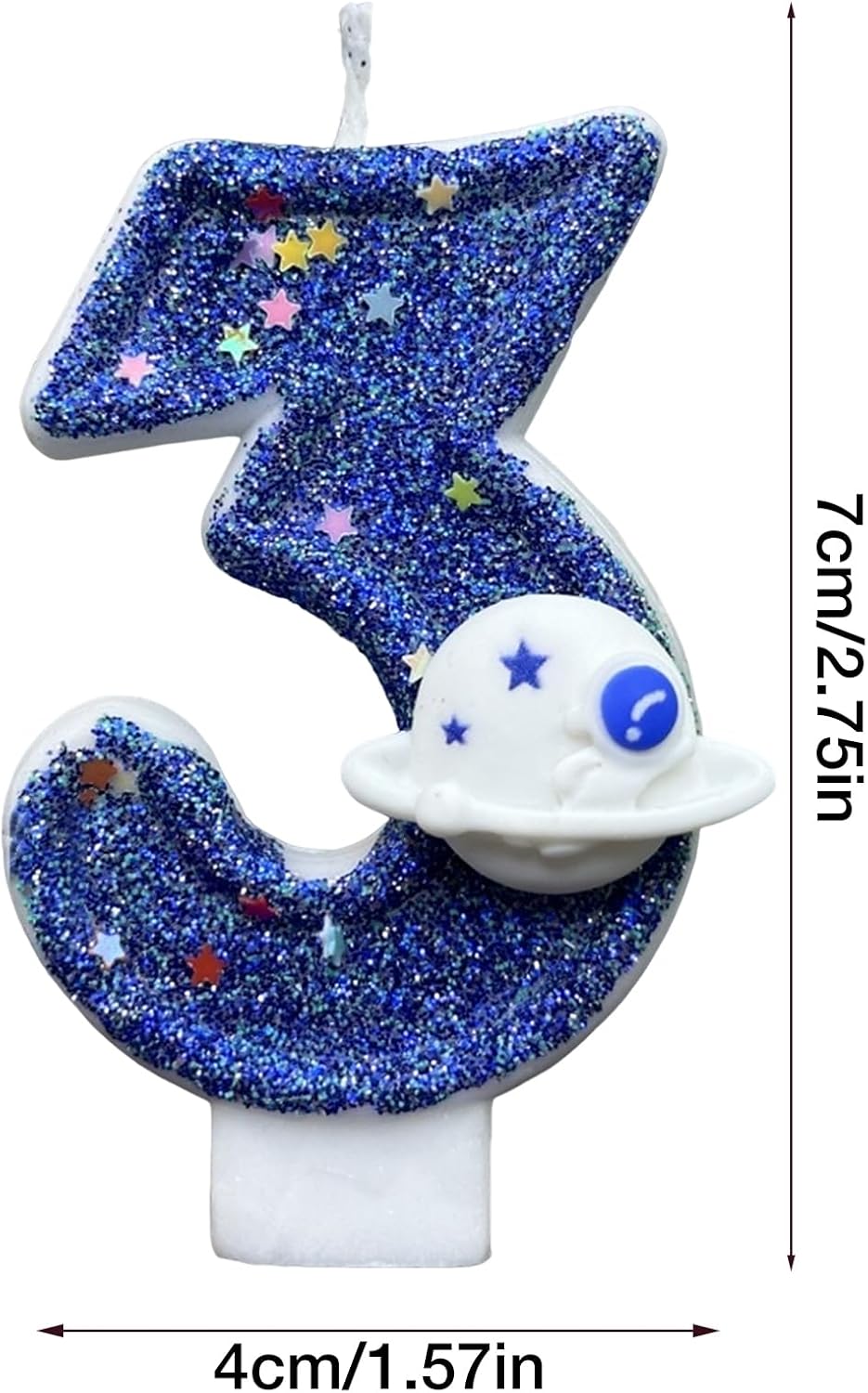 Aspetto unico: con un colore blu che di una luce affascinante, questa candela rende la torta di compleanno immediatamente accattivante; il suo aspetto unico aggiunge divertimento alle feste di compleanno con un design scintillante Candele con numeri: completa l'arredamento della tua festa con queste affascinanti candele con numeri. Il set è disponibile in tutti i numeri da 0 a 9, offrendo più possibilità di età Candele uniche a tema spaziale: trasforma una torta normale in un universo mistico con questa candela con numero di compleanno dal design blu del pianeta spaziale. Aggiunge un tocco di fantasia maestosa, rendendo la celebrazione più affascinante e indimenticabile Sicuro per gli utenti: il fondo della candela è progettato saldamente, facilitandone l'inserimento nella torta, garantendo che non si inclini o cada, fornendo maggiore sicurezza per le celebrazioni e rendendola sicura da usare per i bambini Progettato per le feste: ideale per una festa a tema spaziale per bambini, parte 'intero arredamento della festa o un'aggiunta romantica a una festa per adulti, non il momento clou della torta di compleanno