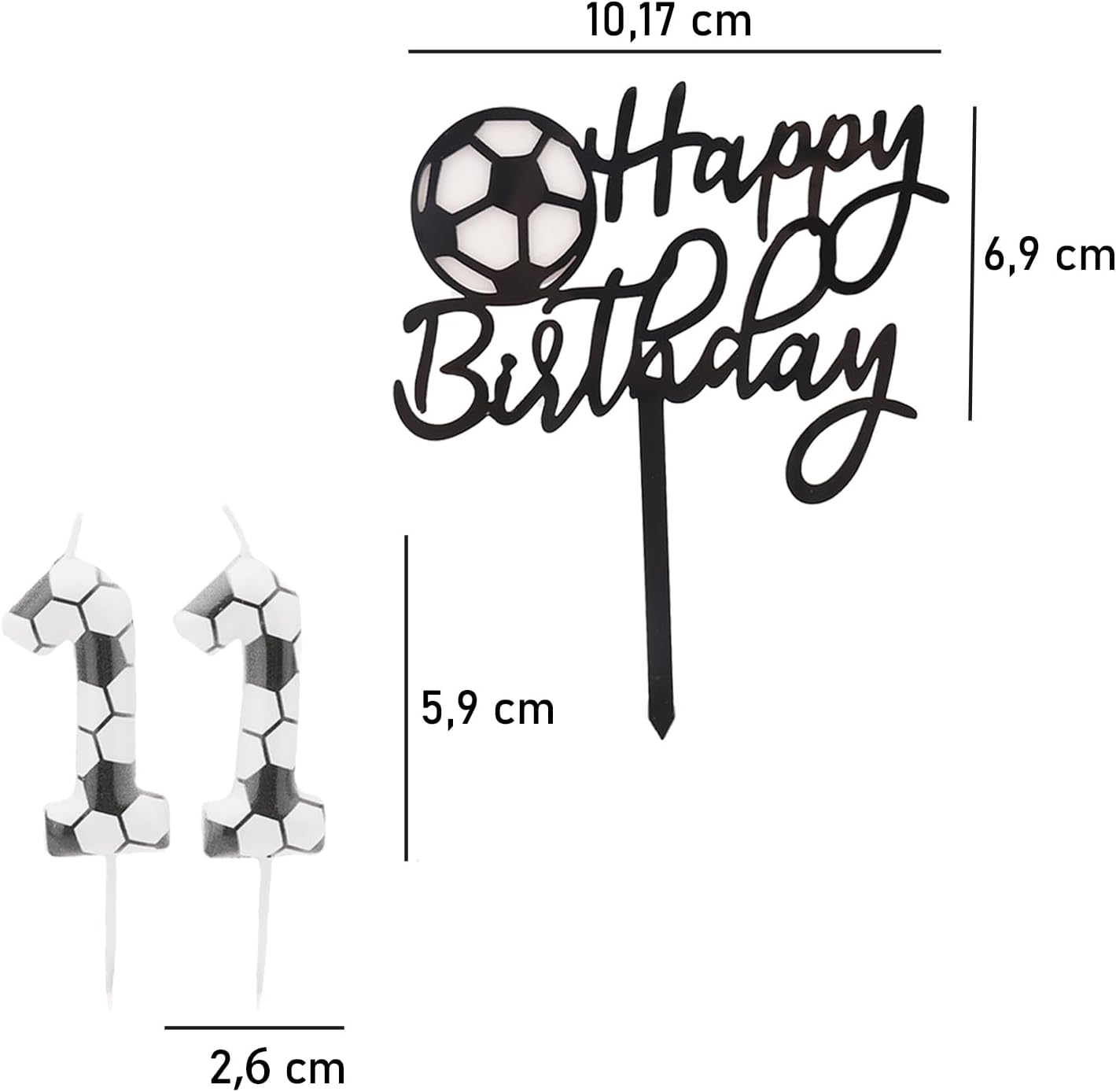 Candele di compleanno con numeri 11, 11° compleanno, motivo: calcio, per torta di compleanno, bianco e nero