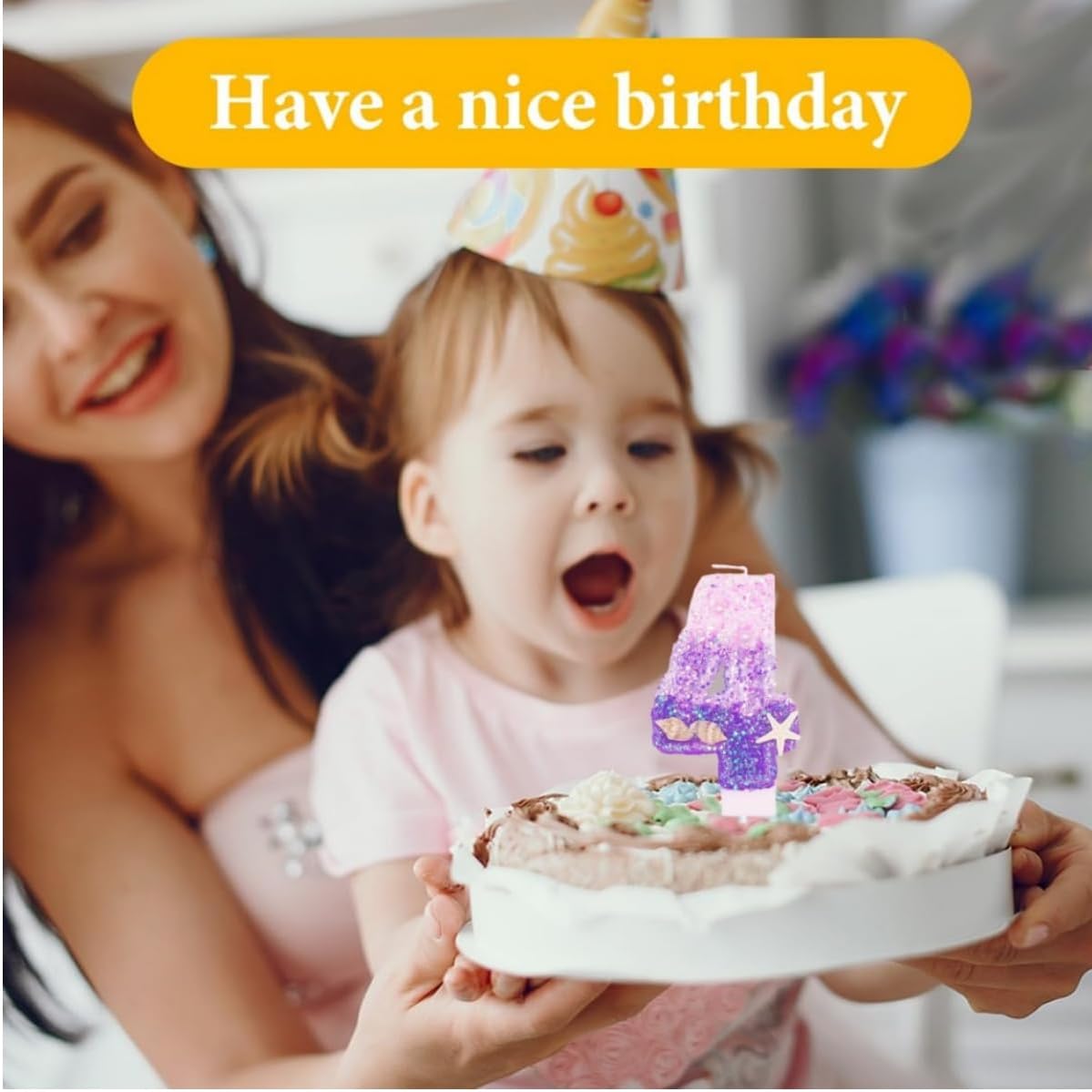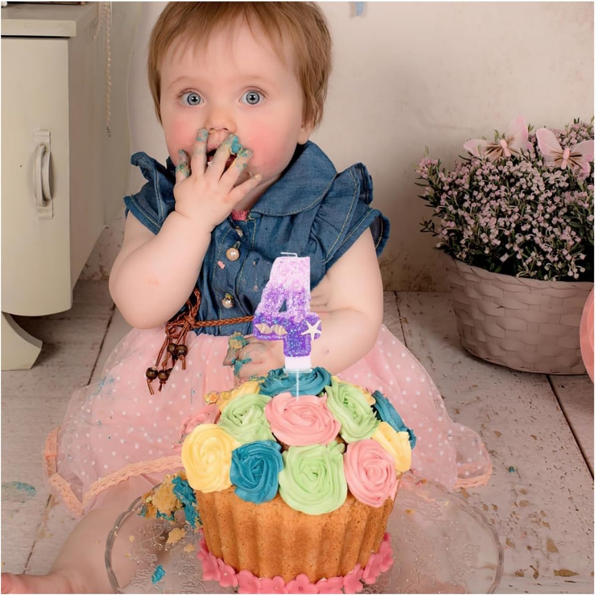 Candele di Compleanno con Numeri 4,Candele di Compleanno,per Sirena Oceano a Tema,per Feste di Compleanno,Feste,anniversari,Decorazioni di Compleanno