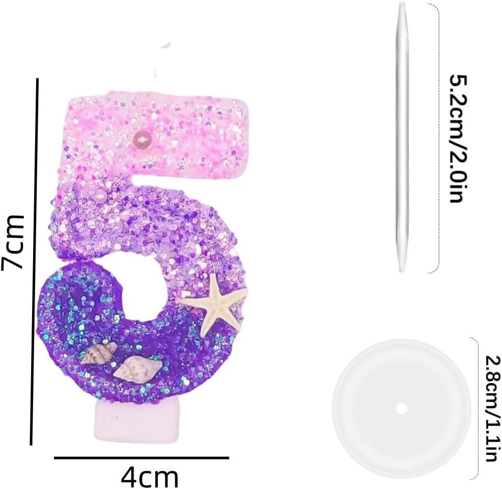 Candele di Compleanno con Numeri 5,Candele di Compleanno,per Sirena Oceano a Tema,per Feste di Compleanno,Feste,anniversari,Decorazioni di Compleanno