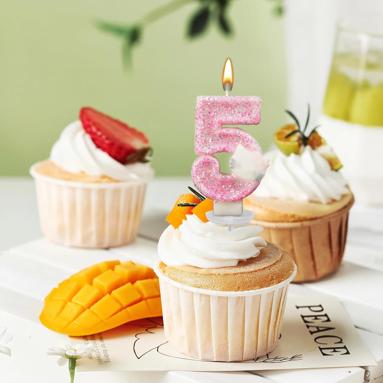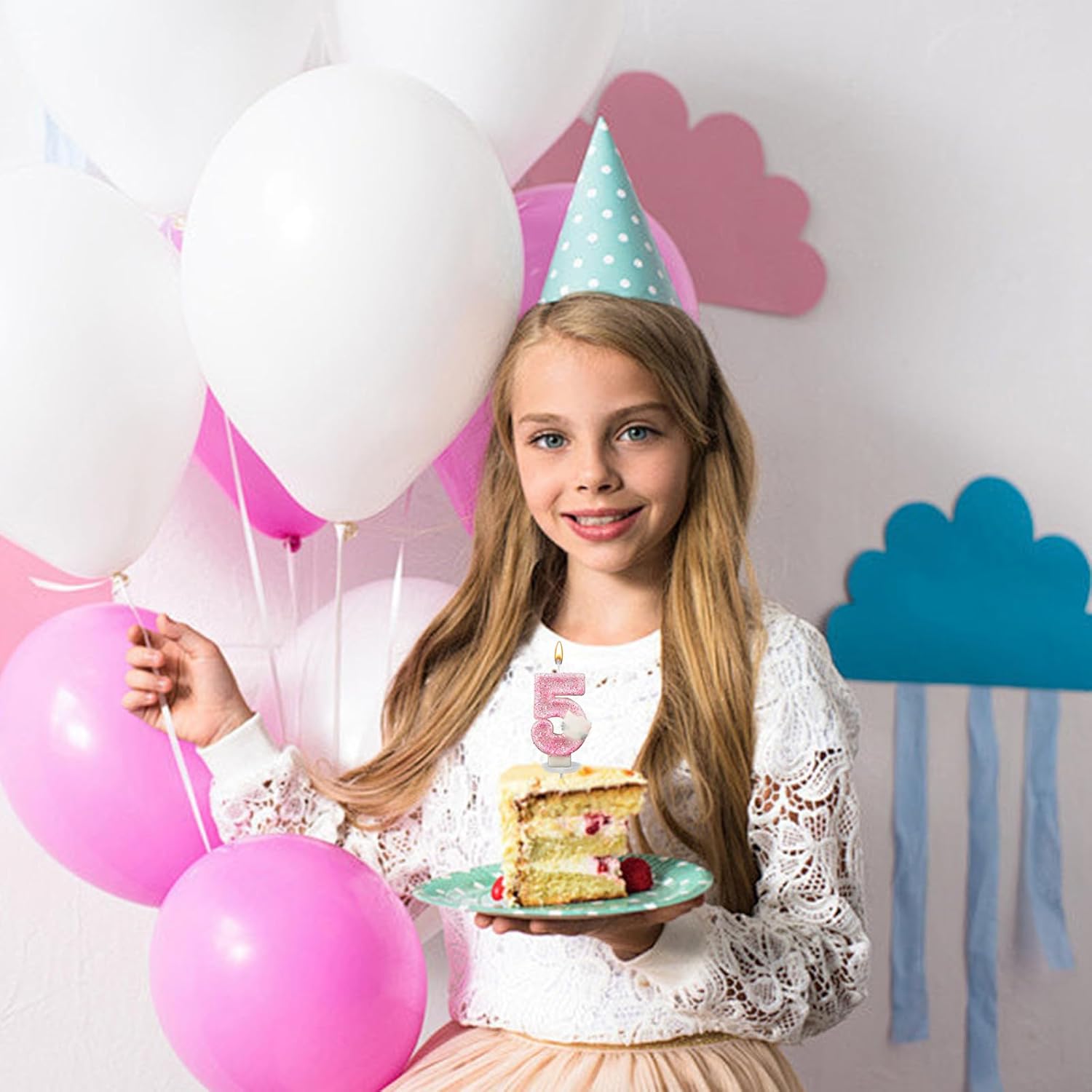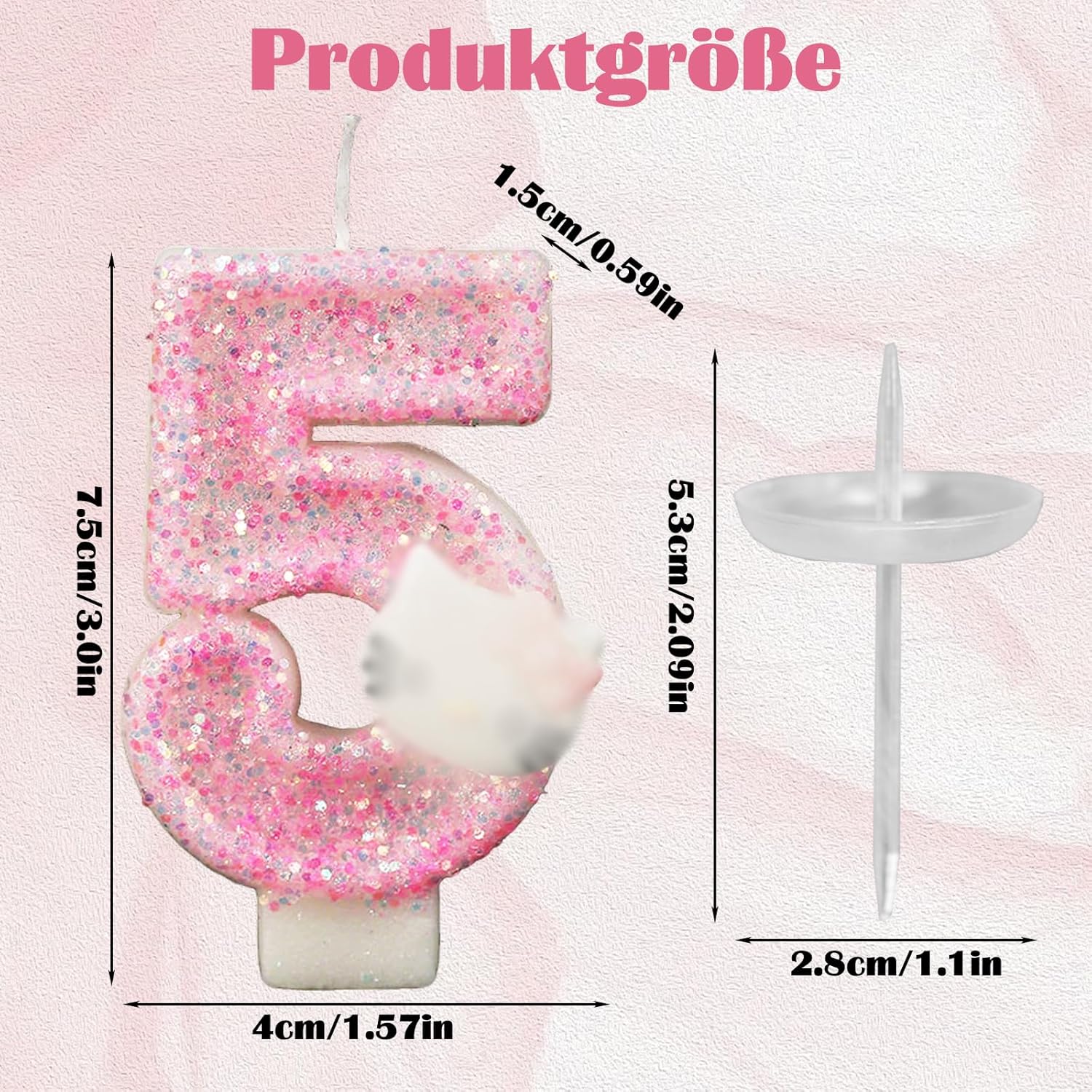 Incantevole decorazione rosa: le nostre candele per il quinto compleanno presentano un adorabile design rosa e sono quindi la decorazione perfetta per feste di compleanno per feste a tema Hello Kitty e altre feste femminili. L'incantevole tonalità rosa aggiunge un tocco di carineria e femminilità a qualsiasi torta di compleanno. Dimensioni adatte: le nostre candele con numeri misurano 3 x 1,6 pollici e sono perfette per tutti i tipi di torte, sia grandi torte tradizionali che dolci mini cupcake. Queste candele sono ideali come incantevoli decorazioni per torte, aumentano l'attrattiva visiva dei dessert e aggiungono brillantezza alle feste allegre. Materiali di alta qualità: le nostre candele Happy Birthday sono realizzate in cera di alta qualità, sicura e affidabile. Bruciano in modo uniforme e non producono fumo né odore e garantiscono così un'atmosfera di vacanza pulita e piacevole. Affidatevi alla sicurezza e alla qualità di queste candele, perfette per la vostra occasione speciale. Regalo per ragazze: il set di decorazioni per torte di compleanno scintillante include una candela con paillettes rosa scintillanti, un manico e un porta cera. Questo regalo decorativo per il quinto compleanno non è solo un regalo di compleanno accuratamente selezionato, ma esprime anche il vostro amore e i vostri auguri. Versatile: le candele di compleanno sono molto adatte per compleanni, battesimi, anniversari, feste di pensione, feste di famiglia, matrimoni, banchetti hawaiani e come decorazione per torte. Rendono la decorazione della tua festa di compleanno più significativa e memorabile e ti garantiranno il buon umore.