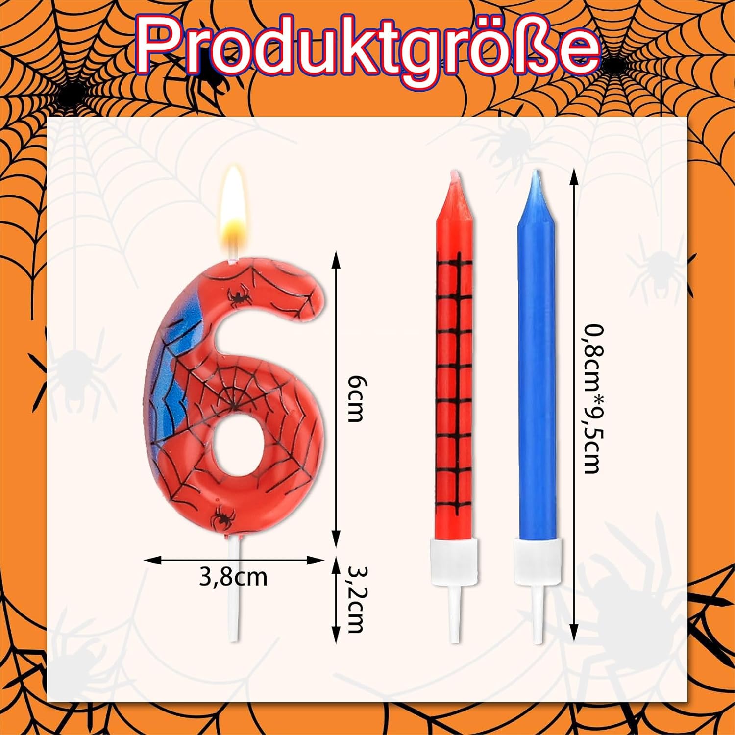 Candela numerica: la confezione include 13 candele a ragno, 1 candela di compleanno 6, classica combinazione di colori rosso e blu e quantità sufficiente per soddisfare la decorazione di torte di compleanno e l'uso quotidiano. La dimensione della candela di compleanno è di circa 6 cm di lunghezza, lunghezza totale (compresi i brufoli di candela) è di circa 10 cm, dimensioni giuste come decorazione per torta per la maggior parte dei compleanni Materiale sicuro: le nostre candele di compleanno sono realizzate con materiali ecologici, per un lungo periodo di tempo di combustione, puoi usarle con fiducia. Sicuro e inodore, adatto per torte di compleanno di qualsiasi dimensione o per qualsiasi celebrazione come festa di compleanno Aspetto delicato, sensazione di visione 5D: queste candele di compleanno sono decorate con ragni in rosso e blu, luminose e luminose al buio. E la decorazione per torte si adatta facilmente a decorazioni per feste in diversi temi e colori, adatta per la maggior parte dei tipi di torte, le nostre candele di compleanno contengono un design a trama ragno che sembra interessante, piccolo e squisito ed è la migliore decorazione per feste di compleanno con motivi a ragno e altri eventi Multiuso: è adatto non solo per compleanni di adulti e bambini, ma anche per compleanni di animali domestici. Decorazione per torta ideale per molte occasioni, per una festa indimenticabile e significativa. Queste candele Toper per torte possono essere utilizzate per feste di compleanno, baby shower, lauree, feste estive, feste di Halloween e altro ancora, e possono creare un'atmosfera indimenticabile per la vostra festa Ottima idea regalo: queste candele di compleanno non sono solo adatte per torte o cupcake, ma possono anche essere utilizzate come giocattoli o decorazioni, fantastici regali per una festa con motivi a ragno. Ogni candela è confezionata in una scatola singola per offrire una buona protezione e ridurre i danni durante il trasporto