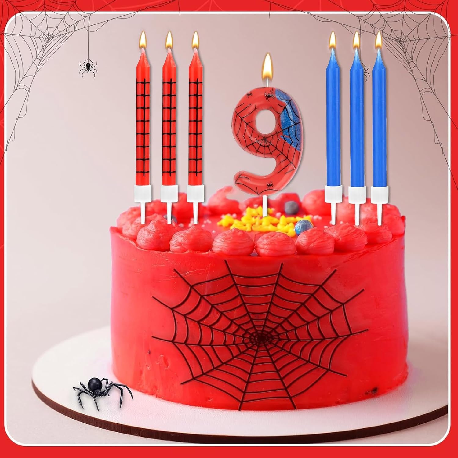 Candela numerica: la confezione include 13 candele a ragno, 1 candela di compleanno 9, classica combinazione di colori rosso e blu e quantità sufficiente per soddisfare la decorazione di torte di compleanno e l'uso quotidiano. La dimensione della candela di compleanno è di circa 6 cm di lunghezza, lunghezza totale (compresi i brufoli di candela) è di circa 10 cm, dimensioni giuste come decorazione per torta per la maggior parte dei compleanni Materiale sicuro: le nostre candele di compleanno sono realizzate con materiali ecologici, per un lungo periodo di tempo di combustione, puoi usarle con fiducia. Sicuro e inodore, adatto per torte di compleanno di qualsiasi dimensione o per qualsiasi celebrazione come festa di compleanno Aspetto delicato, sensazione di visione 5D: queste candele di compleanno sono decorate con ragni in rosso e blu, luminose e luminose al buio. E la decorazione per torte si adatta facilmente a decorazioni per feste in diversi temi e colori, adatta per la maggior parte dei tipi di torte, le nostre candele di compleanno contengono un design a trama ragno che sembra interessante, piccolo e squisito ed è la migliore decorazione per feste di compleanno con motivi a ragno e altri eventi Multiuso: è adatto non solo per compleanni di adulti e bambini, ma anche per compleanni di animali domestici. Decorazione per torta ideale per molte occasioni, per una festa indimenticabile e significativa. Queste candele Toper per torte possono essere utilizzate per feste di compleanno, baby shower, lauree, feste estive, feste di Halloween e altro ancora, e possono creare un'atmosfera indimenticabile per la vostra festa Ottima idea regalo: queste candele di compleanno non sono solo adatte per torte o cupcake, ma possono anche essere utilizzate come giocattoli o decorazioni, fantastici regali per una festa con motivi a ragno. Ogni candela è confezionata in una scatola singola per offrire una buona protezione e ridurre i danni durante il trasporto