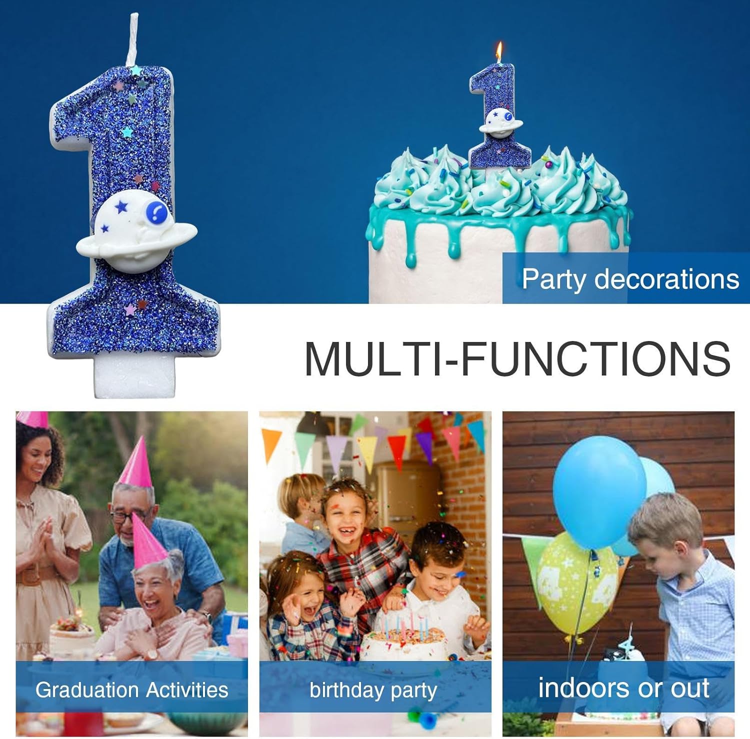 Design accattivante: la luce blu brillante di questa candela con numero di compleanno crea un effetto accattivante istantaneo, mentre il suo design scintillante aggiunge un tocco di divertimento alle celebrazioni di compleanno. Rendi la giornata dei tuoi amici e familiari ancora più speciale con questa candela straordinaria Candele numerate: completa l'arredamento della tua festa con queste affascinanti candele a cifre. Il set è disponibile in tutti i numeri da 0 a 9, fornendo più possibilità di età Candele a tema spaziale: trasforma una torta normale in un universo mistico con questa candela con numero di compleanno blu del pianeta spaziale. Aggiunge un tocco di fantasia maestosa, rendendo la celebrazione più affascinante e indimenticabile Sicuro per gli utenti: il fondo della candela è saldamente progettato, rendendolo facile da inserire nella torta, assicurando che non si pieghi o cada, fornendo maggiore sicurezza per le celebrazioni e rendendolo sicuro per i bambini da usare Progettato per le feste: ideale per una festa a tema spaziale per i bambini, parte dell'intera decorazione per feste o un'aggiunta romantica a una festa per adulti, non solo il momento clou della torta di compleanno