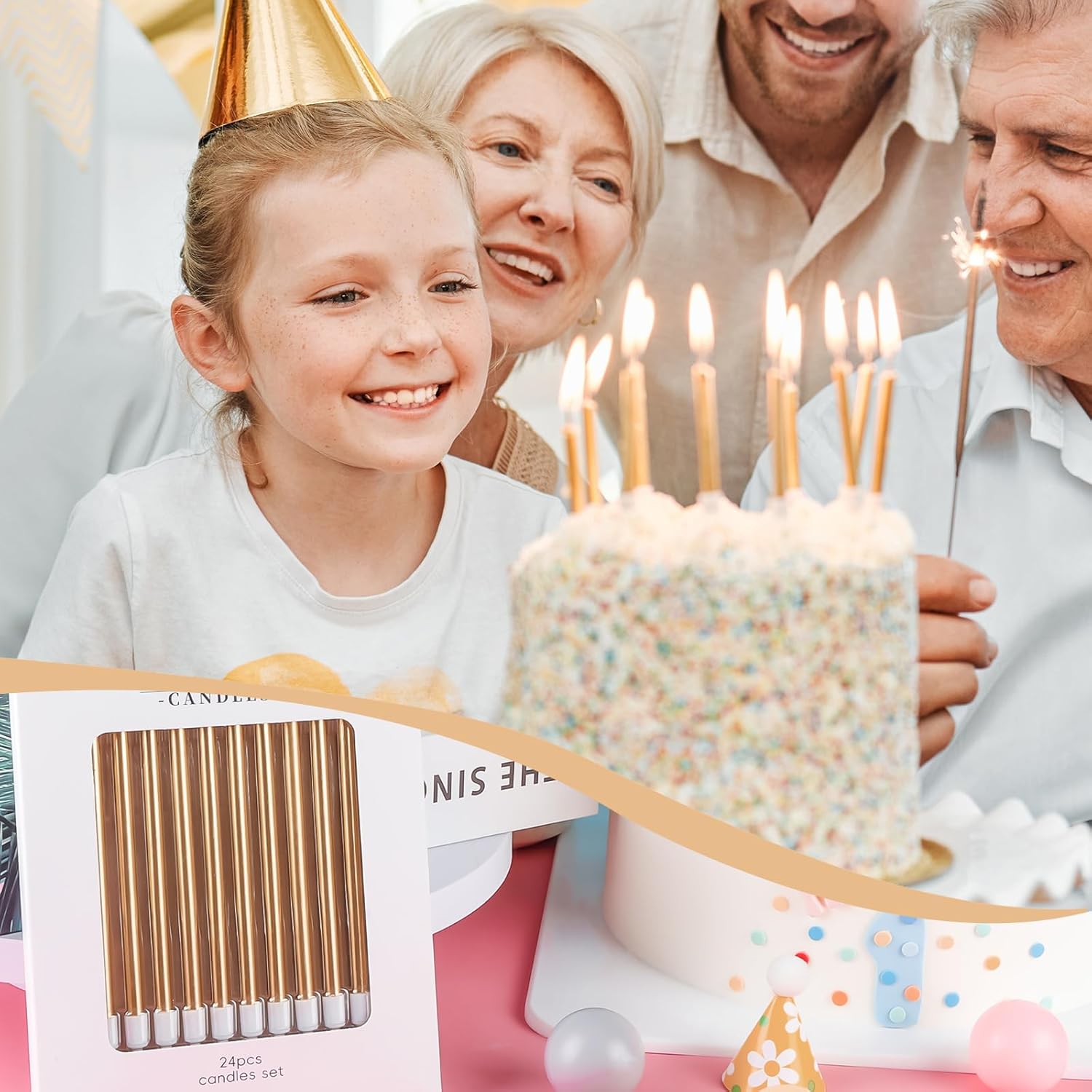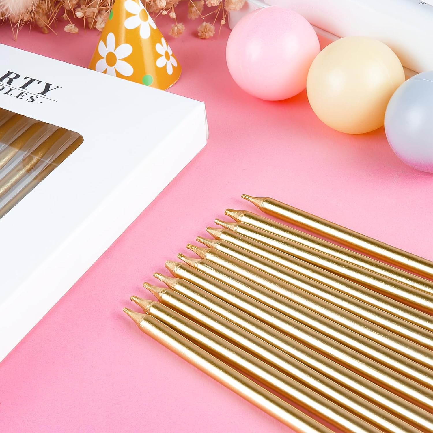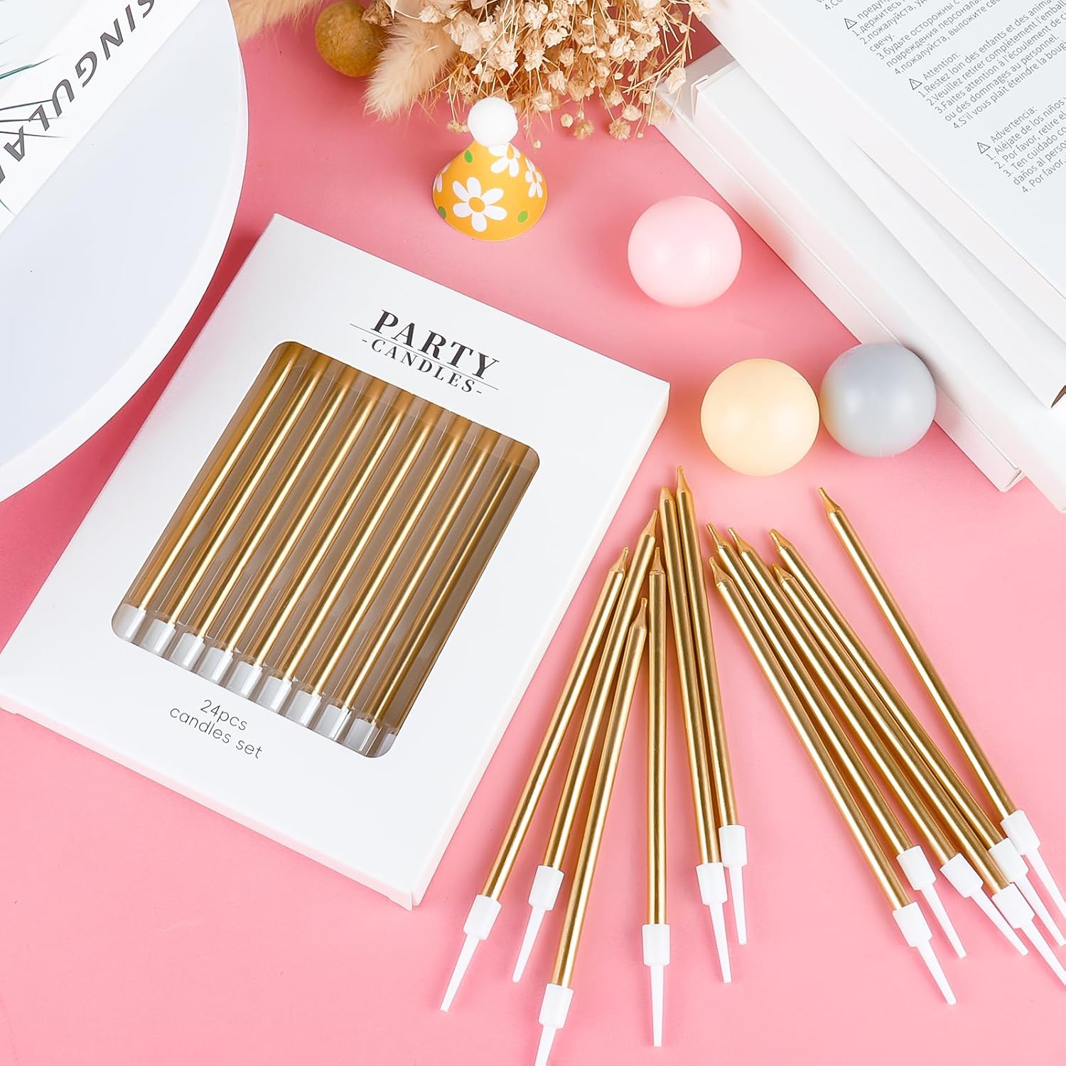Informazioni sulle candele sottili e lunghe: riceverai 24 candele di compleanno in 1 scatola. L'altezza delle candele di compleanno è di 10 cm, il tempo di combustione è di circa 5 minuti e le dimensioni adeguate come decorazione per torta per la maggior parte delle torte di compleanno e nuziali. Colori oro champagne: le candele color oro champagne sono adatte sia per ragazzi che per ragazze, uomini e donne. I colori delle candele sono molto belli e luminosi e hanno fatto una bella scena. Il colore Champagne Gold li rende davvero raffinati e versatili Materiale sicuro: le nostre candele di compleanno sono realizzate con materiali ecologici, sicure e inodori, adatte per torte di compleanno di qualsiasi dimensione o per qualsiasi celebrazione come feste di compleanno, anniversari, feste a tema ecc. Candele ideali per torte di compleanno, candele di buon compleanno, numero di candele di compleanno. Le candele sottili possono decorare perfettamente la tua torta. Multiuso: questa candela è in colori colorati, luminosa e brillante al buio. E si abbina facilmente a decorazioni per feste di vari temi e colori. Non è solo per i compleanni dei bambini, ma anche per i compleanni degli adulti. Decorazione ideale per torte per molte occasioni, come compleanni, baby shower, anniversari, feste di pensionamento, riunioni di famiglia, matrimoni, feste hawaiane, persino Natale, oggetti indispensabili per torte per feste, per una festa memorabile e significativa Aspetto delicato, senso visivo classico: le candele per torta di buon compleanno sono significative per festeggiare il tuo compleanno e una bella decorazione per torta per abbellire torte e cupcake, bagliore luminoso per creare un'atmosfera romantica e aggiungere un tocco elegante