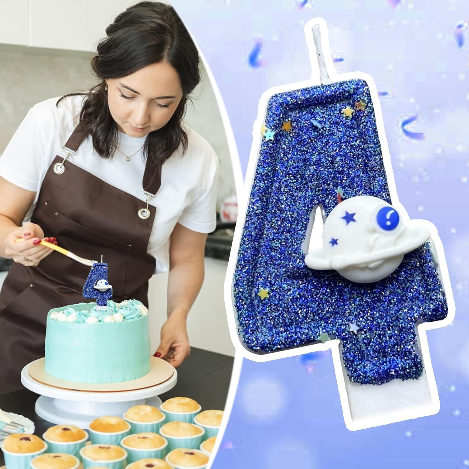 Design blu: preparati a stupire in qualsiasi festa di compleanno con questo brillante candela numero blu e un look unico che aggiunge divertimento con un design luminoso Decorazione versatile: la decorazione della torta set completi di candele digitali da 0 a 9 numeri sono disponibili e possono essere combinati per qualsiasi età, rendendo più facile aggiungere un tocco unico alla tua celebrazione speciale Decorazione di attraenti pianeti spaziali: infondere stupore ed eccitazione alla tua festa di compleanno con questo accattivante pianeta dello spazio blu Design Birthday Cake Topper. Aggiungi un tocco di fantasia alla torta tradizionale, creando uno splendido scenario che rende la celebrazione più memorabile Sicuro per gli utenti: il numero della torta di compleanno, le candele della candela sono ben progettate, il che rende facile inserire nella torta, assicurando che non si inclini o cada, fornendo più sicurezza per le celebrazioni e che sia sicuro per i bambini. Progettato per le feste: candele decorative ideali per una festa a tema spaziale per i bambini, parte dell'intera decorazione della festa o un'aggiunta romantica a una festa per adulti, non il momento clou della torta di compleanno.