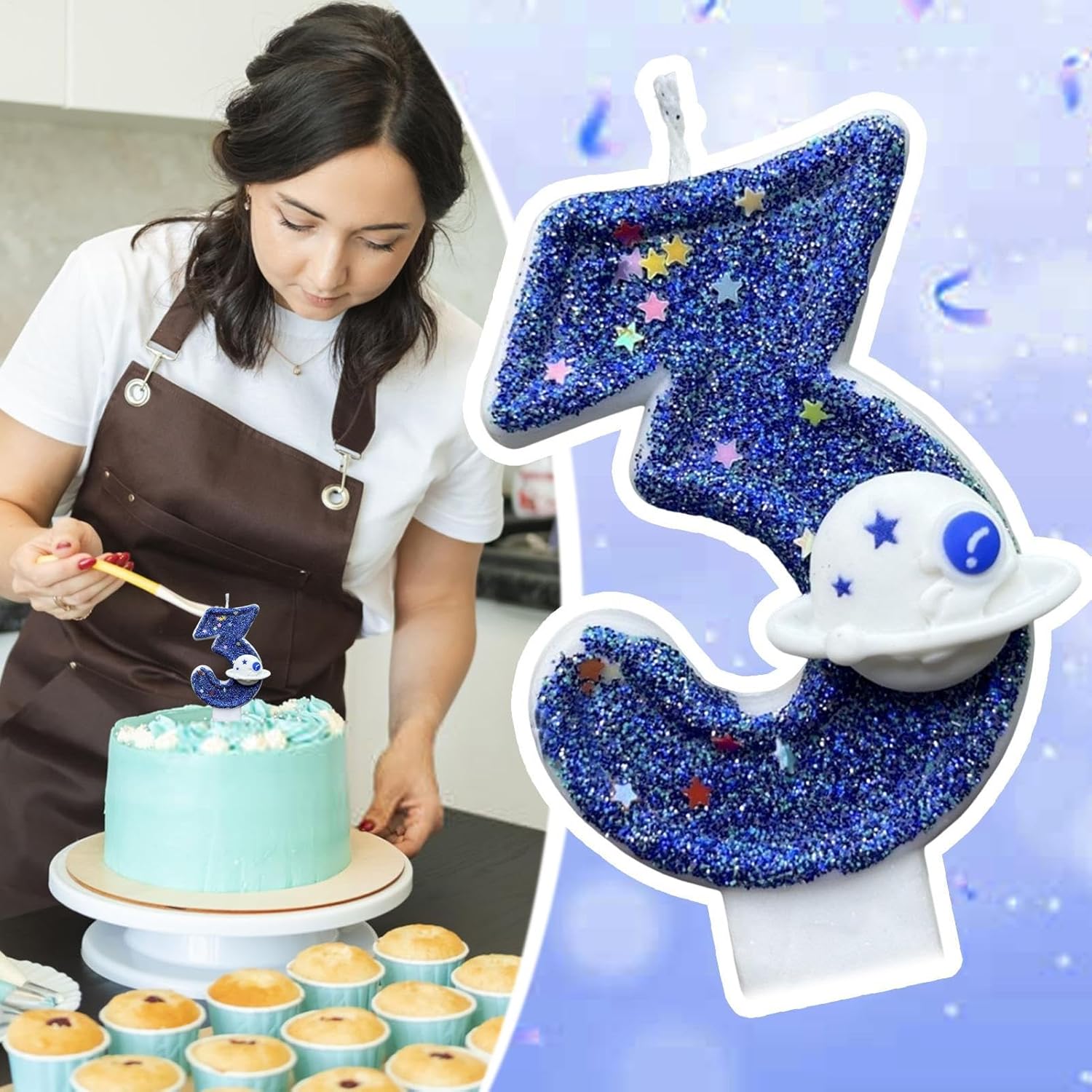 Design di colore blu: preparati a stupire in qualsiasi celebrazione di compleanno con il fascino e l'aspetto brillante di questa candela Blue Number che aggiunge divertimento con un design scintillante Decorazione versatile: set completi di candele digitali da 0 a 9 numeri sono disponibili e possono essere combinati per qualsiasi età, rendendo facile aggiungere un tocco alla tua celebrazione speciale Attraente decorazione del pianeta spaziale: infondere soggezione ed eccitazione alla tua festa di compleanno con questo accattivante topper per torta di compleanno con design a pianeta spaziale blu. Aggiungi un tocco di fantasia alla torta tradizionale, creando un bellissimo paesaggio che rende la celebrazione più memorabile Sicuro per gli utenti: il fondo della candela è progettato saldamente, rendendolo facile da inserire nella torta, assicurando che non si pieghi o cada, fornendo più sicurezza per le celebrazioni e rendendolo sicuro per i bambini da usare Progettato per feste: candele decorative ideali per una festa a tema spaziale per i bambini, parte dell'intera decorazione della festa, o un'aggiunta romantica a una festa per adulti, non solo il momento clou della torta di compleanno