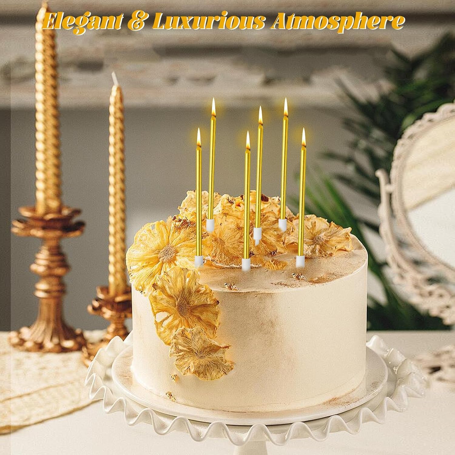[Alta qualità e sicure] Le candele di compleanno sono realizzate in cera di alta qualità per garantire una combustione stabile e duratura, con ogni candela che brucia per circa 7 minuti. Inoltre, la candela per torta non emette alcun odore sgradevole durante la combustione. La base alimentare di alta qualità può entrare in contatto diretto con la torta, garantendo un uso sicuro. [Design pratico] La base della candela dorata è realizzata con materiali alimentari di alta qualità, che la rendono sicura per il contatto diretto con la torta. Inoltre, il design della base impedisce efficacemente alla cera di gocciolare sulla torta, mantenendola pulita, mentre il suo eccellente supporto garantisce la stabilità della candela. [Atmosfera elegante e lussuosa] La candela d'oro presenta un design unico e squisito. La sua forma allungata si distingue tra le altre candele, trasudando eleganza. L'esterno dorato conferisce a questa candela un'atmosfera lussuosa e sofisticata. L'oro simboleggia la nobiltà e la celebrazione, abbinando perfettamente vari temi degli eventi. Vari usi: le candele scintillanti per torte sono ottime decorazioni per torte o cupcake, adatte per matrimoni, compleanni, baby shower, addio al nubilato, feste e altre occasioni importanti. Se vuoi rendere la tua festa più colorata e creativa, queste sono altamente raccomandate. [Ampia quantità] Il set include 6 scatole di candele per torte, con ogni scatola contenente 6 candele, per un totale di 36 candele. Ogni candela di compleanno è alta 11,2 cm, con un'altezza di base di circa 2,9 cm. La lunghezza delle candele di compleanno può essere regolata secondo necessità. L'ampia quantità è sufficiente per soddisfare le esigenze delle vostre varie celebrazioni.
