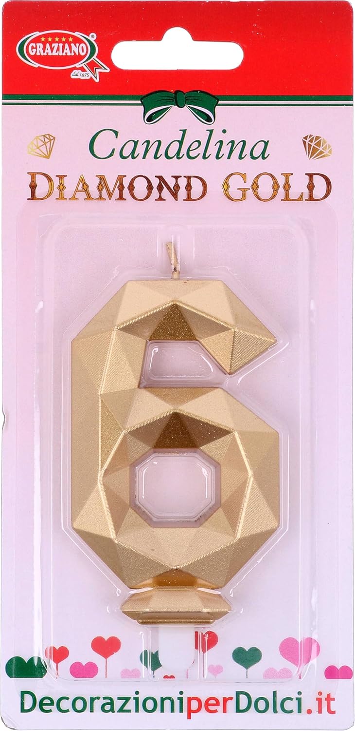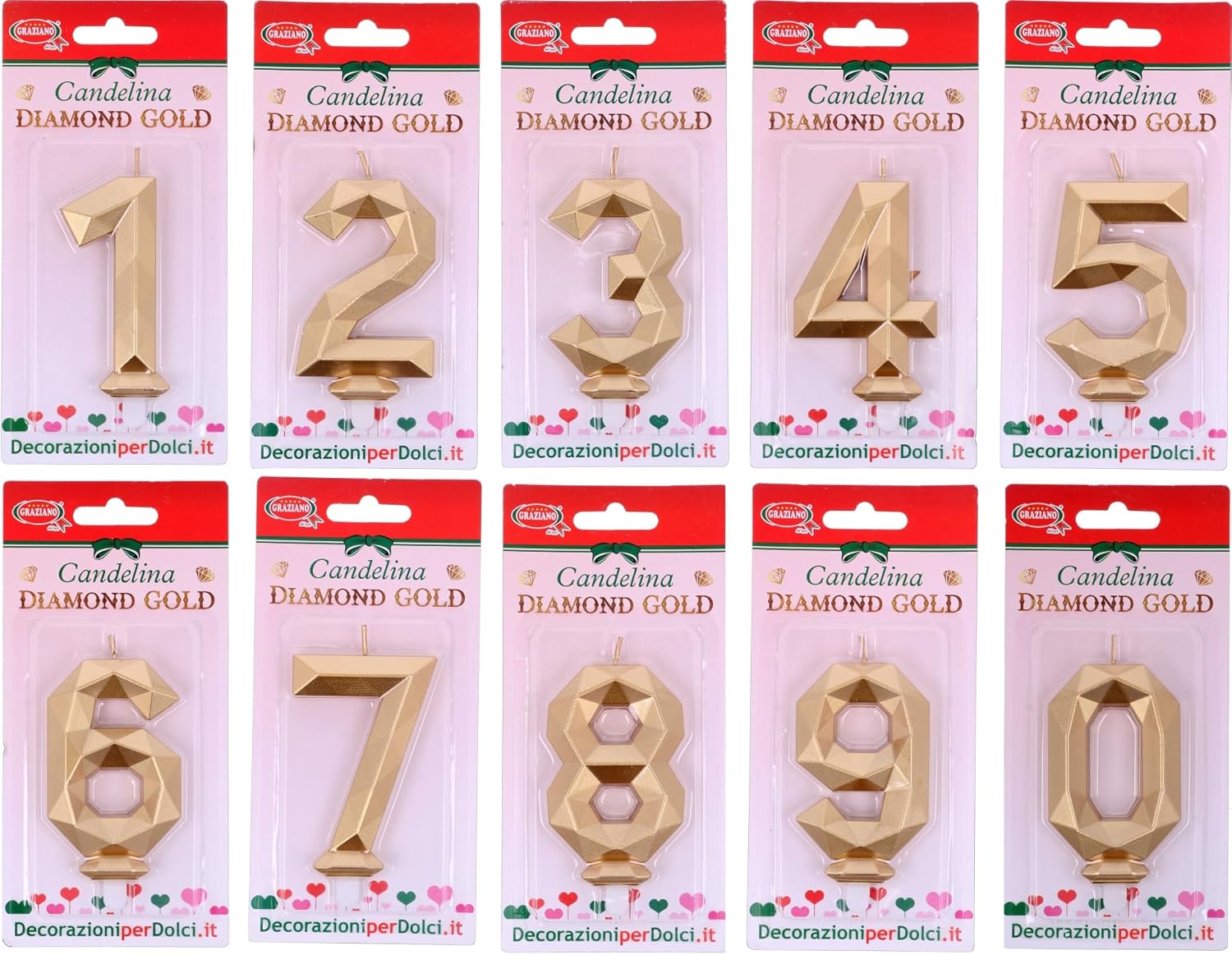 Le nostre eleganti candeline numerali colore oro, con una raffinata sagoma a effetto diamante, aggiungeranno un tocco di classe a ogni torta. Qualità Premium: Realizzata con materiali di alta qualità, garantisce una fiamma stabile e sicura, perfetta per soffiare sulle candeline e fare un desiderio. Ogni candelina è dotata di un pratico supporto trasparente per un facile posizionamento. Dimensioni: 8 cm + piedino da 1 cm GRAZIANO - Da cinquant'anni Graziano offre a chiunque la propria esperienza e i propri prodotti per realizzare deliziosi dolci fatti in casa. Solo da noi trovi tutto l'occorrente per preparare e creare dolci e torte. Scegli tra una vasta selezione di decorazioni per torte, attrezzature e ingredienti, coloranti alimentari, pasta di zucchero e molto altro