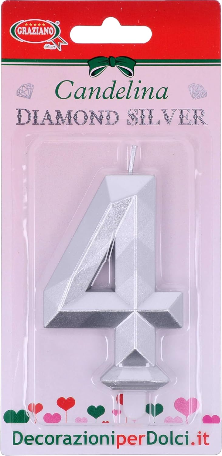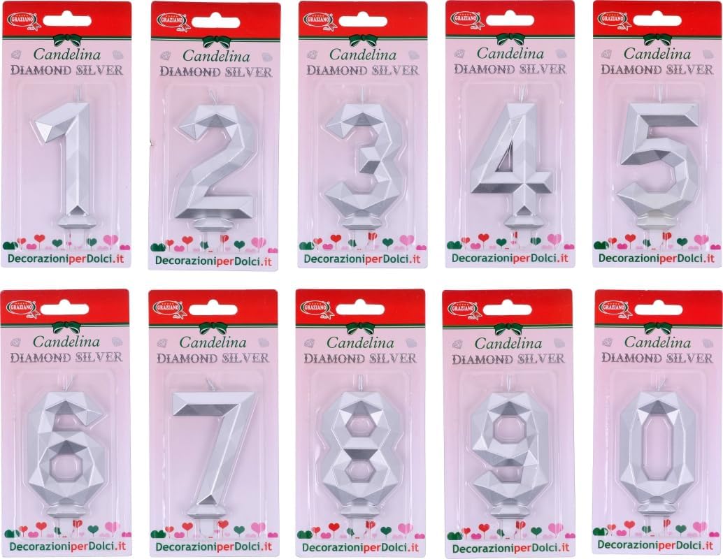 Le nostre eleganti candeline numerali colore argento, con una raffinata sagoma a effetto diamante, aggiungeranno un tocco di classe a ogni torta. Qualità Premium: Realizzata con materiali di alta qualità, garantisce una fiamma stabile e sicura, perfetta per soffiare sulle candeline e fare un desiderio. Ogni candelina è dotata di un pratico supporto trasparente per un facile posizionamento. Dimensioni: 8 cm + piedino da 1 cm GRAZIANO - Da cinquant'anni Graziano offre a chiunque la propria esperienza e i propri prodotti per realizzare deliziosi dolci fatti in casa. Solo da noi trovi tutto l'occorrente per preparare e creare dolci e torte. Scegli tra una vasta selezione di decorazioni per torte, attrezzature e ingredienti, coloranti alimentari, pasta di zucchero e molto altro