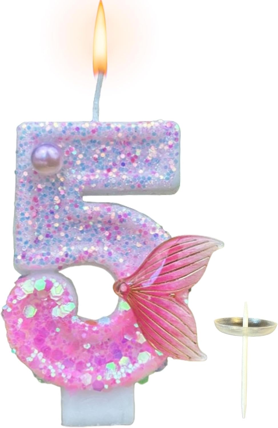 Candelina Argento da 6 cm Ideale per le tue feste di compleanno Compresa di base per facilitare il posizionamento sul tuo dolce