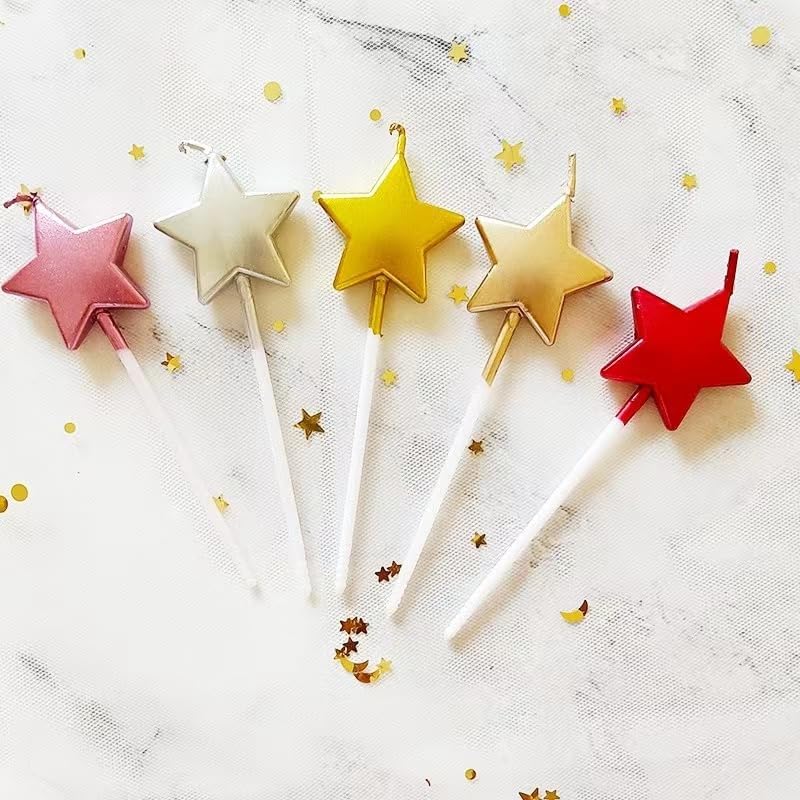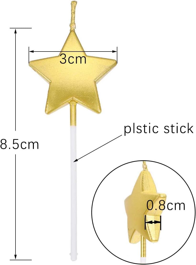 🎉【Size】: Total length: 9.8 cm/3.85 inches, star width: 2.8 cm/1.10 inches, height: 2.8 cm/1.10 inches, for 7 minutes. 🎂【Star Shaped Birthday Candles】: 5 Cute Star-Shaped Birthday Candles Cake Candle- for Party, Wedding and Cake Decoration Supplies. Colors: gold 🎉【Safe & Durable】: Made of safe material, high-quality and durable, it can be used for many times. Widely used for decoration of birthday cake, wedding cake, and other occasions. 🎉【Widely Used】:Perfect for Birthday Decoration, such as birthday candle, birthday cake candles, sparkling candles. Adding interesting star-shaped candles can bring people a happy and warm atmosphere, while the style brings you a pleasant feeling. 🎁【Perfect For Decoration】: decorate cakes at birthday parties, wedding parties or all parties to make the cake more lovely, and the unique design makes your cake more.