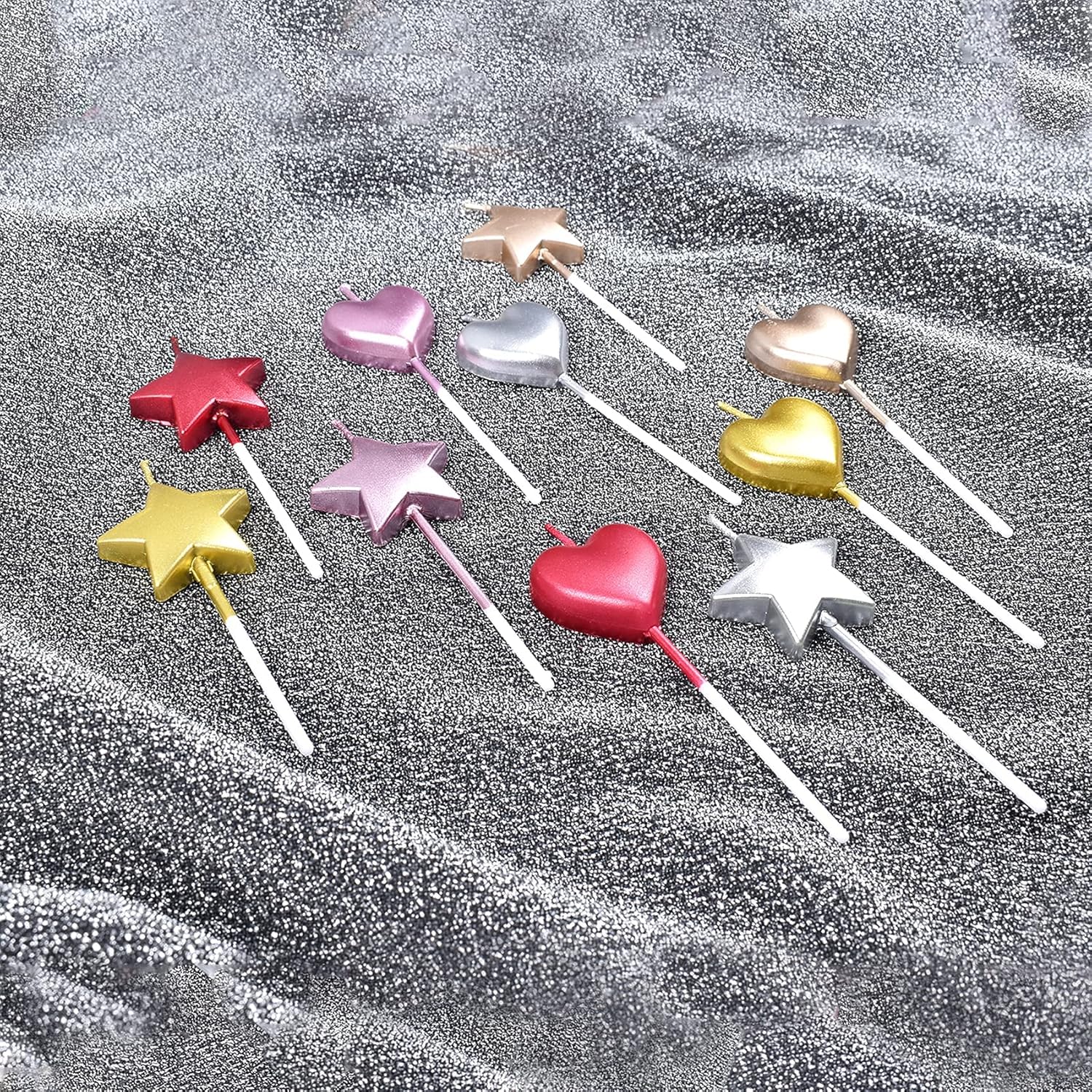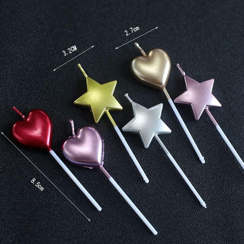 Candele a forma di stella e colorate con rivestimento metallico, aggiungono più sofisticazione Dimensioni: lunghezza totale: 10,5 cm, larghezza: 3 cm, altezza candela: 4 cm Materiale: le candele a stella sono realizzate in cera alimentare, sicure, non tossiche, biodegradabili, rispettose dell'ambiente Metallico: le candele glitterate aggiungono un tocco di bagliore elegante e luminoso creano un'atmosfera romantica alla tua celebrazione, facili da accendere e inserirle in torte e cupcakes Ampia applicazione: decora torte a feste di compleanno, feste di matrimonio o tutte le feste per rendere la torta più adorabile e il design unico rende la tua torta più deliziosa