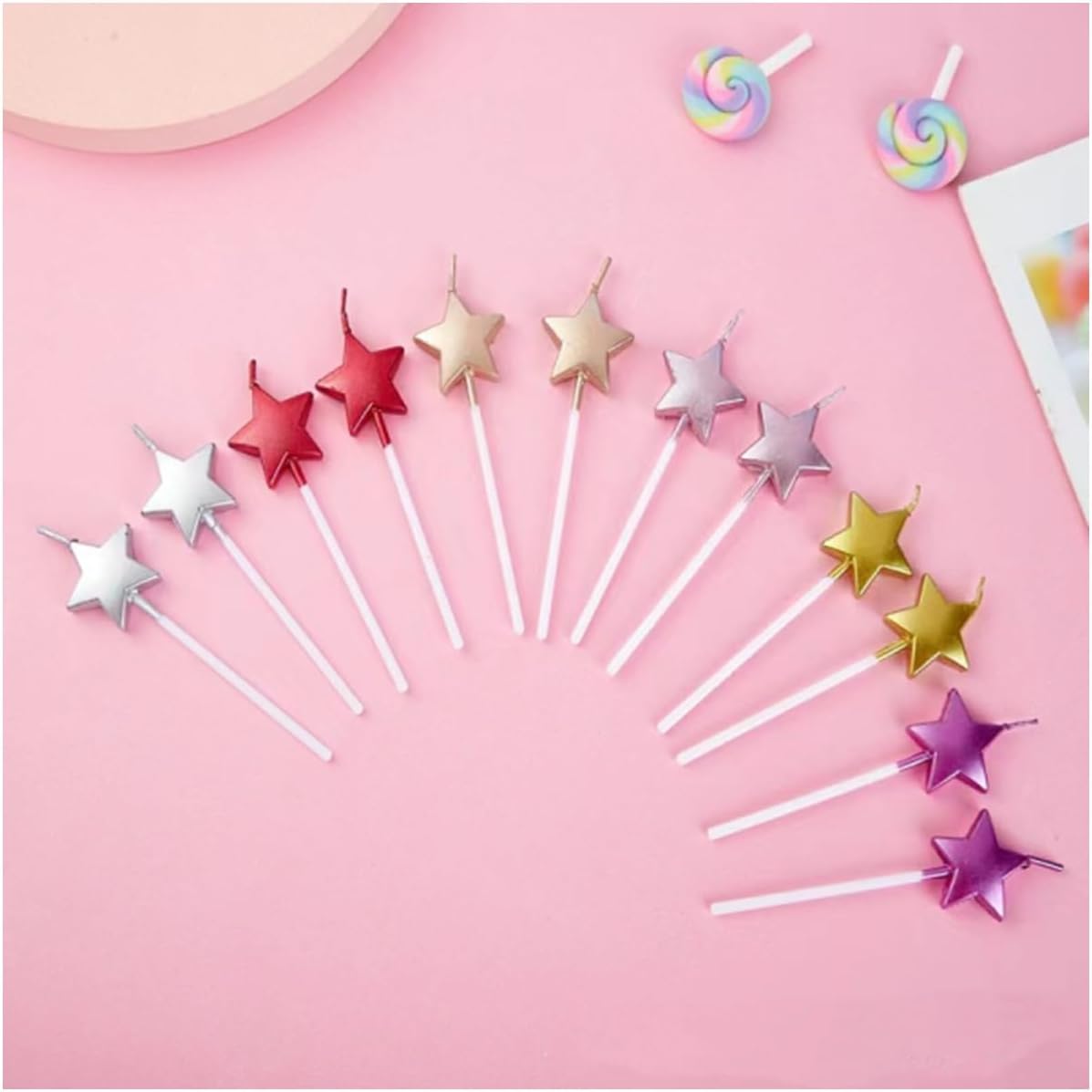 La confezione include: Riceverai 10 candeline di compleanno a forma di stella, con rivestimento metallico, molto delicate. Divertenti candele a forma di stella possono portare alle persone un'atmosfera felice e calda, mentre lo stile infantile ti regala una sensazione piacevole. Sicuro e durevole: realizzato con materiali sicuri, di alta qualità e durevoli, può essere utilizzato molte volte. Ampiamente usato per la decorazione di torte di compleanno, torte nuziali e altre occasioni. Otterrai delle candeline di compleanno per torte fresche e deliziose con incredibili colori metallici brillanti, che emettono una luce brillante al buio. È facile accenderli e inserirli in torte e cupcakes. Queste candele per feste di compleanno possono essere utilizzate come decorazioni per torte con candele multicolori per qualsiasi festa e bruciano in modo uniforme e coerente. Ci dedichiamo a fornire prodotti e servizi migliori. Se avete domande, non esitate a contattarci.