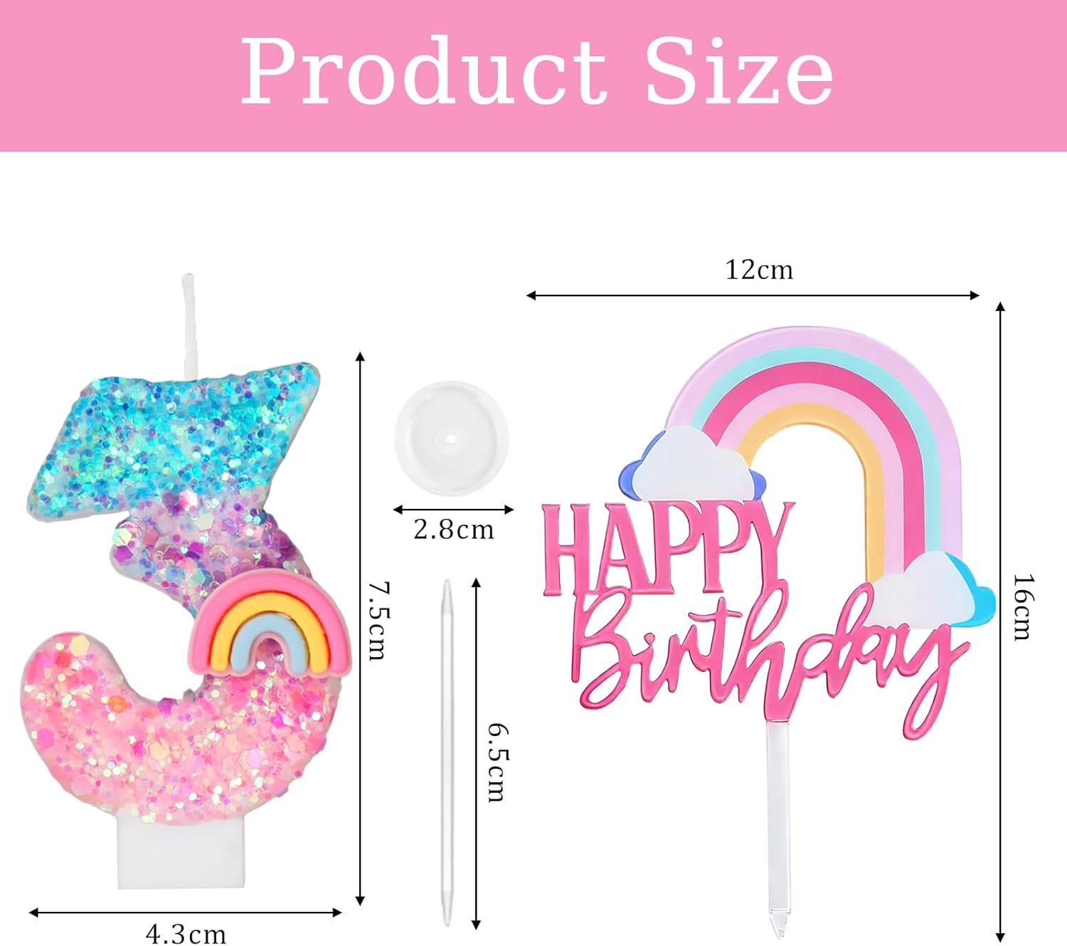 Set di candeline di compleanno: riceverai una candela di compleanno arcobaleno a forma di numero 3 e una decorazione arcobaleno per torta. Il corpo della candela misura circa 7,5 cm di lunghezza, con uno stelo del portacandela lungo circa 6,5 cm, adatto per decorare la maggior parte delle torte di compleanno o qualsiasi occasione di festa. Materiali di alta qualità: le nostre candeline per il terzo compleanno sono realizzate con materiali ecologici, che garantiscono la loro sicurezza, l'assenza di odori e la facilità di accensione. Sono l'ornamento perfetto per torte di compleanno, candeline di buon compleanno e candeline con numeri di compleanno, rendendole ideali per feste di compleanno, anniversari, celebrazioni a tema e altro ancora. Design unico: queste candeline arcobaleno hanno un design tridimensionale con colori vivaci e brillanti, che aggiungono un tocco di allegria alle torte di compleanno e ti aiutano a festeggiare un compleanno memorabile e significativo. Uso versatile: adatte per decorare torte in varie occasioni come feste di compleanno, baby shower, Pasqua, Halloween, matrimoni, anniversari e Natale, queste candeline di compleanno aggiungono un tocco di allegria alla tua torta. Regalo ideale: caratterizzate da design adorabili e giocosi, queste candeline decorative non sono solo perfette per torte o cupcake, ma possono anche essere utilizzate come giocattoli o oggetti decorativi. Adatte a bambine, bambini, donne e uomini, sono il regalo perfetto per qualsiasi festa a tema o compleanno.