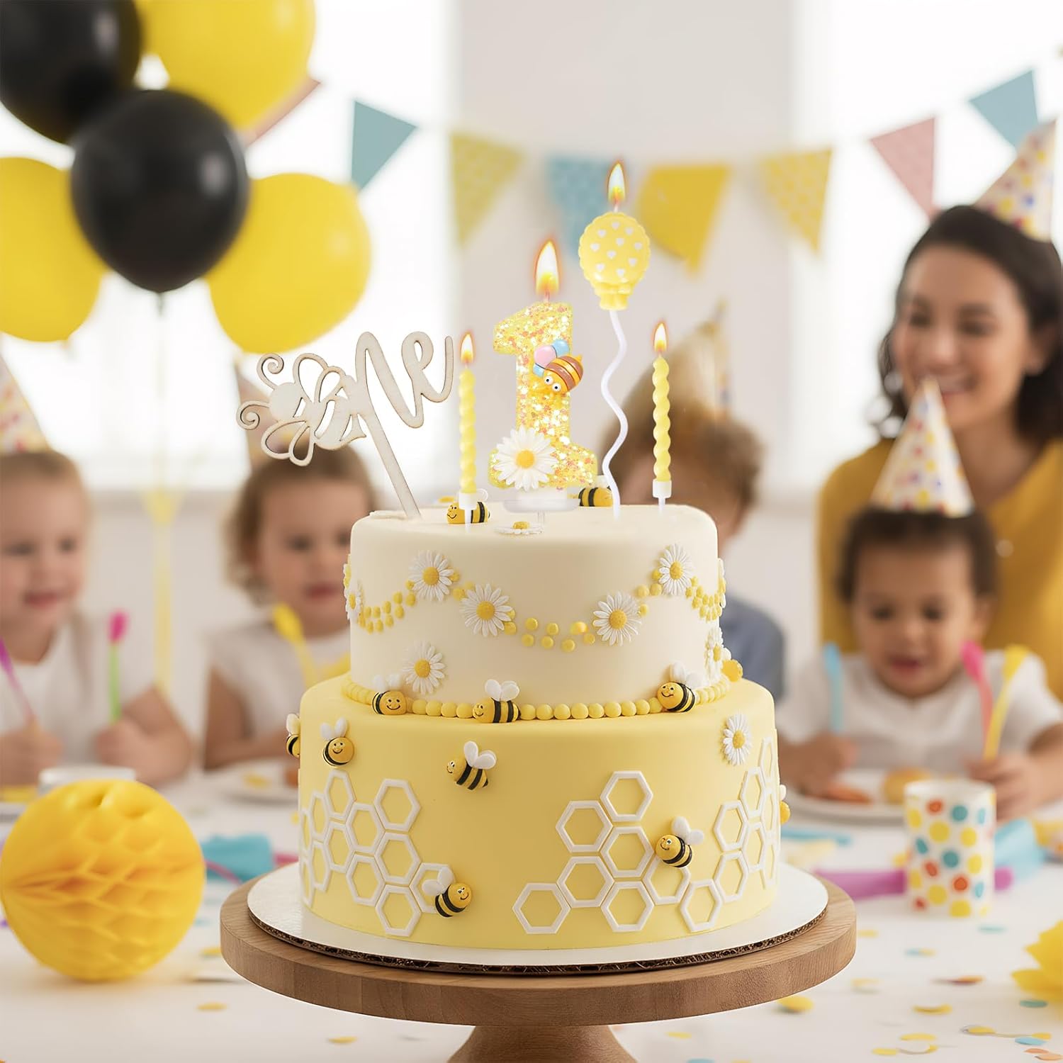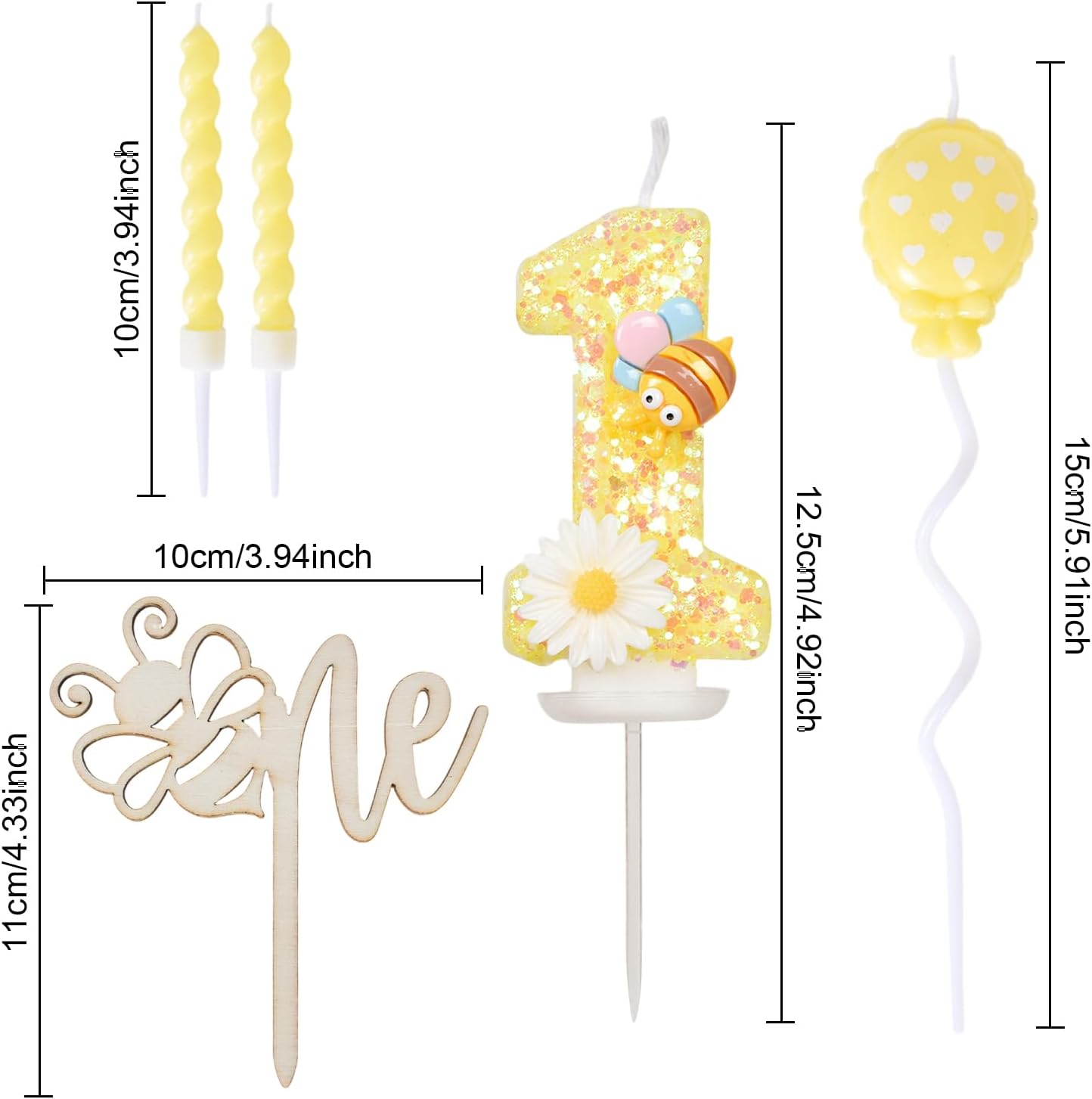 La Confezione Include: 1 candela gialla scintillante 3D con il numero 1, decorata con motivi a forma di ape e accenti floreali, 2 candele a spirale gialle, 1 candela a forma di palloncino e un cake topper a forma di ape in legno. Ideale per decorare torte, cupcake o tavoli da dessert per il primo compleanno. Materiale Sicuro: La candela gialla con il numero è realizzata con materiali ecocompatibili, sicuri e inodori. I cake topper in legno hanno una tonalità naturale, sono belli e riutilizzabili e si adattano a qualsiasi tema per feste. Aspetto Raffinato: I nostri cake topper per torte di compleanno hanno un forte effetto tridimensionale. Le api e i fiori tridimensionali e flessibili, così come le paillettes scintillanti sulle candele, aggiungeranno colore alla tua festa e al tuo compleanno. Meriti una decorazione speciale e raffinata per il primo compleanno. Confezionata Singolarmente: Ogni candela con il numero è confezionata singolarmente per proteggerla e ridurre i danni durante la spedizione. Ogni candela è dotata anche di un supporto in modo che non entri in contatto diretto con la torta, soddisfacendo tutte le esigenze della tua festa di compleanno. Versatili: Si abbinano facilmente a vari temi e colori per le decorazioni delle feste. Sono adatti non solo per i compleanni dei bambini, ma anche per quelli degli adulti, inclusi compleanni, baby shower, anniversari, feste di pensionamento, riunioni di famiglia, matrimoni e feste luaus.