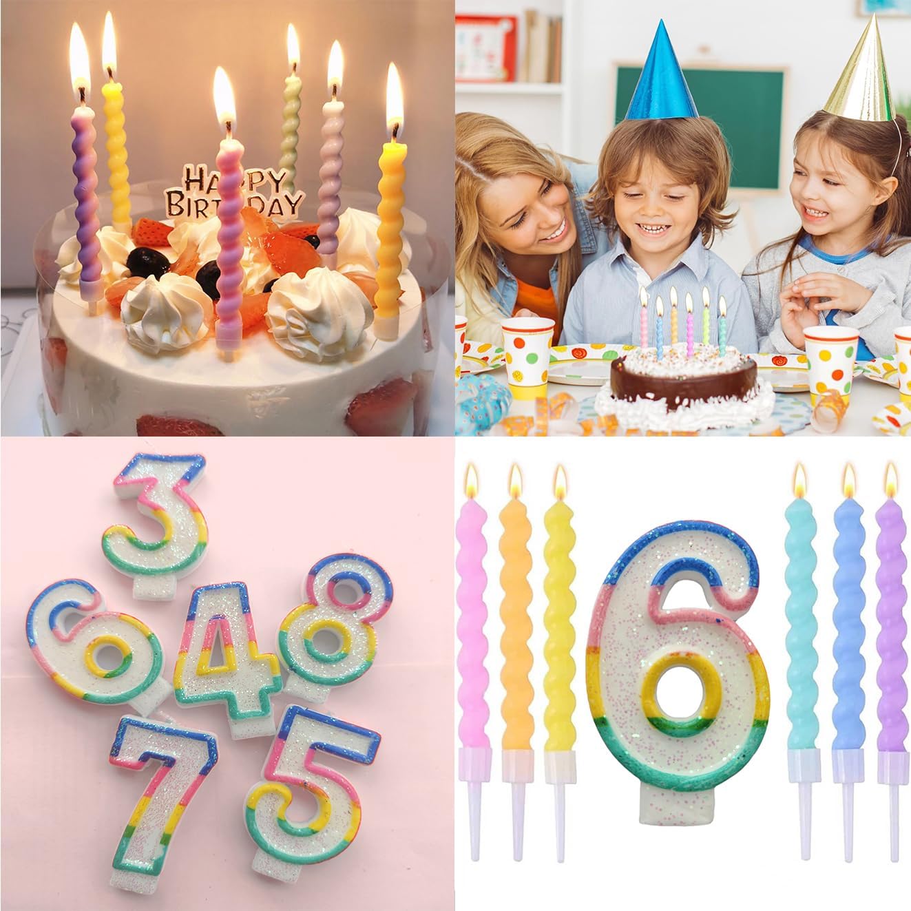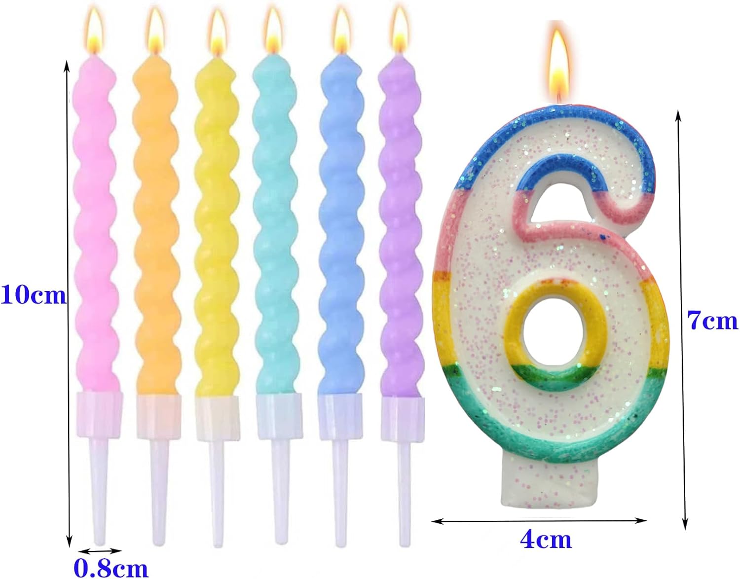 Aspetto delicato: arcoballo candele compleanno, colorate candele compleanno, incredibile candele torta decorazione, ideale come decorazione di compleanno. E si adatta facilmente alle decorazioni di festa in diversi temi e colori Materiale di alta qualità: Questa candela di compleanno dei numeri è costituita da cera di alta qualità, è sicura e non velenosa, sicura per i bambini e l'ambiente Creare un'atmosfera: le candele di torta di buon compleanno sono significative per voi per festeggiare il vostro compleanno e una bella decorazione di torta per abbellire la vostra torta e cupcake, luci luminose per creare un'atmosfera romantica e aggiungere un tocco di eleganza Adatto per molte occasioni: Le nostre candele di compleanno scintillanti sono adatte per molte occasioni come feste di compleanno, matrimoni, giubilei, eventi aziendali, o festeggiare e chiedere matrimonio e dare alla vostra festa un'atmosfera romantica e dolce Packlist: riceverete 1 x candela numerica (le candele di compleanno con numeri sono lunghe circa 8 cm), 6 x candele a torta lunghe (le candele lunghe sono lunghe circa 10 cm), perfetto per decorare le torte di compleanno