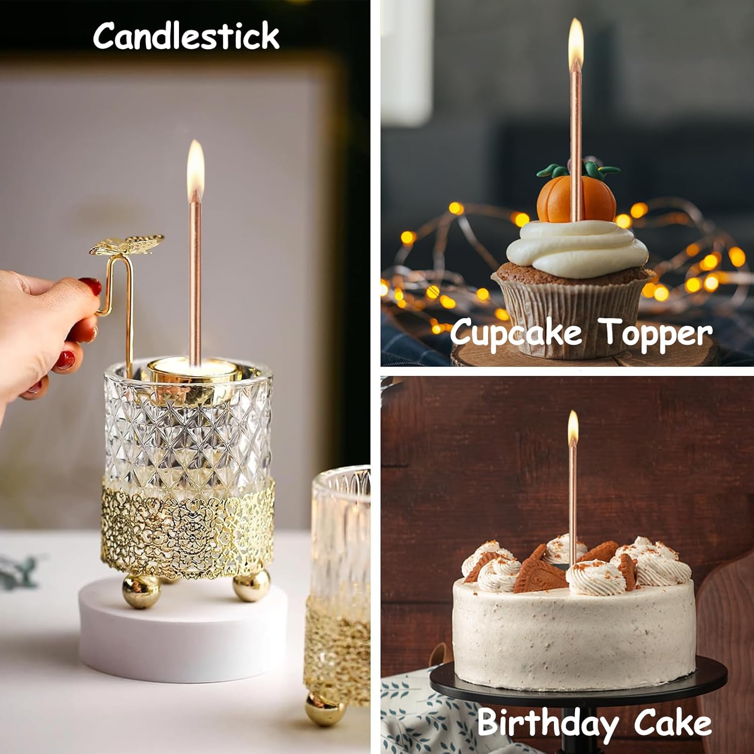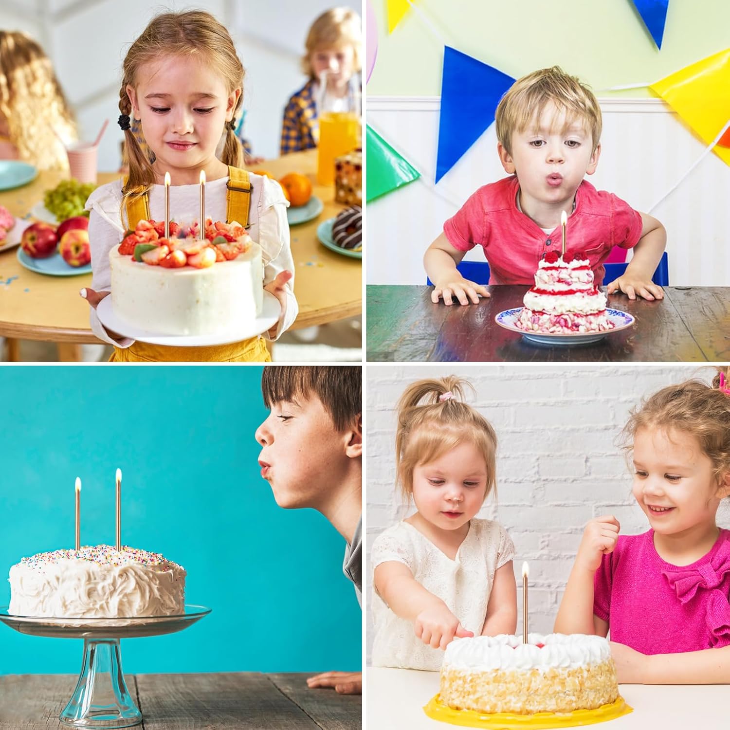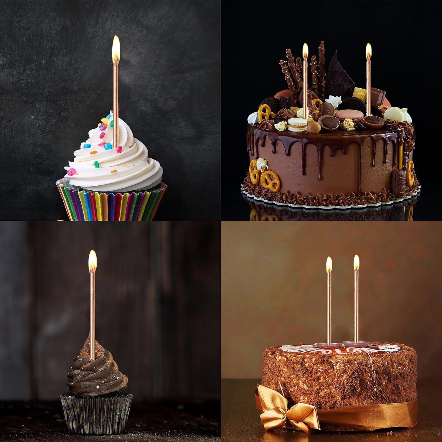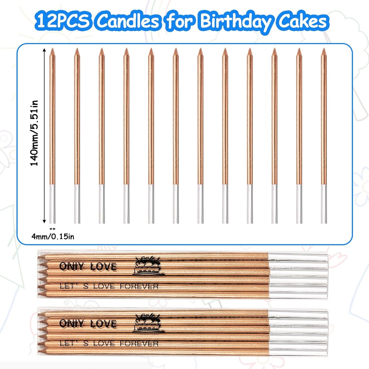 ★ 【ASPETTO SQUISITO】 Le candele sono ricoperte da un foglio, semplice ma elegante. Le candeline metalliche per cupcake daranno alla tua festa un effetto elegante e un'atmosfera romantica. ★【SOTTILE E LUNGA】Ci sono due scatole di candeline sottili per torta con supporti (12 pezzi in totale) con un'altezza di 15 cm/5,90 pollici e il tempo di combustione è di circa 7 minuti, con cui puoi cantare diversi giri di buon compleanno. ★ 【COLORI BRILLANTI】 Le candeline di compleanno sono adatte sia per ragazzi che per ragazze, donne e uomini. I colori delle candeline di compleanno con supporto sono molto luminosi e hanno una fiamma molto bella, che può creare un'atmosfera romantica. ★ 【MATERIALE SICURO】 Le nostre candeline per torta di compleanno sono realizzate in cera senza fumo e atossica, facile da inserire e accendere. Non fanno fumo e non gocciolano. Puoi essere sicuro di metterli sulla tua torta di compleanno. ★ 【AMPIO USO】 Le candeline di compleanno lunghe e sottili sono adatte a tutti i tipi di feste o occasioni speciali, come feste di compleanno, lavoro a maglia, baby shower, feste, ecc.