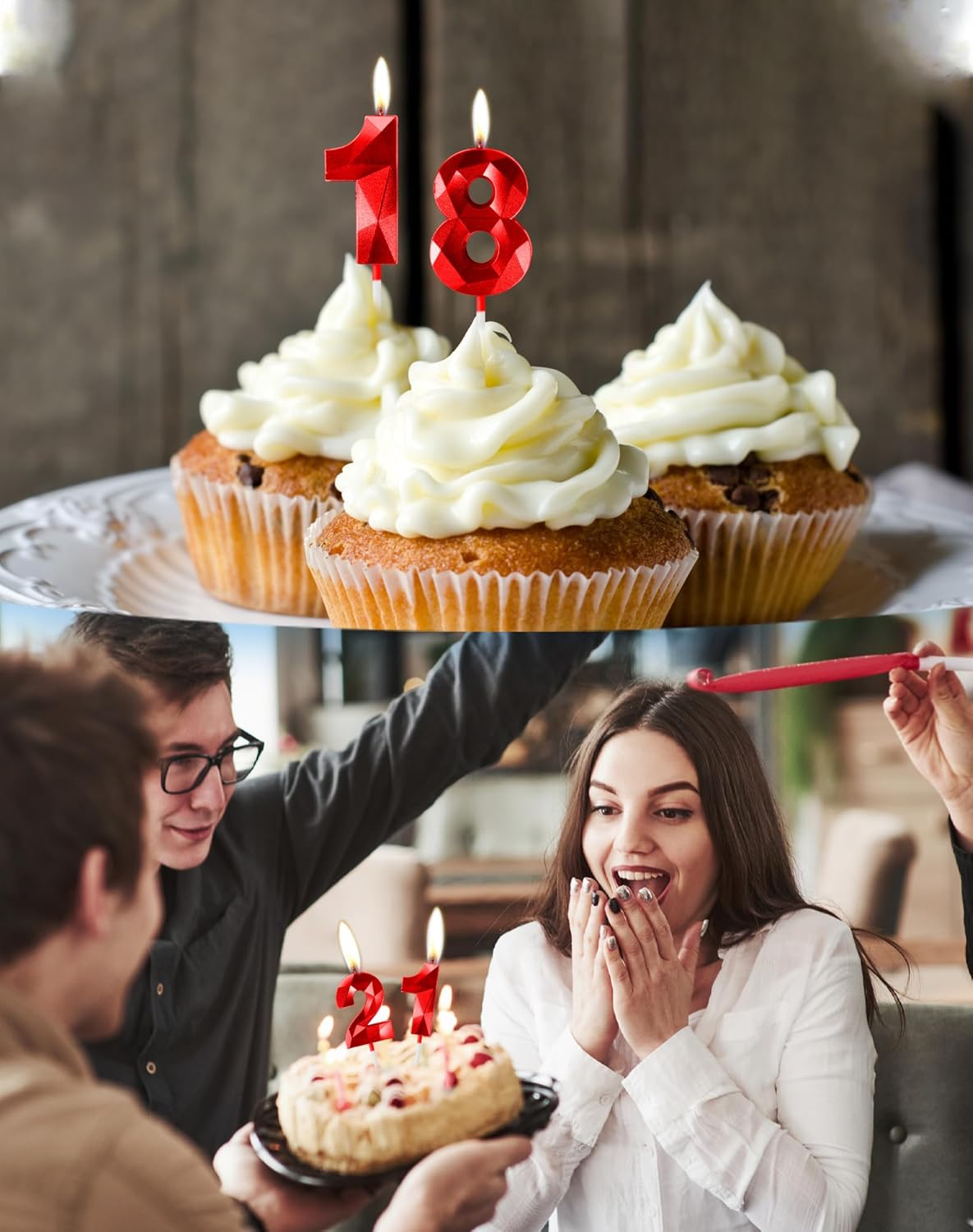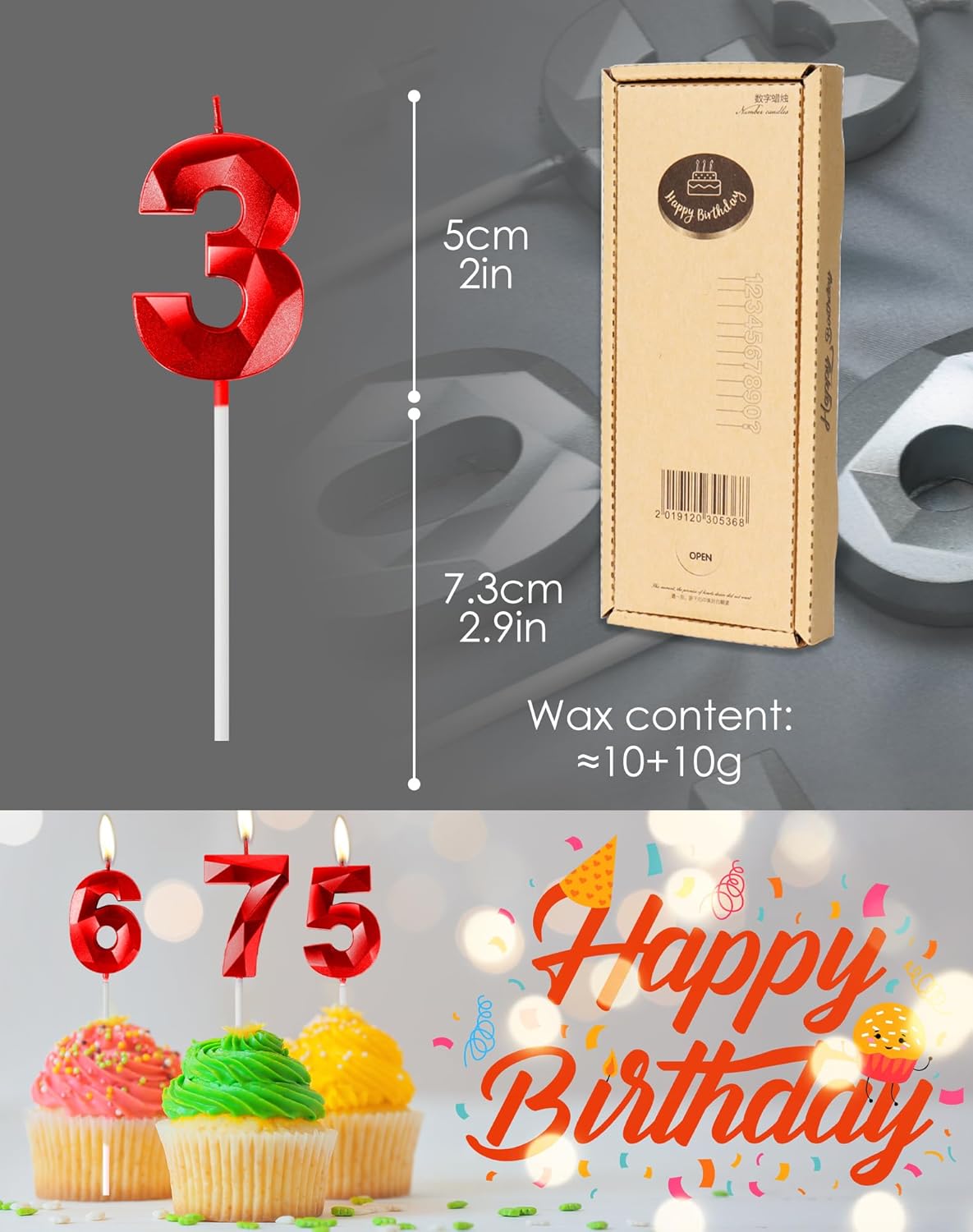 【Il pacchetto include】: Viene fornito con 2 candele numeriche con numeri rossi 1 e 2. La dimensione della candela di compleanno è lunga circa 5 cm/ 1,97 pollici, la lunghezza totale (incluso il plettro) è di circa 11,5 cm/ 4,5 pollici, dimensione giusta come decorazione per la maggior parte delle torte di compleanno e nuziali. 【MATERIALE SICURO】: Le nostre candeline di compleanno sono realizzate con materiali ecologici, sicuri, inodori e senza fumo da usare, adatte a torte di compleanno di qualsiasi dimensione o per qualsiasi celebrazione come feste di compleanno, anniversari, feste a tema ecc. Stelle filanti ideali per torte di compleanno, candele di buon compleanno, candeline di compleanno in modo da avere una buona esperienza con le nostre candele di compleanno con numeri. 【IMBALLAGGIO E ARTIGIANATO】: Le nostre candeline di compleanno hanno una forte forma tridimensionale, proprio come la superficie di taglio dei diamanti, adatta a persone di tutte le età e di entrambi i sessi. Le candeline della torta di compleanno sono confezionate in una scatola kraft, che è più protettiva rispetto alla confezione in blister sul mercato e può efficacemente impedire che la candela venga schiacciata e soddisfare le esigenze della festa di compleanno. 【Uso multiplo】 Questa candela a forma di numero è di colore rosso e scintillante, perfetta decorazione per torte per compleanni di bambini o adulti, ideale anche come decorazione per torte per molte occasioni, come feste di compleanno, giorno di nozze, baby shower, anniversari, feste di pensionamento, riunioni di famiglia, matrimoni, feste hawaiane, anche Natale e Capodanno, articolo indispensabile per le torte delle feste, per un indimenticabile e 【Suggerimenti】 Tieni le candeline di compleanno nell'ombra lontano dal fuoco. Si prega di non lasciare che il bambino la tocchi quando la candela è accesa. Non lasciare incustodite le candele accese, la sicurezza viene prima di tutto.