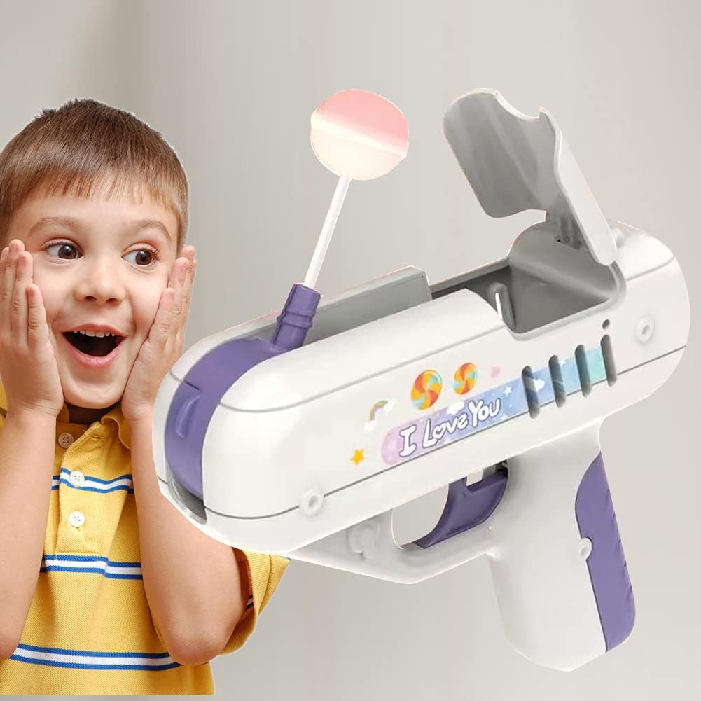 Materiale: la pistola per caramelle è realizzata in plastica ABS, resistente e durevole, sicura e non tossica, senza spigoli vivi sulla superficie e non danneggerà la pelle dei bambini Surprise Lollipop Storage Gun: un lecca-lecca esce e fa un Wow, ti amo! suono. Sono disponibili due colori, rosa e viola Facile da usare: devi solo installare il lecca-lecca, quindi premere il grilletto, il lecca-lecca lampeggerà e farà un Wow, ti amo! suono. Quando tirate di nuovo, le caramelle torneranno rapidamente nella scatola di immagazzinaggio Regali: questo giocattolo è molto speciale, lancia un lecca-lecca per le tue persone preferite e offri loro una dolce sorpresa. Il miglior regalo per bambini e amici per renderli felici. Regali novità adatti a tutte le età Nota: a causa del lungo tempo logistico necessario per evitare che le caramelle si sciolgano, è necessario acquistarle da soli