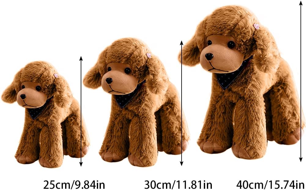 Imbottitura elastica: questa bambola in peluche è realizzata in cotone PP, morbido e confortevole, elastico, non si deforma e può essere coccolata e giocata per lunghi periodi di tempo. Teddy Peluche di cane: questo peluche adotta l'immagine di un cane di peluche, dando una sensazione di vivacità e rimbalzo. I suoi occhi sono chiari e luminosi. Il viso è tridimensionale, il collo è anche avvolto con una sciarpa triangolare, la testa è decorata con fiori e la coda è rotonda. Il cane che può stare in piedi è adorabile e realistico. Morbidi e confortevoli: l'imitazione del peluche della bambola del cane è morbida e lucida e la superficie non è facile da stropicciare. Il pelo corto sulla superficie è liscio e senza grovigli. Leggero e accogliente, pulito e confortevole, adatto per tenere un peluche per dormire. Scelta multipla: questo peluche per cani in peluche è disponibile in quattro colori: bianco/marrone/rosa/grigio. Ha anche tre diverse dimensioni di 25 cm/30 cm/40 cm. I diversi colori e dimensioni ti danno più scelta per soddisfare le esigenze dei bambini e sono adatti ai bambini che amano i cani. Regalo ideale: questo giocattolo di peluche è adatto ai bambini. Può essere utilizzato come giocattolo, decorazione della camera da letto, oggetto di attività o regalo di compleanno per bambini.