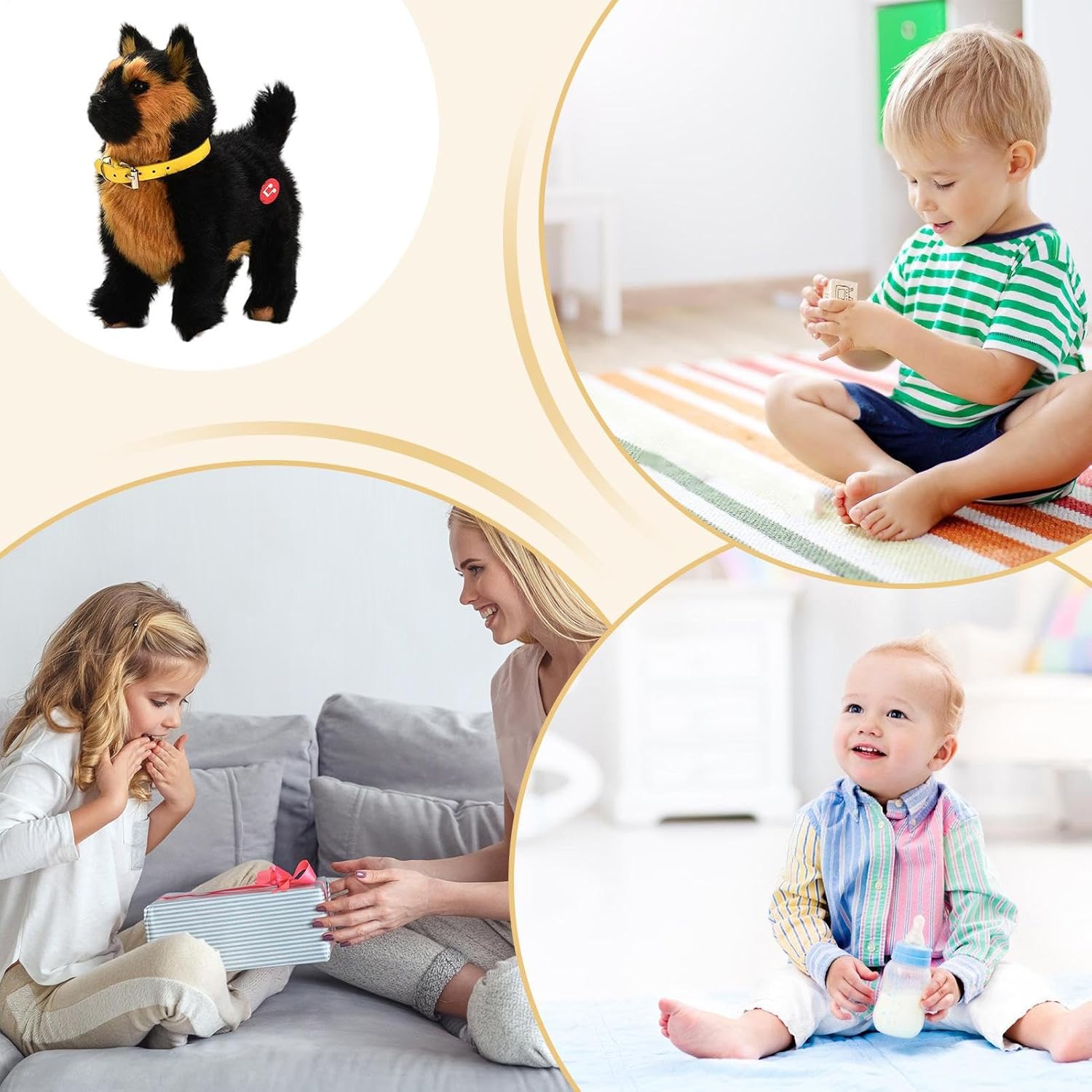 Movimento Autonomo Realistico: Tecnologia avanzata crea la presenza naturale di un cucciolo, con azioni coordinate di scodinzolio e spostamento. La modalità automatica arricchisce l'esperienza ludica senza bisogno di configurazioni complesse affettivo: Tecnologia emozionale avanzata permette al cane robotico di memorizzare le abitudini del proprietario, creando risposte personalizzate che rafforzano la connessione uomo-animale attraverso il gioco interattivo quotidiano Estetica coinvolgente: Linee morbide ispirate ai cuccioli combinano comfort visivo e funzionalità decorativa, il movimento armonioso e le proporzioni bilanciate lo rendono complemento ideale per creare angoli accoglienti stimolando interesse attraverso un approccio giocoso ma non invasivo. Addestramento Comportamentale: Progettato per sviluppare coordinazione e regolazione emotiva durante il gioco interattivo, assicura divertimento dinamico mentre consolida comportamenti positivi attraverso stimoli educativi costanti Morbidezza Eccezionale: Progettato con materiali anti-graffio, texture premium in peluche e componenti elettronici protetti, garantisce sicurezza totale e divertimento interattivo attraverso un design studiato per movimenti fluidi e carezze delicate