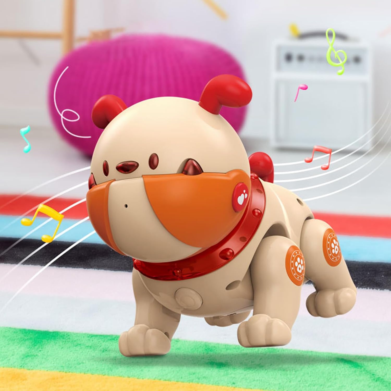 Compagno Musicale Dinamico: Il Cane Robotico combina display luminosi multicolore con la capacità di riprodurre musica, creando un'atmosfera vivace e incoraggiando il divertimento interattivo attraverso risposte intuitive dei sensori in qualsiasi ambiente di gioco, per momenti di intrattenimento dinamico e coinvolgente per tutti. Regalo Meraviglioso per Natale: Il robot cane per bambini agisce come un eccezionale regalo di Natale per i bambini, combinando il gioco interattivo con l'allegria per creare esperienze indimenticabili; sia che venga regalato durante le feste o come di compleanno, aggiunge eccitazione e calore ad ogni occasione speciale, enfatizzando momenti di gioia e condivisione familiare. Comodo da Operare: Progettato per la massima facilità d'uso, il cane robotico elimina configurazioni complesse e funziona senza sforzo con comandi remoti e touch, offrendo un'interfaccia adatta ai bambini che incoraggia momenti divertenti e interattivi in case, aule o spazi all'aperto per bambini e appassionati che esplorano la robotica, con un funzionamento intuitivo e accessibile. Potenziatore 'Educazione Precoce: Robot Dog integra canzoni educative e lezioni di inglese per stimolare la crescita cognitiva, assicurando che i bambini rimangano focalizzati e divertiti mentre sviluppano abilità linguistiche in ambienti domestici o scolastici piacevoli, promuovendo un apprendimento continuo e coinvolgente per giovani studenti Materiale Resistente: Realizzato con materiale ABS di qualità e un design strutturale robusto, il cane robot sopporta il gioco intenso, fornendo prestazioni affidabili per animali domestici impegnati in attività energiche o periodi di masticazione giocosa. La costruzione previene la deformazione e assicura che il prodotto rimanga in condizioni ottimali nonostante l'uso regolare, offrendo un supporto duraturo per momenti di divertimento vigoroso o routine quotidiane.
