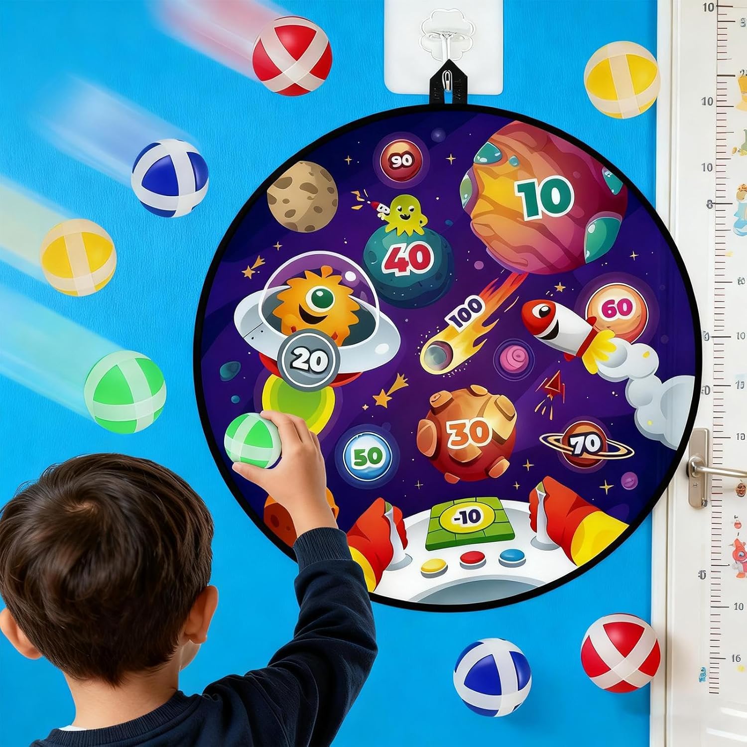 Gioco Interattivo Educativo: Il canestro da basket da parete presenta un design senza impatto, garantendo un gioco sicuro per tutte le età e migliorando l'interazione genitore-figlio attraverso attività coinvolgenti che sviluppano la coordinazione occhio-mano e offrono valore educativo con palline in PVC morbido, ideale per l'uso domestico o in ambienti interni, per momenti di divertimento familiare e per arricchire le capacità motorie in modo piacevole e sicuro all'interno della casa. Canestro a Installazione Rapida: Grazie al design portatile e pieghevole, questo canestro da basket da parete per interni è per un montaggio veloce ovunque. Ideale come accessorio per picnic e campeggio o come giocattolo per interni ed esterni, offre divertimento e coinvolgimento attivo in diversi ambienti. Goditi momenti di gioco spensierati in ogni stagione e in qualsiasi luogo, con una soluzione pratica che si adatta a tutte le situazioni. Design pieghevole salva-spazio: Progettato con una struttura compatta e pieghevole, il canestro da basket da interno da appendere a muro garantisce un riposo senza sforzo e un'ottima portabilità, rendendolo semplice da spostare e conservare quando non è in uso. Montaggio per Affittuari: Il canestro da basket per interni presenta un design a per un montaggio rapido e senza attrezzi, rendendolo adatto agli affittuari poiché mantiene le pareti intatte dopo la rimozione, ottimo per appartamenti o aree comuni con divieti di foratura, garantendo praticità e rispetto delle superfici. Attività Interna: Con focus sull'allenamento di e l'inclusione di modalità di gioco basket e freccette, questo canestro da basket interno offre un'esperienza di apprendimento piacevole per bambini di tutte le età. Aiuta a sviluppare precisione e agilità mentre si divertono a casa, promuovendo l'attività fisica e la coordinazione in ambienti chiusi. Ideale per giochi educativi, favorisce il divertimento familiare e lo sviluppo delle capacità motorie in modo intuitivo e accessibile.