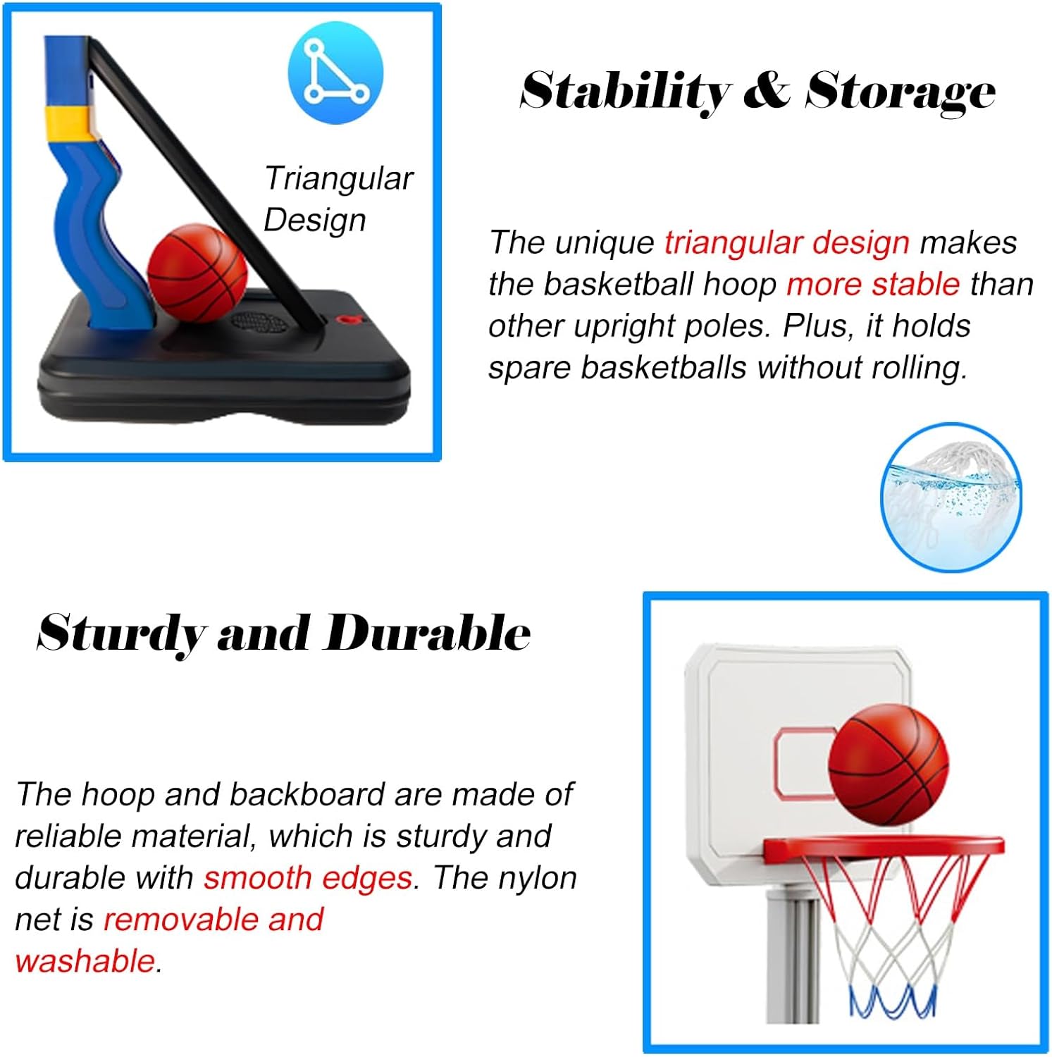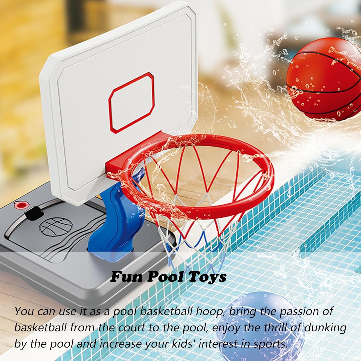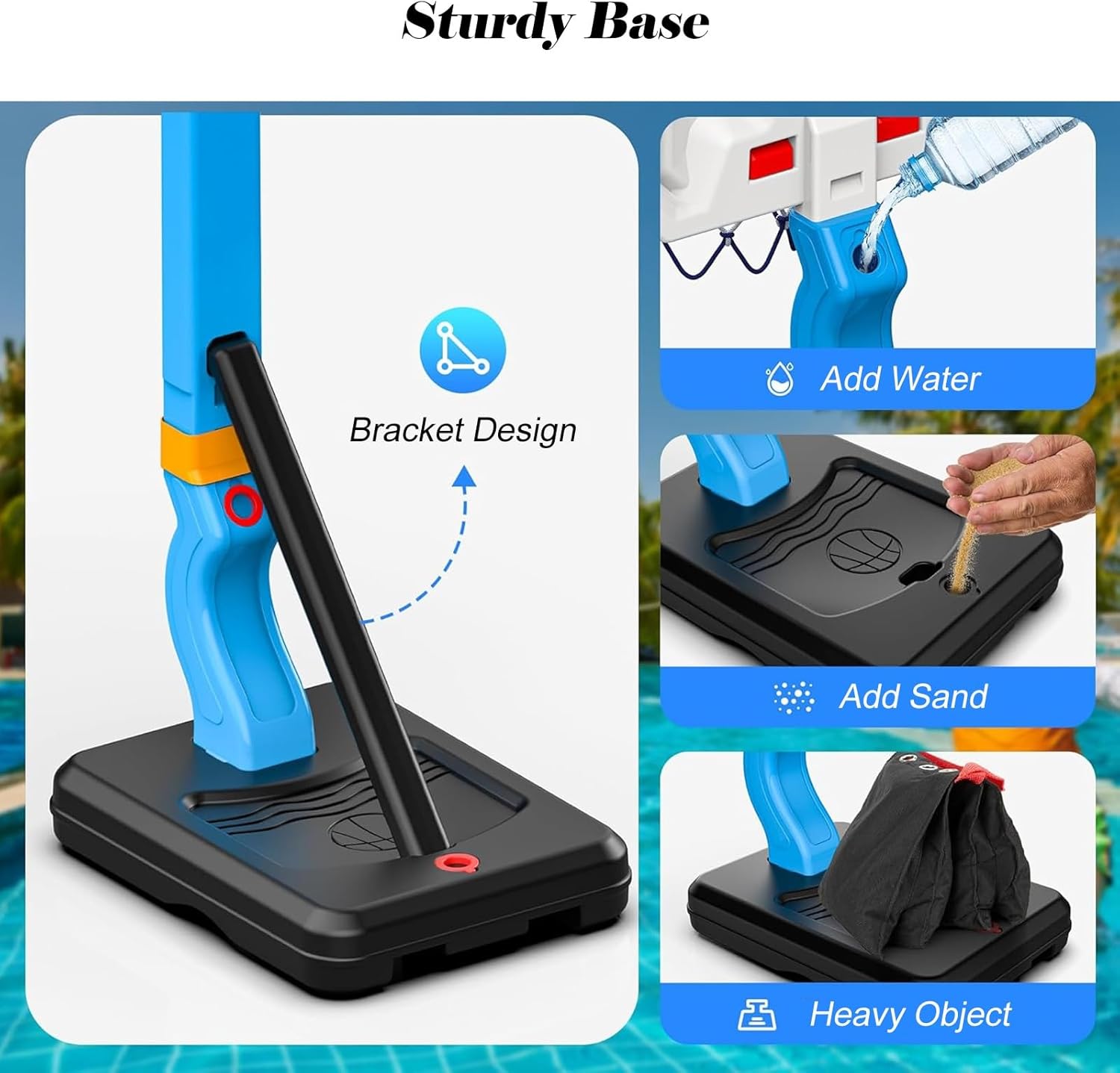 Robusto e durevole: i nostri canestri da basket da piscina sono realizzati con materiali affidabili, robusti e durevoli, non facili da ribaltare e più stabili per garantire sicurezza e affidabilità e non facili da rompere Altezza regolabile: l'altezza del canestro da basket da piscina è regolabile, sia alta che bassa; puoi posizionare il canestro da basket basso a bordo piscina, come giocattolo da piscina, adatto anche ai bambini piccoli per imparare a giocare a basket 2 modi per giocare: puoi usarlo come canestro da basket da piscina e provare l'emozione di schiacciare a bordo piscina, oppure puoi allenare le tue abilità di tiro al chiuso per aumentare l'interesse di tuo figlio per lo sport. Un'idea regalo fantastica: che siano bambini, adolescenti o adulti, possono godersi ore di divertimento che svilupperanno il loro interesse per il basket, ispireranno il potenziale atletico dei giovani e incoraggeranno stili di vita sani. Facile da montare: il supporto da basket può essere montato in pochi secondi, la base può essere riempita con acqua e sabbia per garantire sicurezza e stabilità, non facile da ribaltare