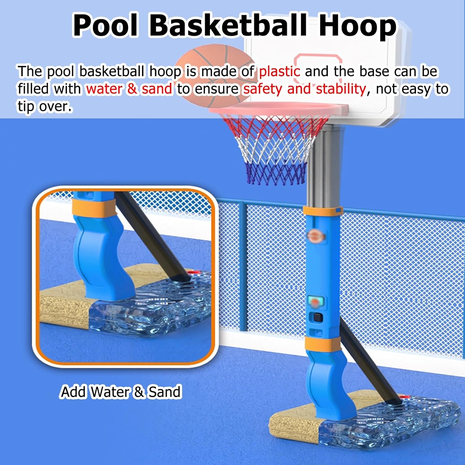 Supporto da basket per piscina assemblato: il tabellone da basket è bianco, con la linea rossa del telaio del canestro, la staffa blu e la base nera, colore vivace, molto accattivante in piscina, forte appeal visivo Altezza regolabile: l'altezza del supporto da basket può essere regolata in modo flessibile in base all'altezza, al livello di abilità e alle esigenze di età dei diversi utenti, con un minimo di 70 cm/27,6 pollici e un massimo di 138 cm/54,3 pollici, per soddisfare le esigenze dei giocatori di diverse età Base stabile: il peso della base può essere aumentato aggiungendo acqua o sabbia per rendere il canestro da basket galleggiante da piscina più stabile durante l'uso e non è facile scuoterlo o ribaltarlo anche durante gli sport intensi 2 modi di giocare: puoi usarlo come canestro da basket da piscina e goderti l'emozione di schiacciare a bordo piscina, puoi anche praticare le tue abilità di tiro al chiuso e migliorare l'interesse di tuo figlio per lo sport, canestro da basket perfetto per bambini di 3-8 anni Scelta ideale: questo è il regalo perfetto per bambini o adulti che possono divertirsi per ore con questo canestro da basket in acqua, sviluppare il loro interesse per il basket, ispirare il potenziale atletico dei giovani e incoraggiare uno stile di vita sano