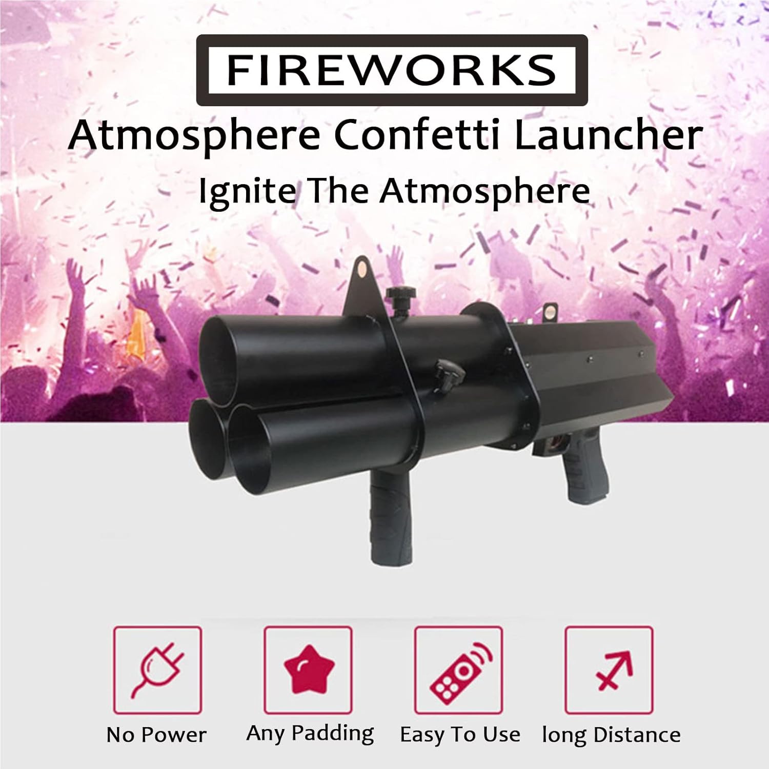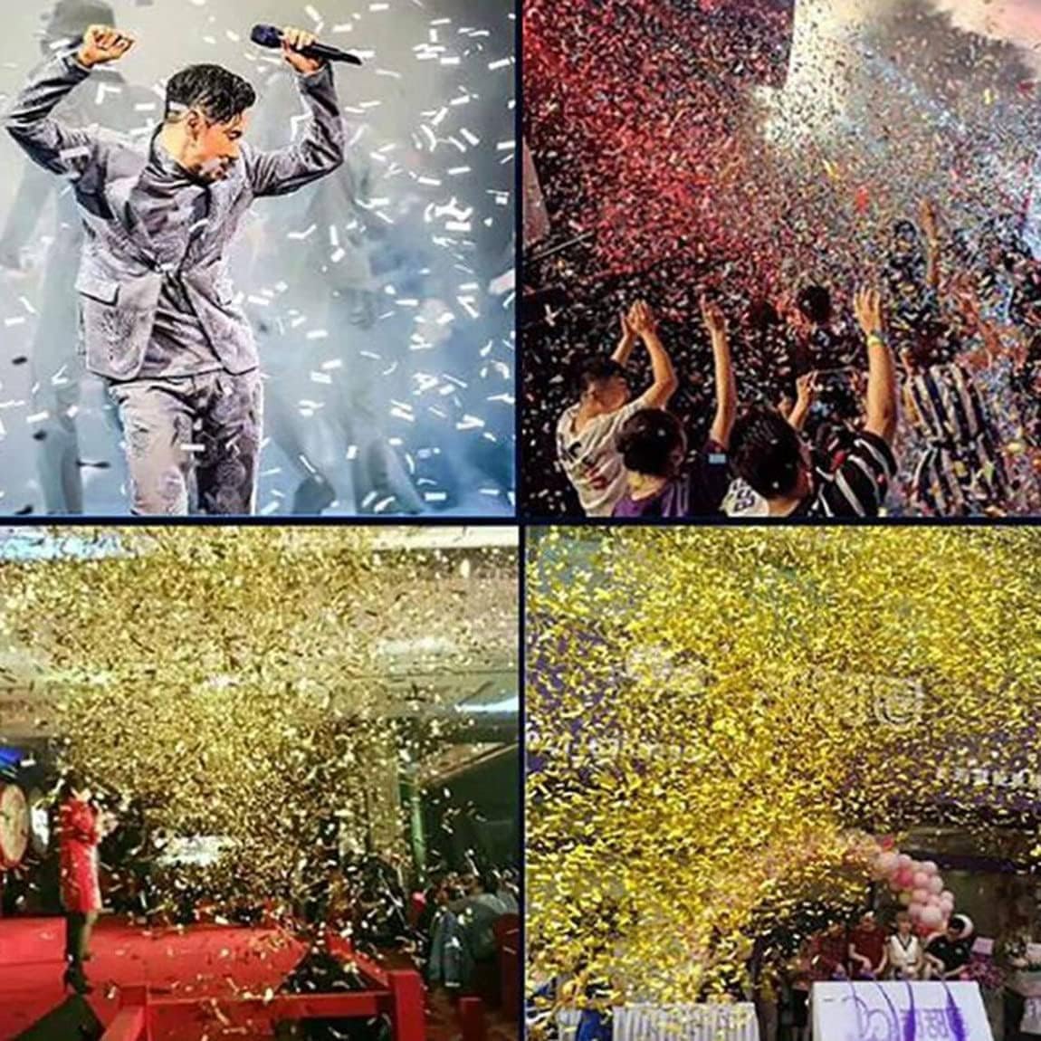 Macchina per coriandoli elettrica compatta e potente da 20w progettata per lanciare grandi quantità di coriandoli fino a 8-10 metri di altezza, perfetta per valorizzare qualsiasi evento e creare un'atmosfera indimenticabile. Dispone di quattro interruttori di controllo sul retro, che consentono il tiro individuale o simultaneo di tre proiettili, rendendolo versatile sia per grandi eventi all'aperto che per matrimoni intimi per effetti visivi sorprendenti. Compatibile con una varietà di cartucce di coriandoli, disponibile in lunghezze di 40 cm, 60 cm, 80 cm o 120 cm, consentendo la personalizzazione dell'esposizione dei coriandoli per adattarsi a diverse occasioni. Costruito in ghisa raffinata e dotato di una batteria al litio ricaricabile integrata da 3500 mAh per un uso prolungato, fornendo comodità e affidabilità per varie impostazioni. Perfetto per una vasta gamma di eventi, tra cui spettacoli teatrali, matrimoni, feste, celebrazioni e aperture o chiusure cerimoniali, con un eccellente servizio clienti per garantire soddisfazione.