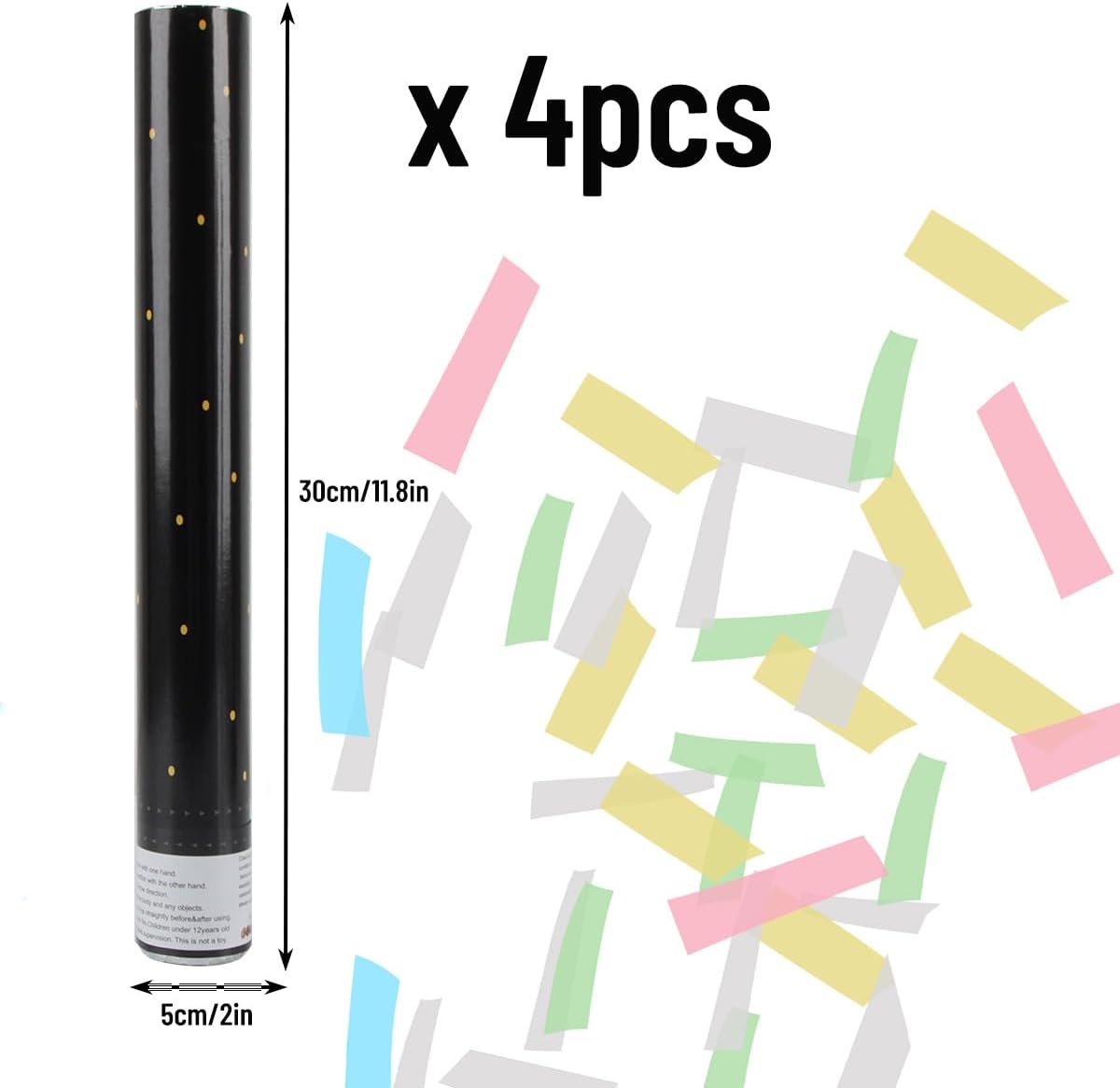1. 【Materiale】 Il cannone coriandoli è realizzato in carta di riso glutinoso biodegradabile. Non ha odore sgradevole quando viene utilizzato e si scioglie quando incontra l'acqua. Può essere utilizzato all'interno e all'esterno ed è ecologico e privo di inquinamento. 2. 【Crea atmosfera】 Il cannone coriandoli è molto popolare in tutte le feste, ruota i coriandoli nei momenti importanti, crea una calda atmosfera di festa e non preoccuparti che la carta di riso appiccicosa contamini il cibo. 3. 【Set perfetto】 Il set di cannoni per coriandoli comprende 4 tubi per coriandoli. La dimensione del monomero è 38*5 cm, l'altezza dello spruzzo è di 3-5 metri e il riempimento interno è di carta di riso glutinoso lunga 2*5 cm. 4. Molteplici occasioni: il cannone coriandoli può attirare immediatamente l'attenzione di tutti e creare un'atmosfera vivace, perfetta per compleanni, matrimoni, lauree, anniversari, baby shower, Capodanno e altri eventi. 5. 【Facile da usare】 Per prima cosa strappare il coperchio di carta superiore, girarlo con un angolo di 45 gradi, tenere il tubo in una mano e il fondo nell'altra mano e girarlo nella direzione della freccia.
