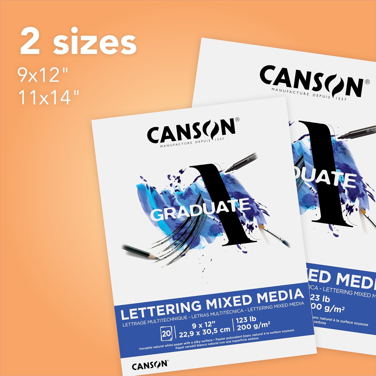Carta vivace e durevole: i fogli da 200 g leggermente strutturati offrono una superficie versatile per praticare tecniche di lettering Perfetto per gli studenti: pratica i tuoi tratti, curve, angoli, stile e precisione per biglietti festivi, eventi e presentazioni Rimuovere facilmente i fogli: non c'è bisogno di preoccuparsi di errori che strappano pagine perforate grazie alla rilegatura a colla. Basta tirare fuori la pagina! Penna, inchiostro e pennarello: da utilizzare con inchiostro calligrafico, inchiostro acrilico, spazzole ad aria, inchiostro indiano, pennarelli fineliner, pennarelli a pennello e penne stilografiche CANSON — Lascia che la tua creatività prenda il volo! Dal 1557, i nostri artigiani nel sud della Francia sostengono l'immaginazione degli artisti ovunque.