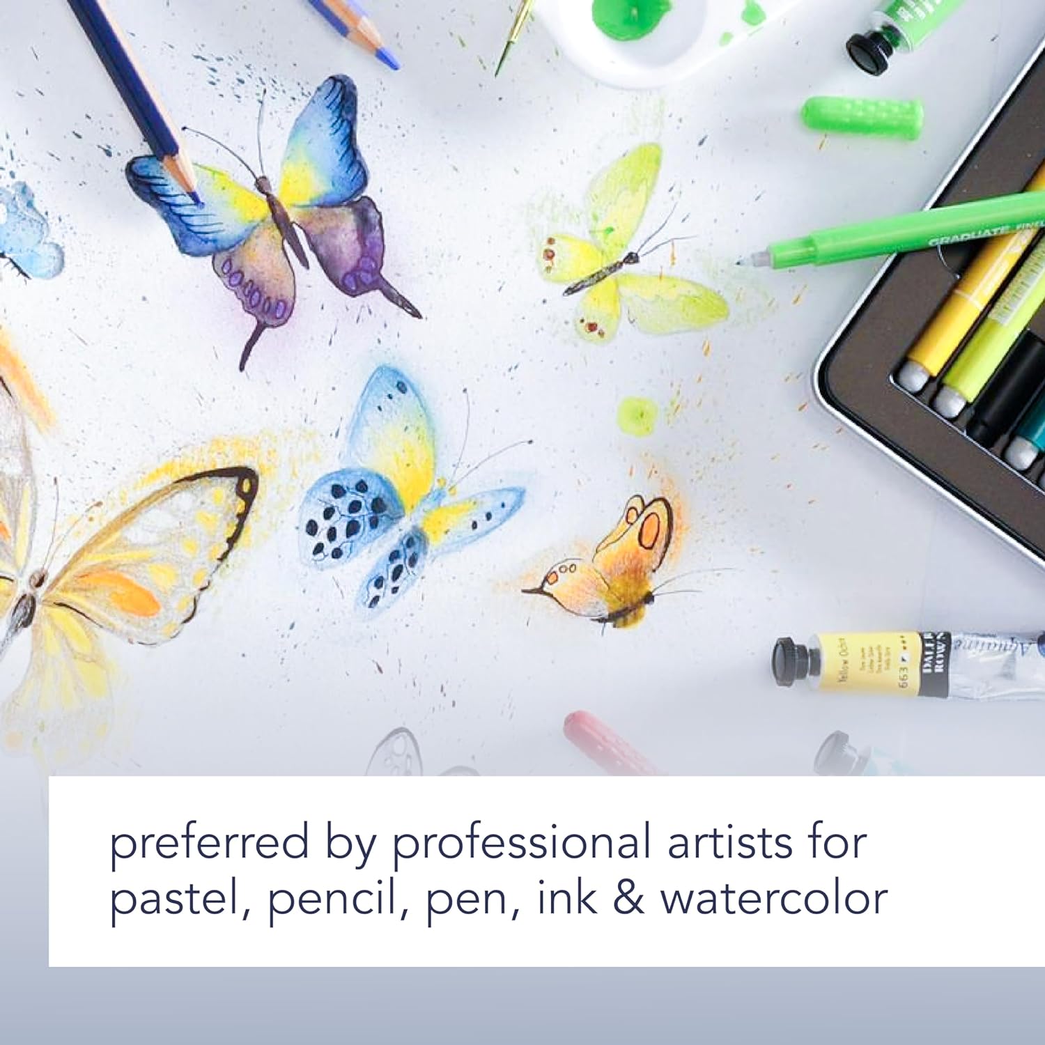 Assorbe perfettamente grandi quantità di acqua e colori senza deformarsi. L'assorbimento è graduale e omogeneo Grazie al cotone il colore penetra profondamente nella carta rimanendo vivace e brillante La percentuale di cellulosa della carta consente di dobtenere dettagli precisi anche con tecniche secche senza generare tracce La grana della carta è ideale per tutte le tecniche di pittura anche per le opere iperrealistiche che che richiedono una precisione dei dettagli È adatto a tutte le tecniche che richiedono carta spessa. Impastamenti per lacrilica. La carta rimane perfettamente stabile una volta asciutta