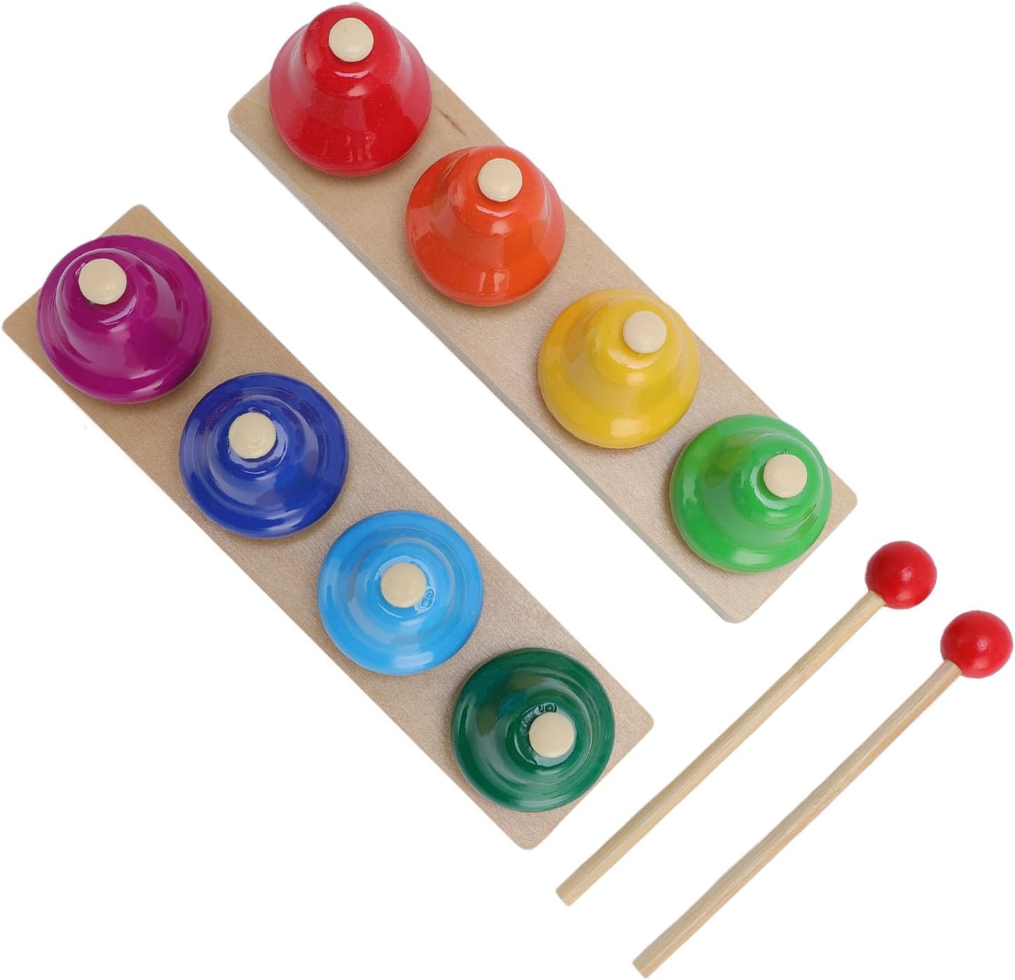 [Spark Musical Curiosity] 8 note colorate e vibranti Bishwood/Iron Bells con mazze per la riproduzione in casa. [Educazione sensoriale compatta] Lightweight 2.2in High Design si adatta ai banchi per il tempo musicale dell'asilo. [Sviluppo uditivo] toni distinti per il riconoscimento del tono durante le sessioni musicali genitore-figlio. [Utilizzo di classe portatile] Portare un design senza Box/Cover per giochi di gioco o gioco di cortile. [Giochi di mazze di legno] Dual Mallets sviluppano il coordinamento per gli occhi a mano per l'apprendimento in età prescolare.