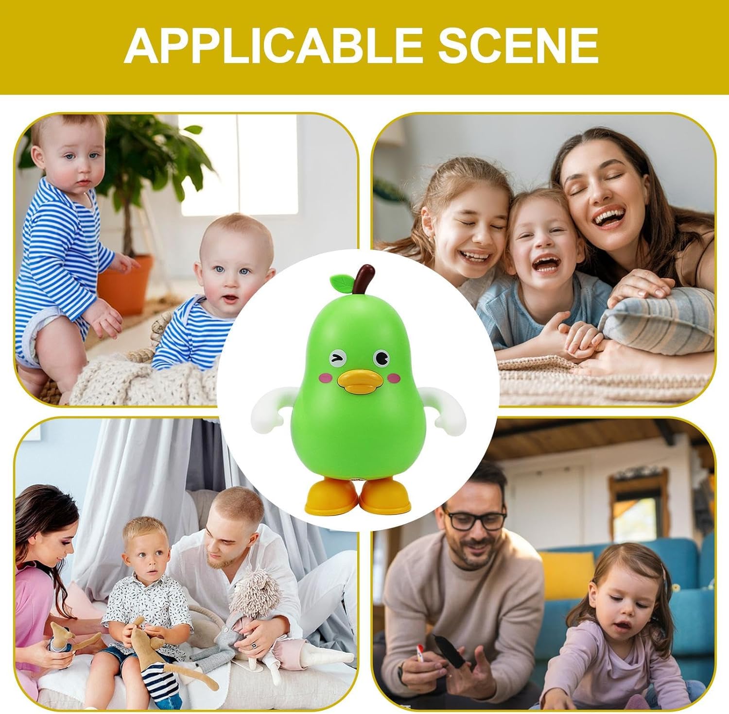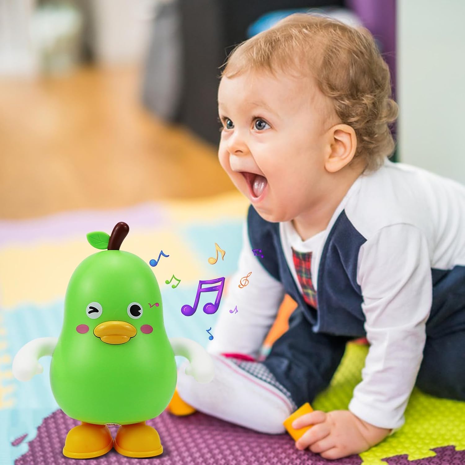Forma di frutta adorabile: avvicina la tua famiglia con la frutta che balla. Queste simpatiche figure di frutta ravviveranno il tuo tempo di gioco e aumenteranno il divertimento dell'interazione genitore-figlio. Musica allegra: questo frutto di danza offre un'esperienza terapeutica per i bambini con la sua musica dinamica che può calmare le loro emozioni. Le 12 melodie pure e dinamiche integrate creano una qualità del suono chiara e incoraggiando i bambini a sviluppare il loro senso di musica e ritmo. Personaggio da ballo: questo frutto da ballo renderà i tuoi bambini felici e sani. Li guiderà a ballare insieme alla musica, esercitando la loro coordinazione fisica ed equilibrio. Sarà anche oscillare a sinistra ea destra, aggiungendo più divertimento e sfida alla danza. Sicuro e sicuro: utilizzando solo materiali sicuri, i nostri giocattoli di frutta per ballare proteggono la salute del tuo bambino fornendo divertimento e intrattenimento. Realizzati in ABS di alta qualità, sono resistenti e costruiti per durare. Regalo perfetto: sorprendi i bambini con un giocattolo di frutta che balla come un regalo perfetto per la festa dei bambini, il compleanno o il Natale. Ragazzi, ragazzi e ragazze possono godersi la danza divertente e i colori vivaci imparando a conoscere frutti sani e i loro vantaggi.