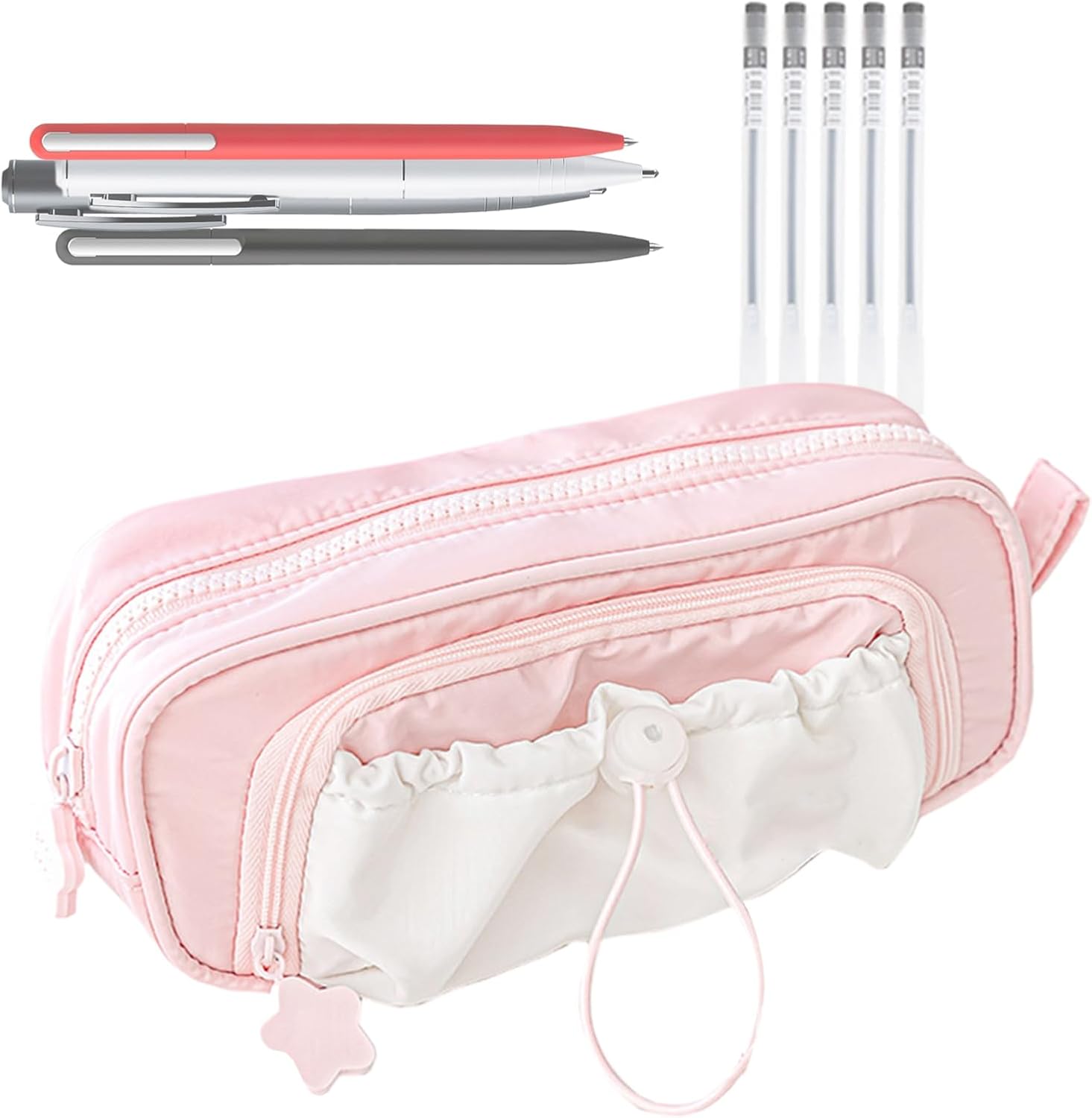 Organizzazione funzionale: la produttività aumenta grazie alla struttura interna ben progettata che organizza in modo efficiente, facilita la manipolazione e l'accesso agli elementi essenziali durante le sessioni di studio Design robusto: combina il tessuto rotto e la cerniera morbida che lavora efficacemente protegge il contenuto, garantendo funzionalità e durata di quelle penne a lunga durata Bellezza funzionale: combinazione armoniosa di estetica e scopo attraverso punte stellate e motivi floreali. Le custodie organizzate migliorano gli spazi di studio con l'eleganza pratica. Superfici protettive anti-cancello: offre una protezione affidabile da fuoriuscite e macchie accidentali, con uno strato impermeabile facilita la pulizia e aiuta a mantenere costantemente l'aspetto impeccabile delle penne Utenti spaziosi: la scuola Satheres e le esigenze professionali con capacità di design multistrato, contiene più di 100 articoli di cancelleria e offre un'ampia trasparenza per un facile accesso e una migliore organizzazione