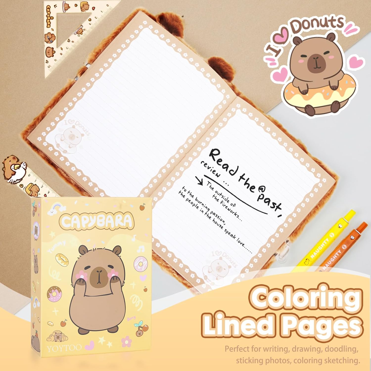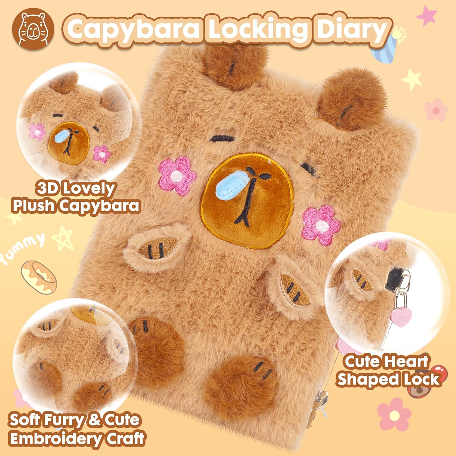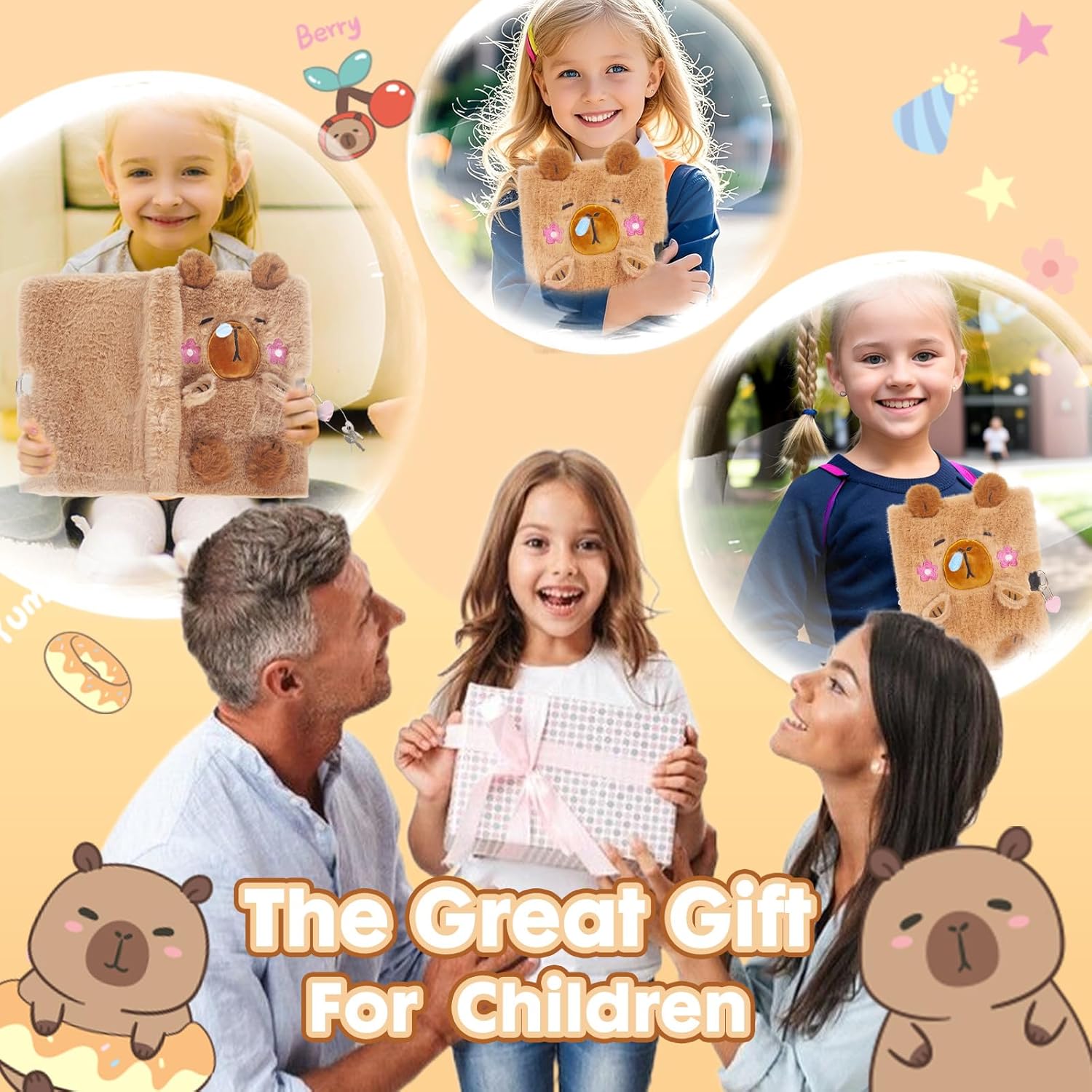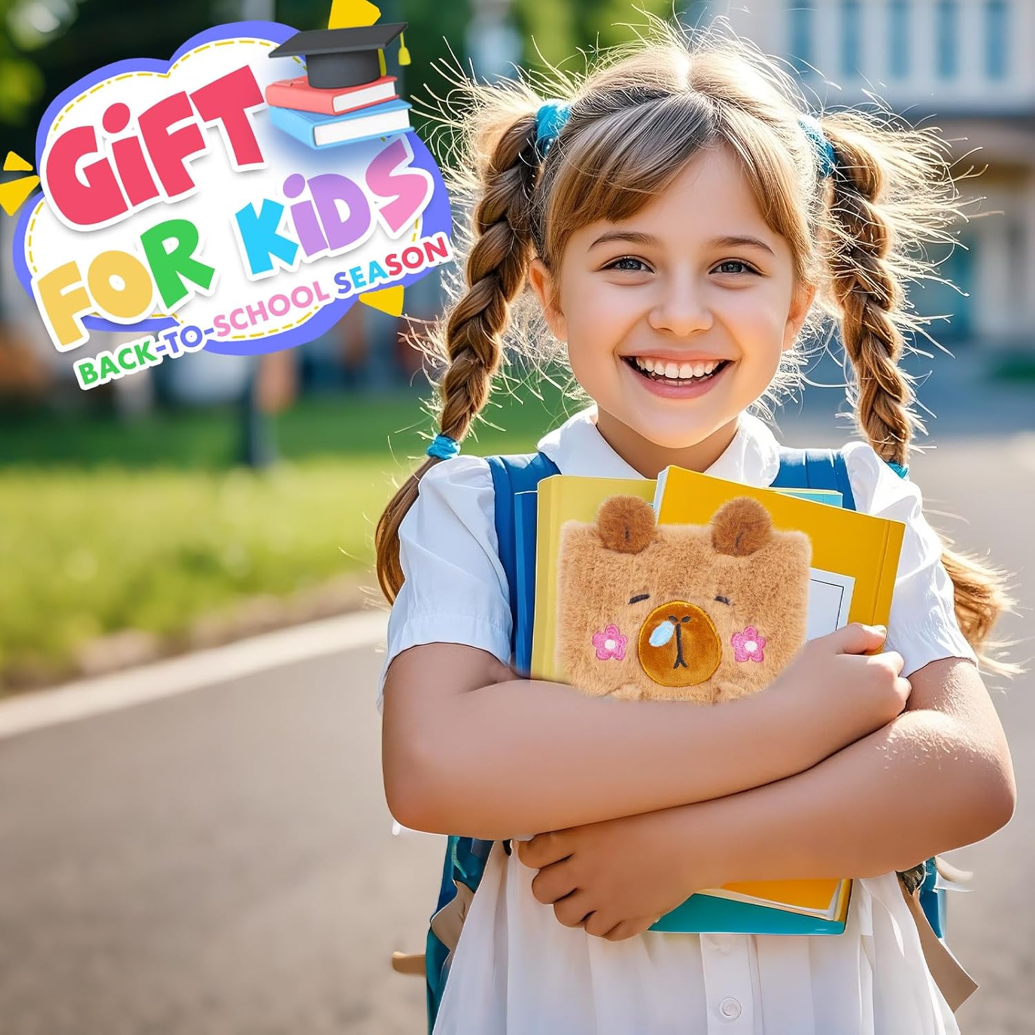 Adorabile design del taccuino Capybara in peluche: Presenta un Capibara in 3D con occhiali e dettagli ricamati - irresistibilmente carino e coccoloso! Questo diario peloso aggiunge un tocco di divertimento e magia a ogni momento di scrittura. Diario segreto per la privacy delle bambine: Viene fornito con una serratura rosa a forma di cuore e due chiavi argentate, perfette per tenere al sicuro i segreti. Ideale per i pensieri privati, i sogni o la scrittura creativa della vostra bambina. Diario di scrittura creativa per bambini: Misura 6,65 x 8,43 pollici e comprende 160 pagine foderate, ideali per scrivere un diario, scarabocchiare, scrivere storie o disegnare. Un ottimo modo per stimolare la creatività e l'espressione di sé. Multiuso per il divertimento quotidiano: Che si tratti di scrivere, disegnare, fare scrapbooking o anche di usarlo come diario di viaggio, questo diario è perfetto per la scuola, la casa o i viaggi. I bambini possono catturare i ricordi o dare sfogo alla loro immaginazione. È un dolce regalo giocattolo per i bambini: Confezionato in una bella scatola, questo diario è un regalo prezioso per compleanni, Natale, San Valentino o qualsiasi altra occasione speciale. Ideale per le bambine dai 5 ai 12 anni che amano il divertimento carino, accogliente e creativo.