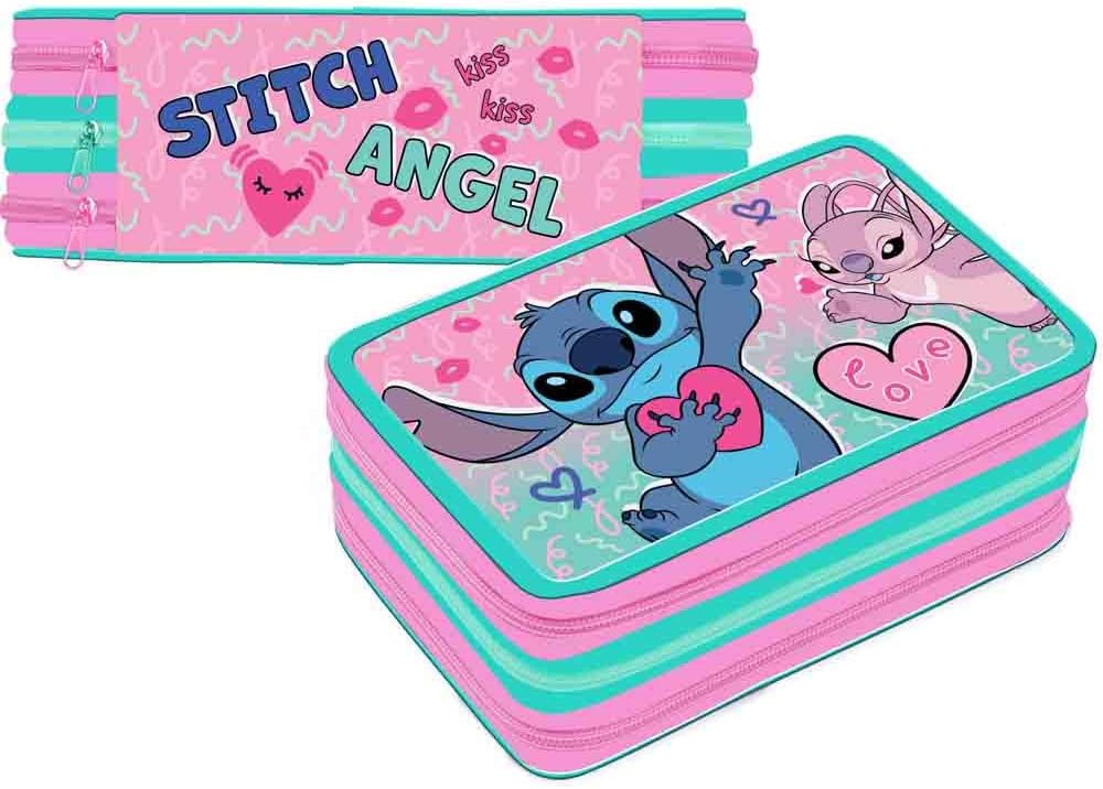 Astuccio rettangolare con 3 scomparti con cerniera. Dimensioni: 11x23x7 cm
