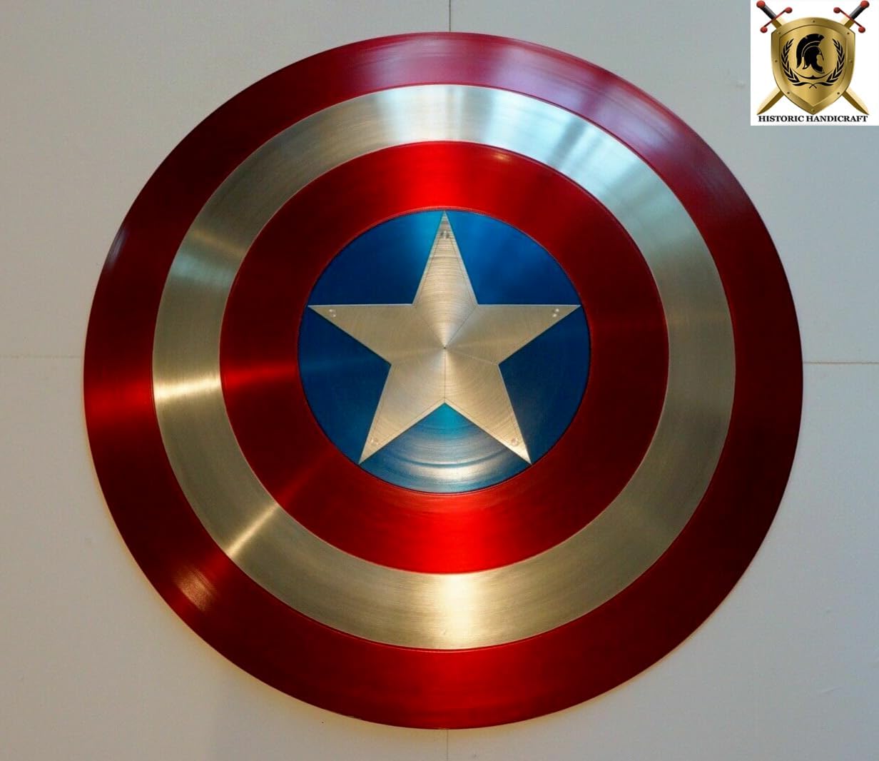 Capitan Shield Legends Limited Edition, scudo in metallo per adulti Movie Prop Replica, scudo rotondo in pelle con impugnatura da parete scudo decorativo ✔️Halloween medievale armatura Coplay ~ Legends Series Capitan Premium gioco di ruolo scudo metallo Prop Replica Dimensioni: 55,9 cm. Metallo: ferro e acciaio. Finitura: come da immagine. Peso: 5,1 cm. Materiale: metallo. Abbastanza pesante da darti la sensazione e abbastanza solido da spingere al limite. ✔️La replica dei dettagli dello scudo è più intatta. La pellicola di vernice è dura e resistente all'usura. Organizzazione precisa, superficie liscia, contorno chiaro e lucentezza metallica. ✔️Stile iconico rosso, bianco, blu: il colore di questo scudo è simile a quello della bandiera americana. Non c'è bisogno di essere selezionati, finché sei gentile e pieno di coraggio, sei Capitano! Manufecturer & Venduto da: HISTORIC HANDICRAFT