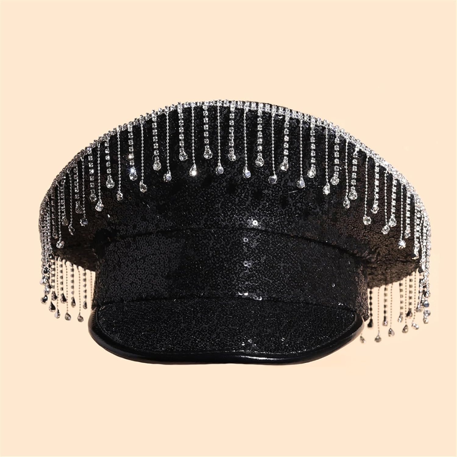Capitano di festa di carnevale con pon pon per fotografia Capitano di performance di Halloween per adolescenti per adulti da sposa Caratteristiche: Aumenta il tuo gusto con il nostro cappello con pompon, un accessorio accattivante. Questo cappello da capitano è realizzato con tessuto di alta qualità e presenta paillettes e diamanti lucenti. Questo cappello da capitano è ideale per le donne alla moda ed è perfetto per la sposa, le damigelle d'onore e chiunque voglia aggiungere un tocco di moda. Dagli addio al nubilato ai festival musicali, dai carnevali agli addii al nubilato, questo cappello da capitano funge da bellissimo strumento decorativo per ogni occasione festiva. Il nostro cappello da capitano non è solo un articolo di tendenza, ma offre anche una pratica protezione solare. Specifiche: Trama: diamante, paillettes, fibra di poliestere Circonferenza del cappello: 54-58 cm. Colore: nero, argento. La confezione include: 1 capitano con paillettes. Nota: 1: si prega di consentire un errore di 1-2 cm dovuto alla misurazione manuale e assicurarsi che non ti dispiaccia prima di ordinare. 2: A causa delle differenze tra i monitor, l'immagine potrebbe non riflettere il colore effettivo dell'articolo.