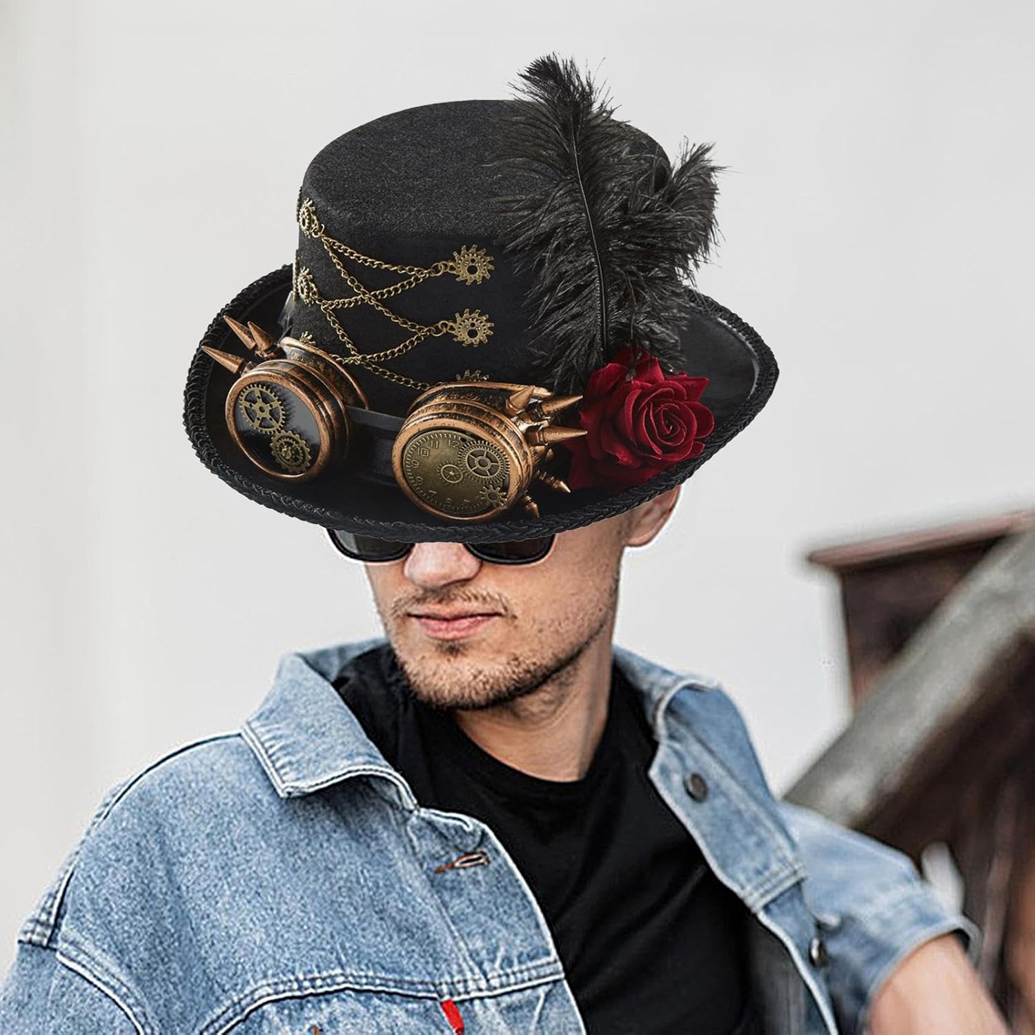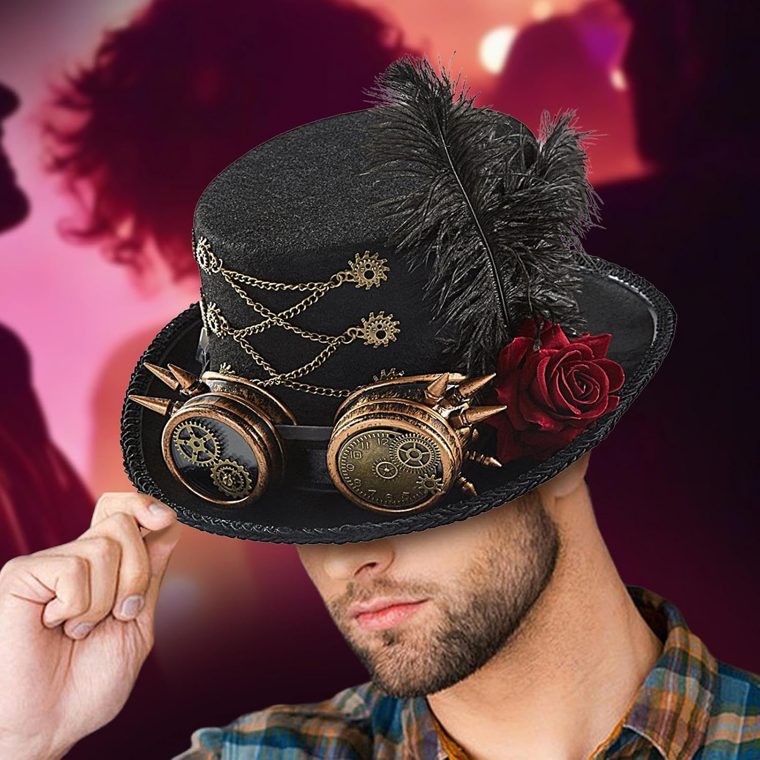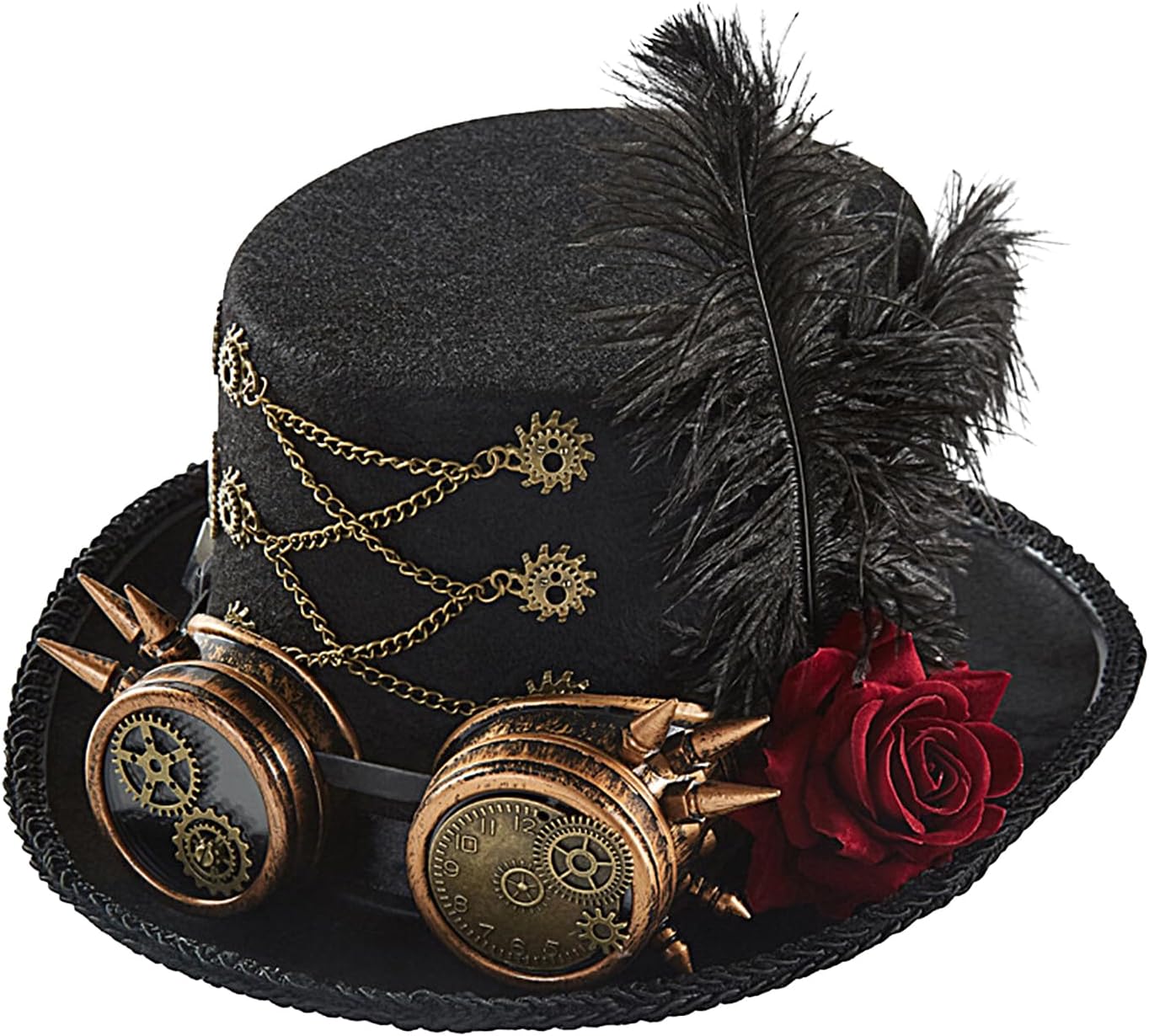 Cappelli a cilindro generici, cappello per costume Steampunk con occhiali incorporati - feltro regolabile per costume da teatro cosplay per uomo donna adulto