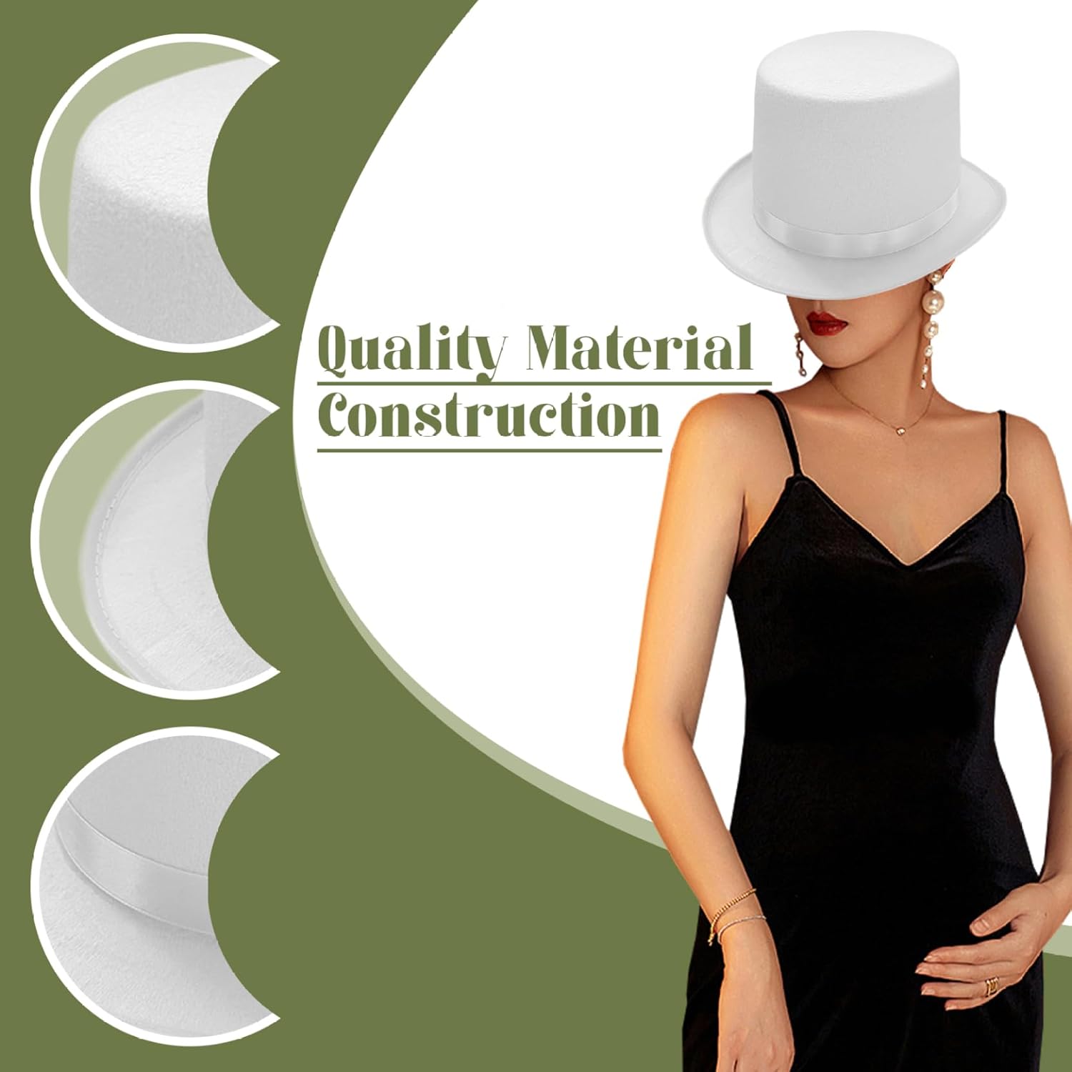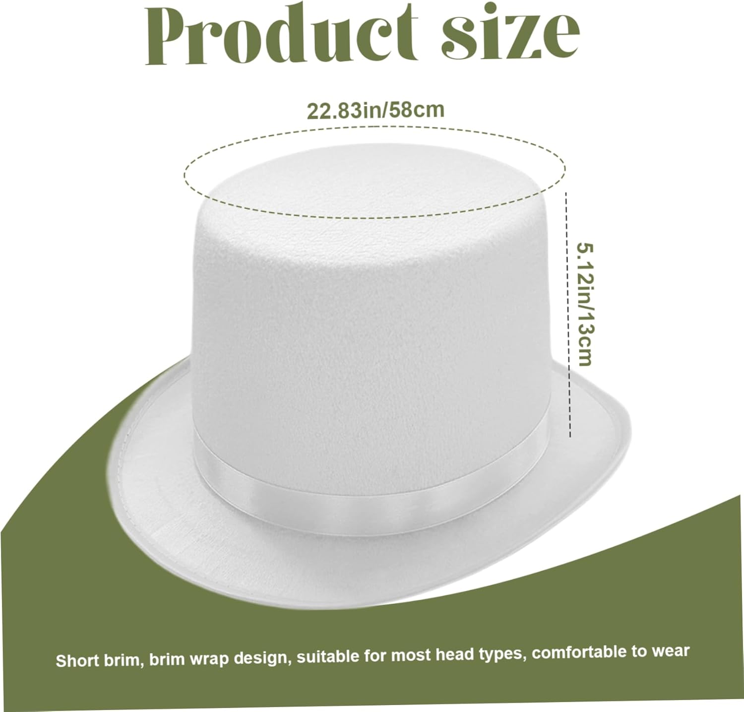 Stile vittoriano classico: abbraccia un look britannico vintage con questo versatile cappello a cilindro, perfetto per aggiungere un tocco di eleganza vittoriana a qualsiasi outfit..Ideale per spettacoli, costumi e persino maghi, questo cappello a cilindro porta un fascino senza tempo al tuo guardaroba. Materiale di qualità: realizzato in poliestere di qualità, questo cappello a cilindro bianco offre una sensazione confortevole e morbida..Il materiale è delicato sulla pelle, garantendo di poterlo indossare per lunghi periodi senza alcun disagio, rendendolo perfetto per eventi e spettacoli lunghi. Design Edge di qualità: caratterizzato da un design a tetto rilegato, questo cappello a cilindro è realizzato per essere duraturo..I bordi sono finiti in modo sicuro per evitare lo sfilacciamento, garantendo che il tuo cappello mantenga il suo aspetto incontaminato anche dopo un ampio uso. Ampia applicazione: questo costume per cappello a cilindro è un accessorio fantastico per vari eventi festivi, dalle feste di Halloween alle esibizioni teatrali..Può anche fungere da elegante cappello formale, un cappello da costume o persino come cappello da clown, rendendolo un'aggiunta incredibilmente versatile alla tua collezione di costumi. Fit universale: con una circonferenza del cappello di 58 cm e un corto bordo, questo cappello a cilindro è progettato per adattarsi comodamente alla maggior parte delle dimensioni della testa..La sua vestibilità versatile garantisce che possa essere indossata da una gamma di individui, rendendolo un ottimo accessorio per chiunque.
