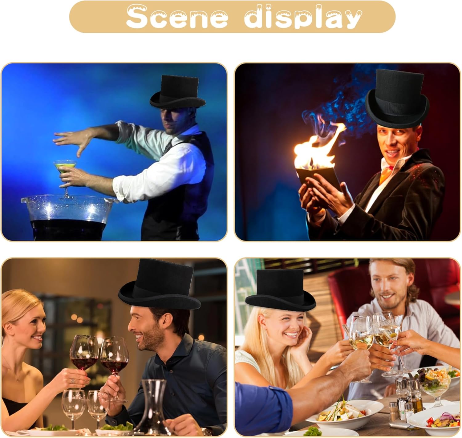 Perfetto per occasioni speciali: sia che tu stia partecipando a una cena formale, ospitando uno spettacolo o celebrando Halloween, questo cappello a cilindro nero è l'accessorio ideale per completare il tuo look..Porta un tocco di fascino classico ed eleganza a qualsiasi occasione speciale, assicurandoti di distinguerti con stile. Elegante design formale: il cappello Black Top presenta un design classico ed elegante, che lo rende l'accessorio perfetto per eventi formali, cene sociali e spettacoli teatrali..Il suo stile senza tempo aggiunge un tocco di raffinatezza a qualsiasi outfit. Materiale di qualità: realizzato in lana di qualità, questo cappello a cilindro offre un aspetto lussuoso..Il materiale di qualità garantisce che il cappello mantenga la sua forma e aspetto, fornendo un uso duraturo per varie occasioni. Fit confortevole per gli adulti: progettato per gli adulti, il cappello a cilindro con circonferenza del cappello da 59 cm/23,23 pollici, fornisce una soluzione comoda per gli uomini..Il suo design strutturato garantisce che rimanga saldamente sulla testa, permettendoti di indossarlo con sicurezza durante il tuo evento o prestazioni. Accessorio in costume versatile: ideale per una serie di temi di costume, questo cappello a cilindro è perfetto per maghi, showmen, maggiordomi e altro ancora..È un accessorio versatile che migliora i costumi di cosplay, gli abiti di Halloween e le prestazioni teatrali, aggiungendo autenticità al tuo personaggio.