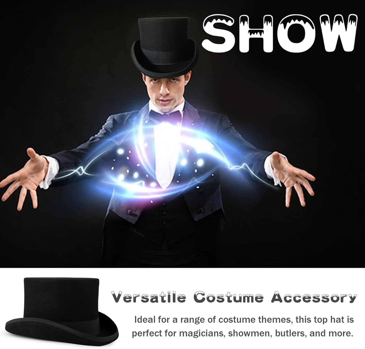 Fit confortevole per gli adulti: progettato per gli adulti, il cappello a cilindro con circonferenza del cappello da 59 cm/23,23 pollici, fornisce una soluzione comoda per gli uomini..Il suo design strutturato garantisce che rimanga saldamente sulla testa, permettendoti di indossarlo con sicurezza durante il tuo evento o prestazioni. Accessorio in costume versatile: ideale per una serie di temi di costume, questo cappello a cilindro è perfetto per maghi, showmen, maggiordomi e altro ancora..È un accessorio versatile che migliora i costumi di cosplay, gli abiti di Halloween e le prestazioni teatrali, aggiungendo autenticità al tuo personaggio. Elegante design formale: il cappello Black Top presenta un design classico ed elegante, che lo rende l'accessorio perfetto per eventi formali, cene sociali e spettacoli teatrali..Il suo stile senza tempo aggiunge un tocco di raffinatezza a qualsiasi outfit. Materiale di qualità: realizzato in lana di qualità, questo cappello a cilindro offre un aspetto lussuoso..Il materiale di qualità garantisce che il cappello mantenga la sua forma e aspetto, fornendo un uso duraturo per varie occasioni. Perfetto per occasioni speciali: sia che tu stia partecipando a una cena formale, ospitando uno spettacolo o celebrando Halloween, questo cappello a cilindro nero è l'accessorio ideale per completare il tuo look..Porta un tocco di fascino classico ed eleganza a qualsiasi occasione speciale, assicurandoti di distinguerti con stile.