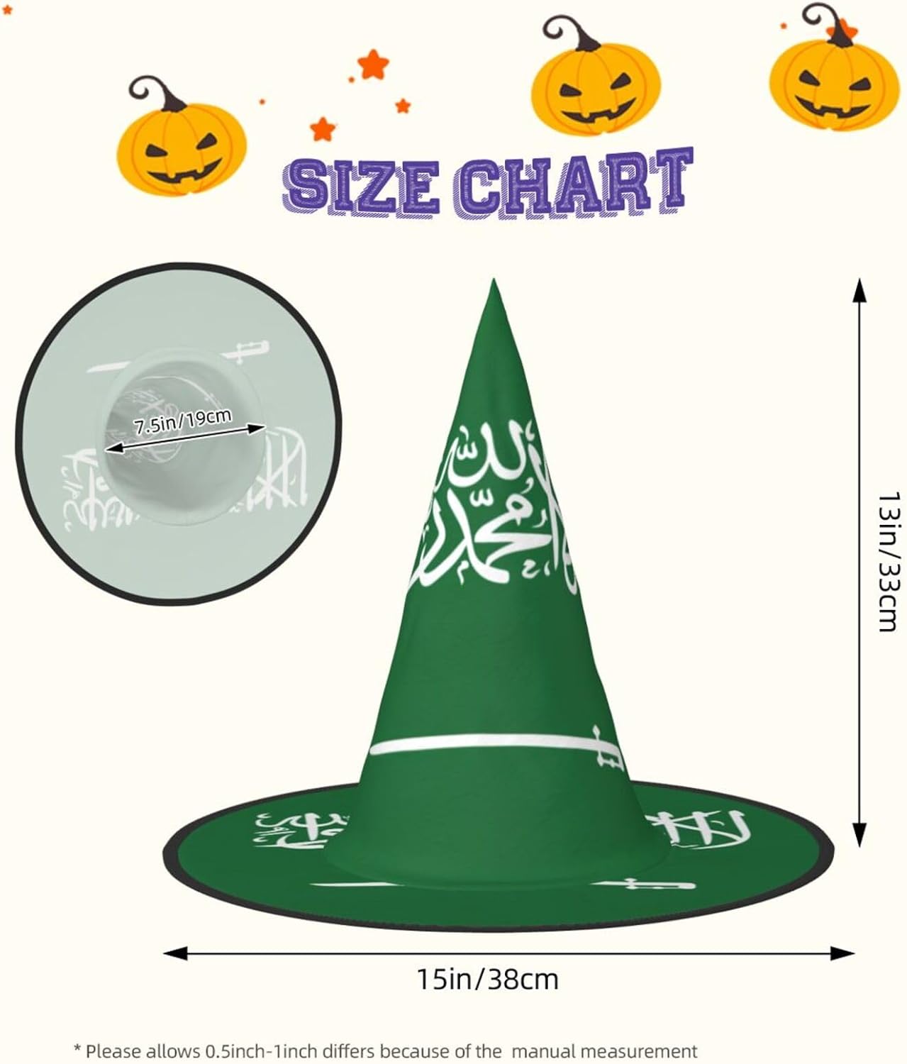 Realizzati in tessuto confortevole, morbido e Oxford, questi cappelli con stampa bandiera dell'Arabia Saudita sono ideali per Halloween e feste in costume. Il design unico e leggero consente di piegare e torcere le falde del cappello, offrendo una facile conservazione e portabilità. Con una dimensione che si adatta alla maggior parte, questi cappelli di Halloween con stampa bandiera dell'Arabia Saudita per uomini e donne sono ideali per carnevale, balli in maschera ed eventi di gioco di ruolo. Diventa il centro dell'attenzione in qualsiasi riunione! Inoltre, i nostri cappelli da strega sono facili da pulire: lavare a mano o in lavatrice, asciugare rapidamente e non richiedono candeggina. Festeggia Halloween con stile con la nostra bandiera dell'Arabia Saudita Stampa Cappelli!